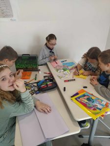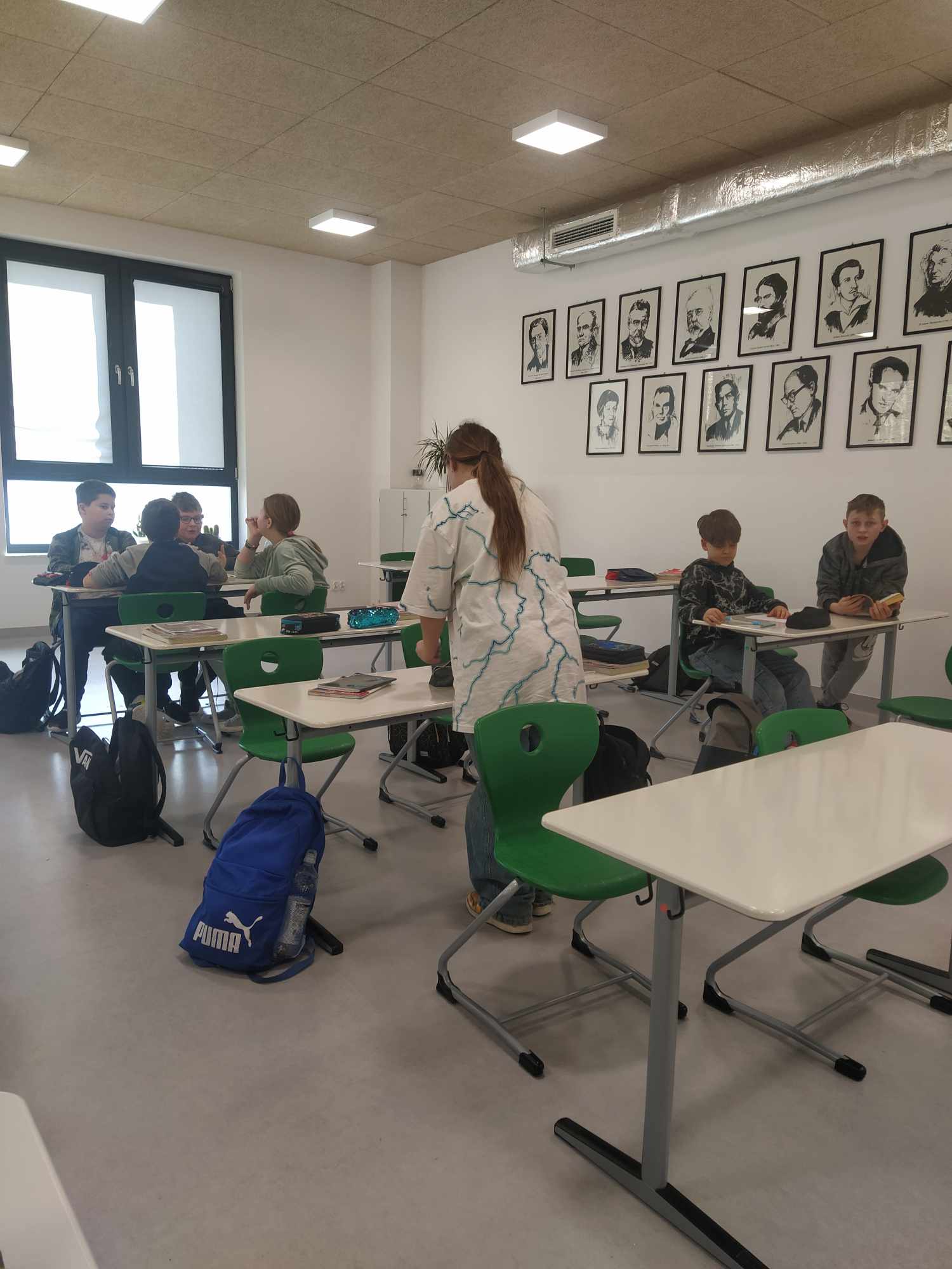 Uczniowie klasy 5 a, biorący udział w innowacji pedagogicznej „Magiczna biblioteka”, w ostatnim czasie brali udział w cyklu magicznych zajęć, związanych z lekturą „Harry Potter i kamień filozoficzny”. Podczas lekcji uczniowie mieli okazję pracować w grupach nad zagadnieniami takimi jak: charakterystyka głównych bohaterów, opis Hogwartu oraz uczących w nim nauczycieli. Klasa przypomniała sobie magiczne zaklęcia, niezbędne do tego, aby móc uczęszczać do Szkoły Magii i Czarodziejstwa.