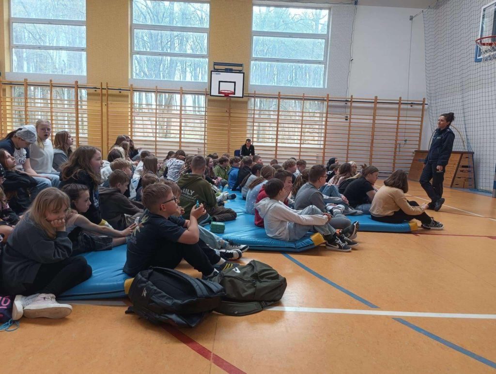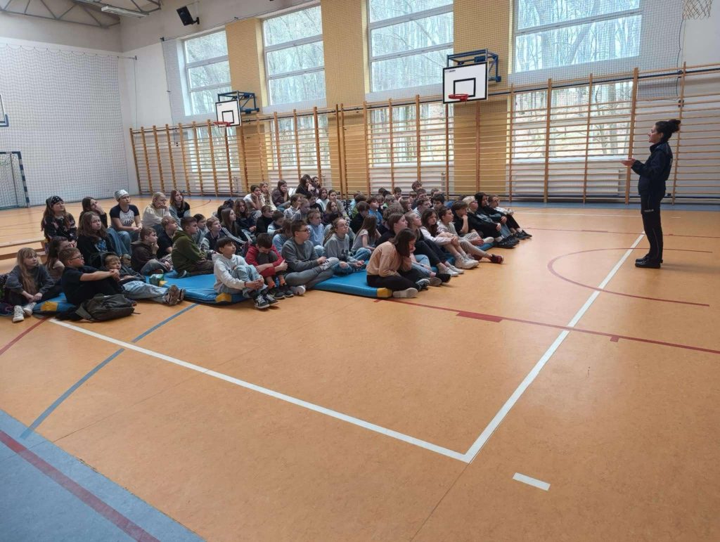 W dniu 14 kwietnia uczniowie klas 4–8 wzięli udział w spotkaniu z Aspirant Karoliną Pruchniak z Komendy Powiatowej Policji w Wejherowie. Tematem prelekcji była cyberprzemoc, czyli przemoc z użyciem Internetu, telefonów i innych środków komunikacji elektronicznej. Podczas spotkania uczniowie dowiedzieli się: czym jest cyberprzemoc i jakie może przybierać formy (np. wyśmiewanie w sieci, groźby, publikowanie ośmieszających zdjęć, hejt), jakie są skutki psychiczne i prawne takiego działania – zarówno dla ofiar, jak i sprawców, jak reagować, gdy jesteśmy świadkami lub ofiarami przemocy w sieci, gdzie szukać pomocy (np. nauczyciel, rodzic, policja, pomoc telefoniczna).