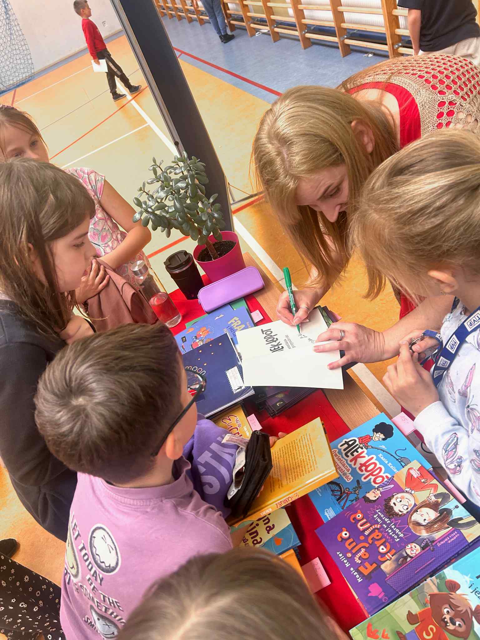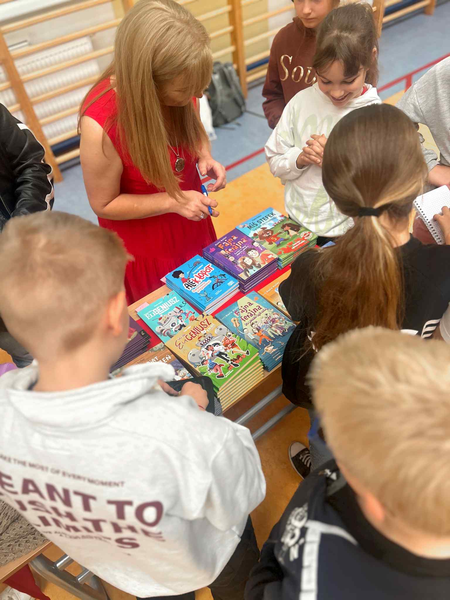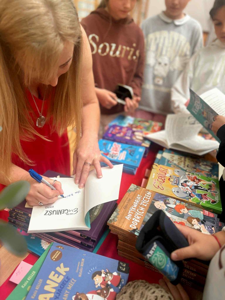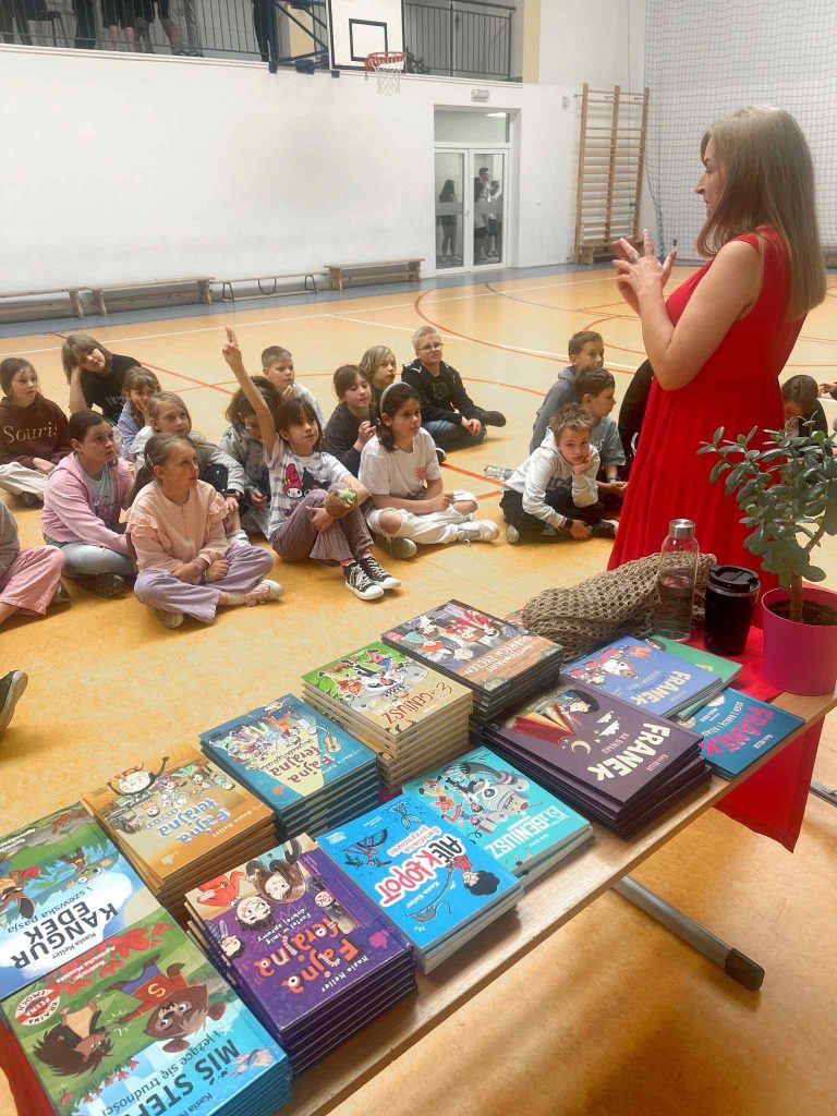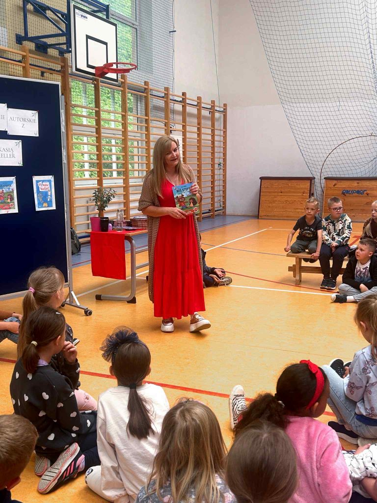 Niecodziennie w szkolne progi zagląda ktoś, kto zna się na słowach lepiej niż niejeden słownik. A jednak dziś odwiedziła nas pani Katarzyna Keller, autorka książek dla dzieci takich tytułów jak ,,Tomasz Niefart”, ,,Miś Stefek i jeżące się trudności” czy ,,Fajna ferajna” (i to naprawdę fajna!). Pani Kasia spotkała się z uczniami klas 1–3 i opowiedziała im o tym, jak wygląda życie pisarza (i nie polega tylko na siedzeniu z herbatką i stukaniu w klawiaturę).