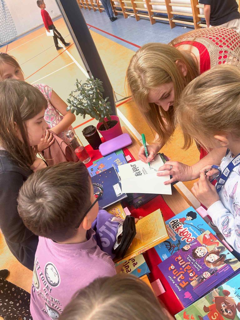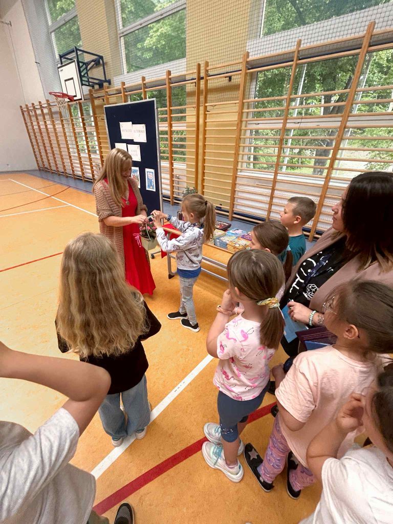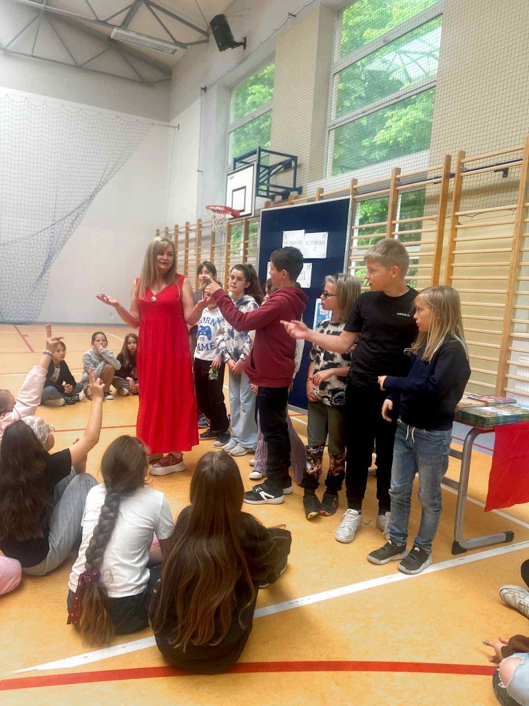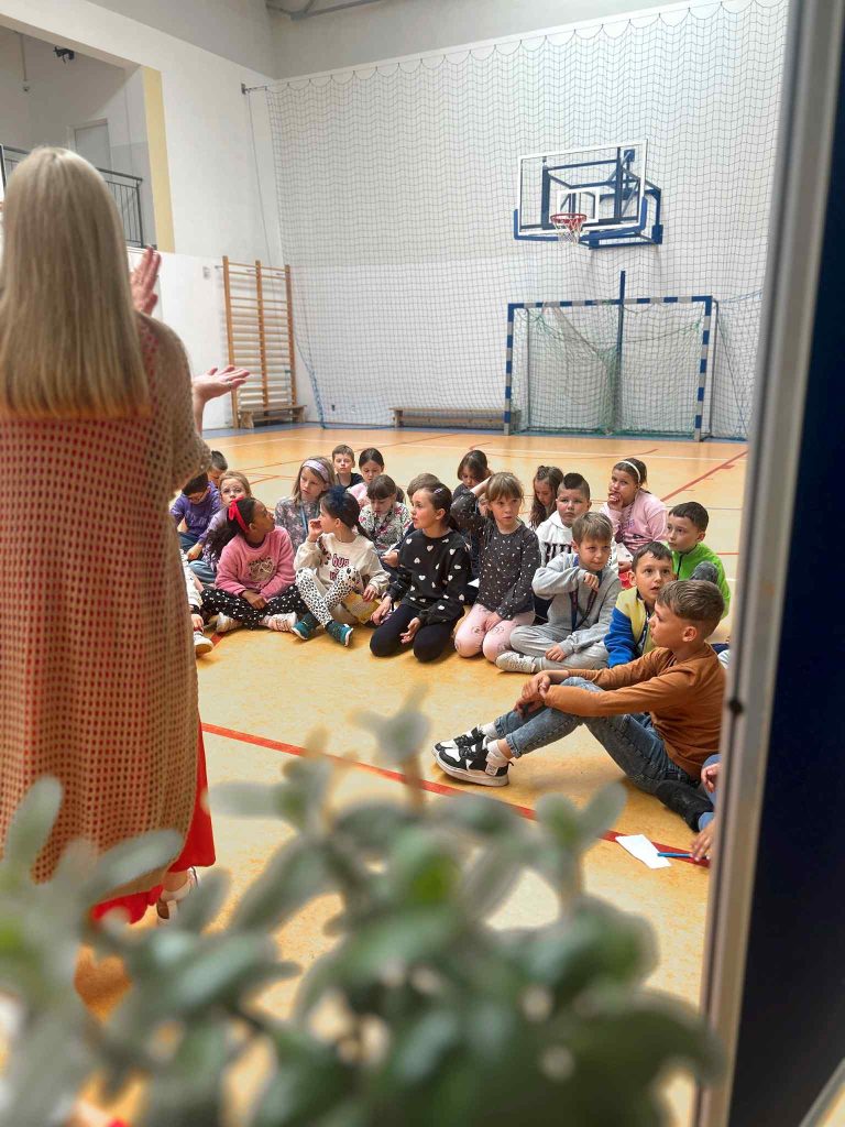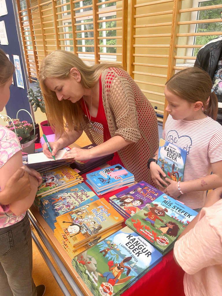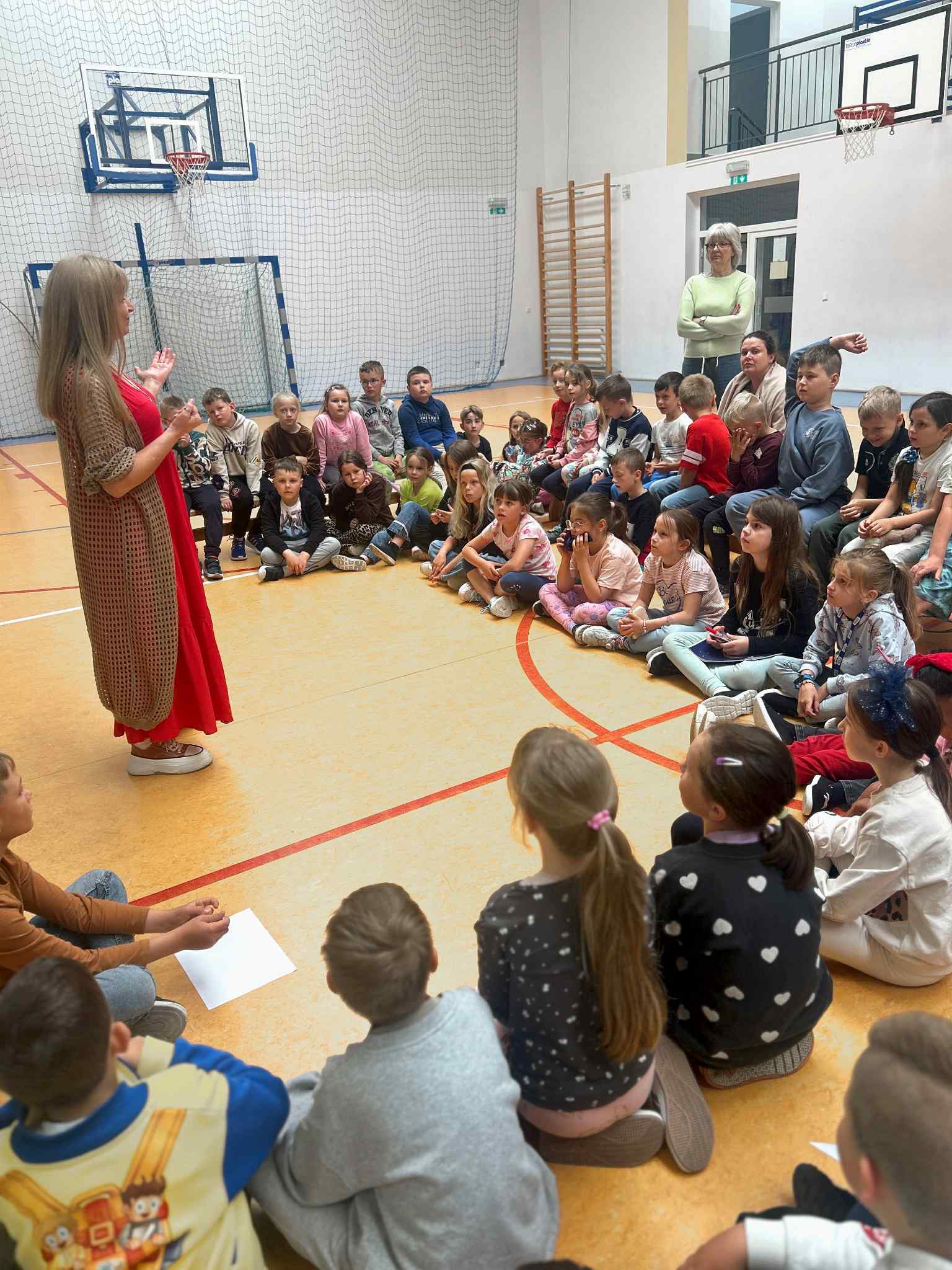 Była też zabawa z wyobraźnią, emocji nie brakowało. Dzieci szybko zrozumiały, że najpotężniejszym narzędziem pisarza nie jest pióro, ale głowa pełna pomysłów i wyobraźnia. Uczniowie zadawali pytania z takim zaangażowaniem, że spokojnie mogliby prowadzić własny talk-show. A Pani Kasia? Z uśmiechem odpowiadała na każde z nich. Spotkanie było nie tylko ciekawą lekcją o książkach, ale też pokazem siły wyobraźni.
