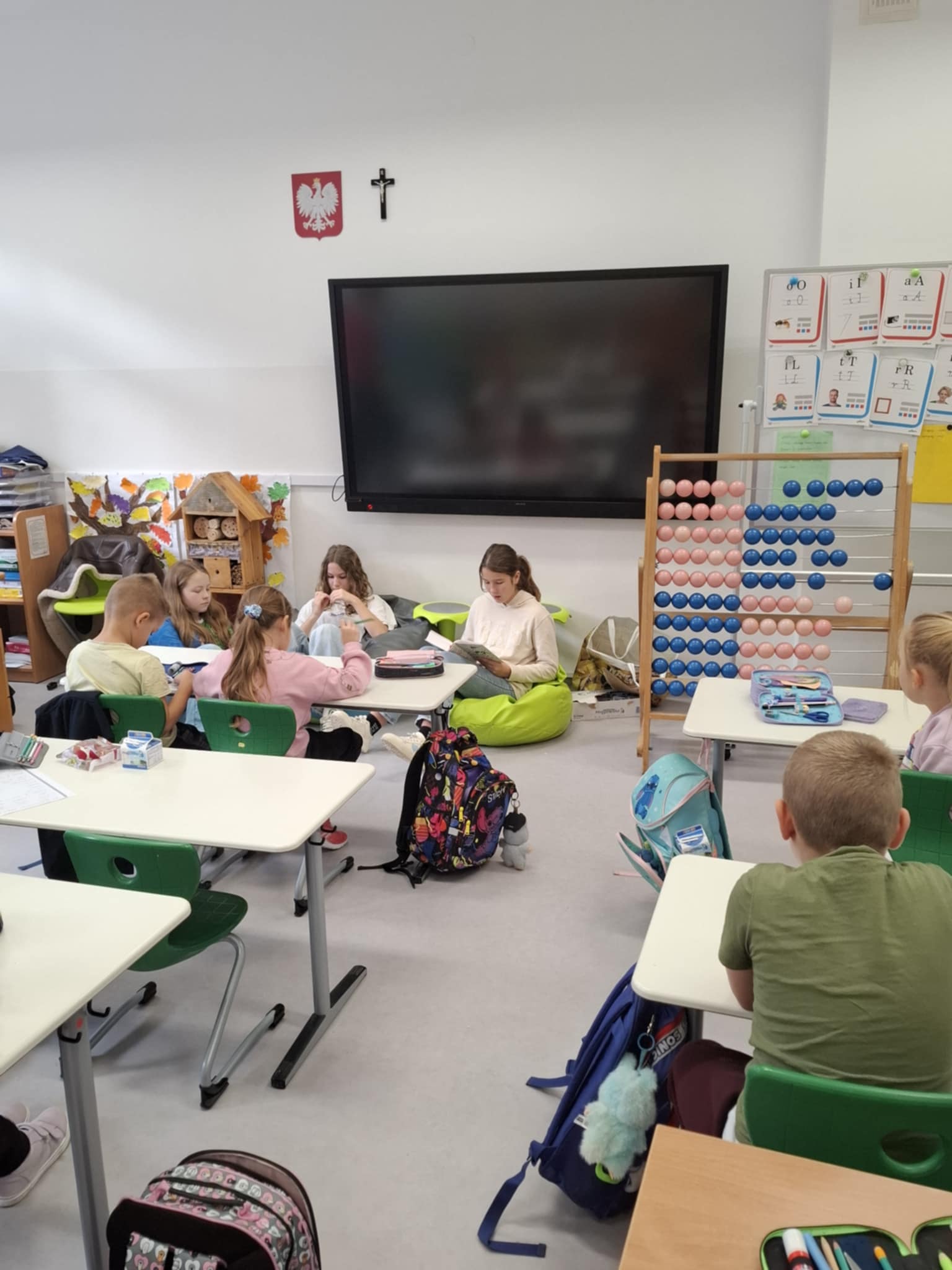 We wtorek – 4 listopada Wolontariuszki z klasy 5 a i 5 b udały się do uczniów z klasy 1 b, aby poczytać im przygody Mikołajka. Był to bardzo miło spędzony czas, podczas którego uczniowie klas młodszych mogli zintegrować się z uczniami klas starszych.