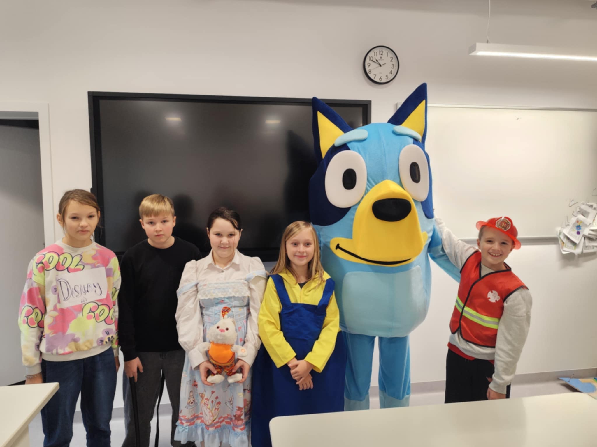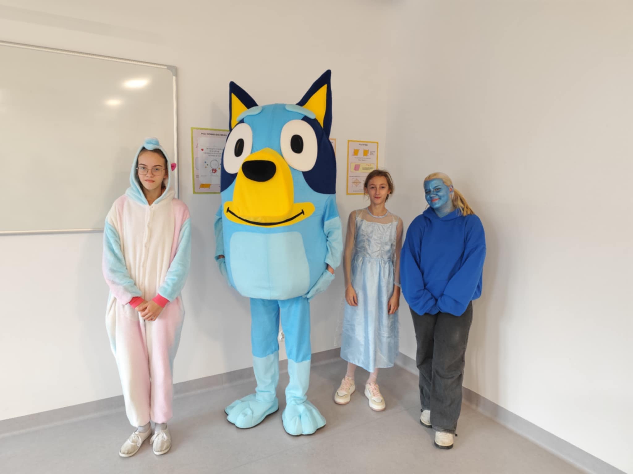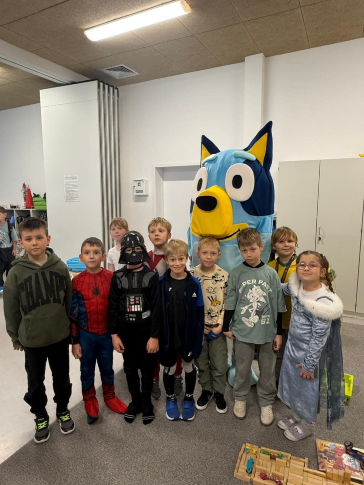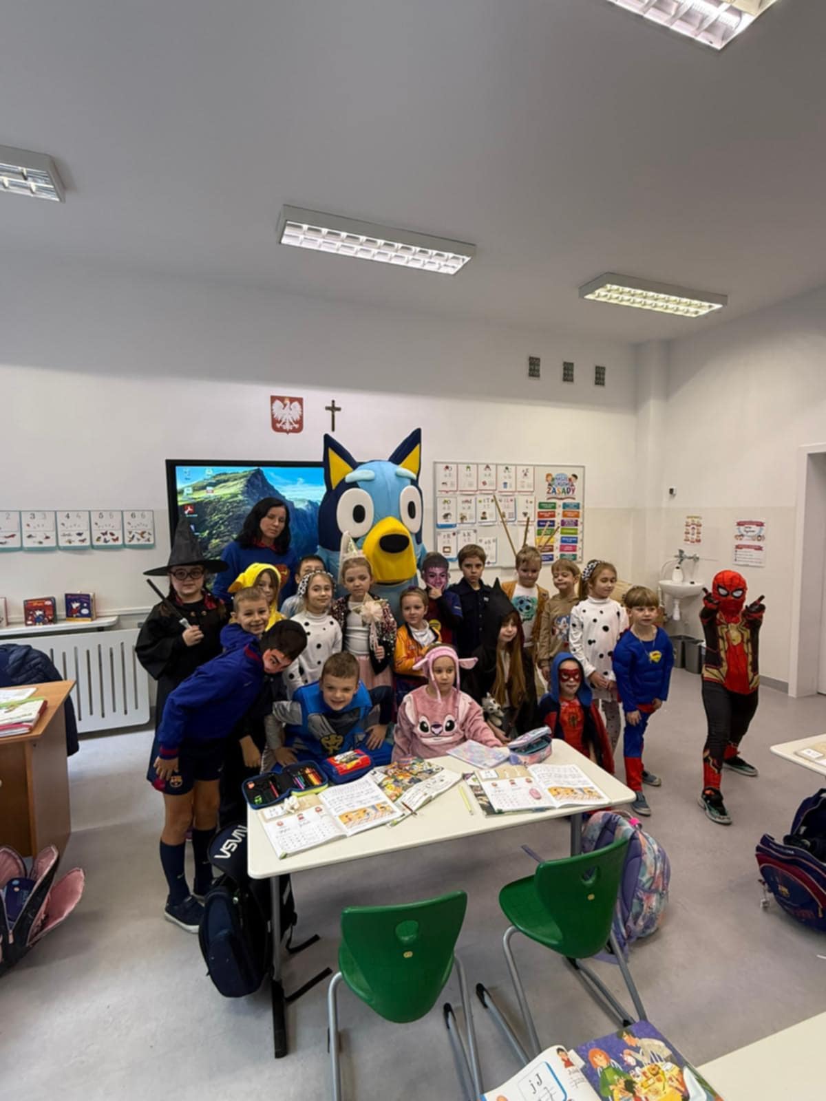 Atmosfera była pełna śmiechu, kreatywności i dobrej zabawy. Największą atrakcją dnia okazała się wizyta maskotki Blue, która wzbudziła ogromną furorę. Uczniowie z entuzjazmem przywitali gościa, robili sobie zdjęcia i przybijali „piątki”. Radość najmłodszych była nie do opisania, a szerokie uśmiechy towarzyszyły im do końca dnia.