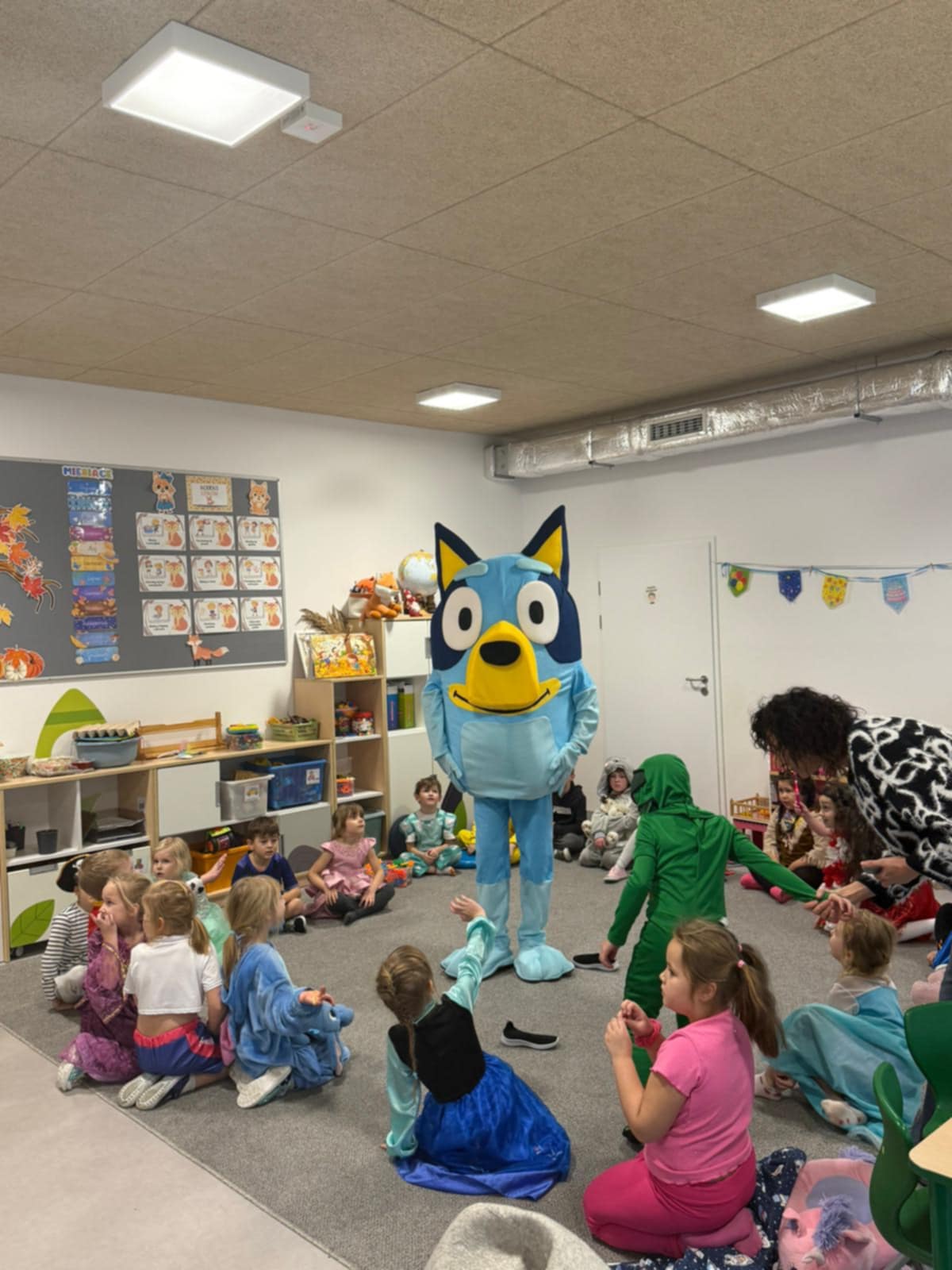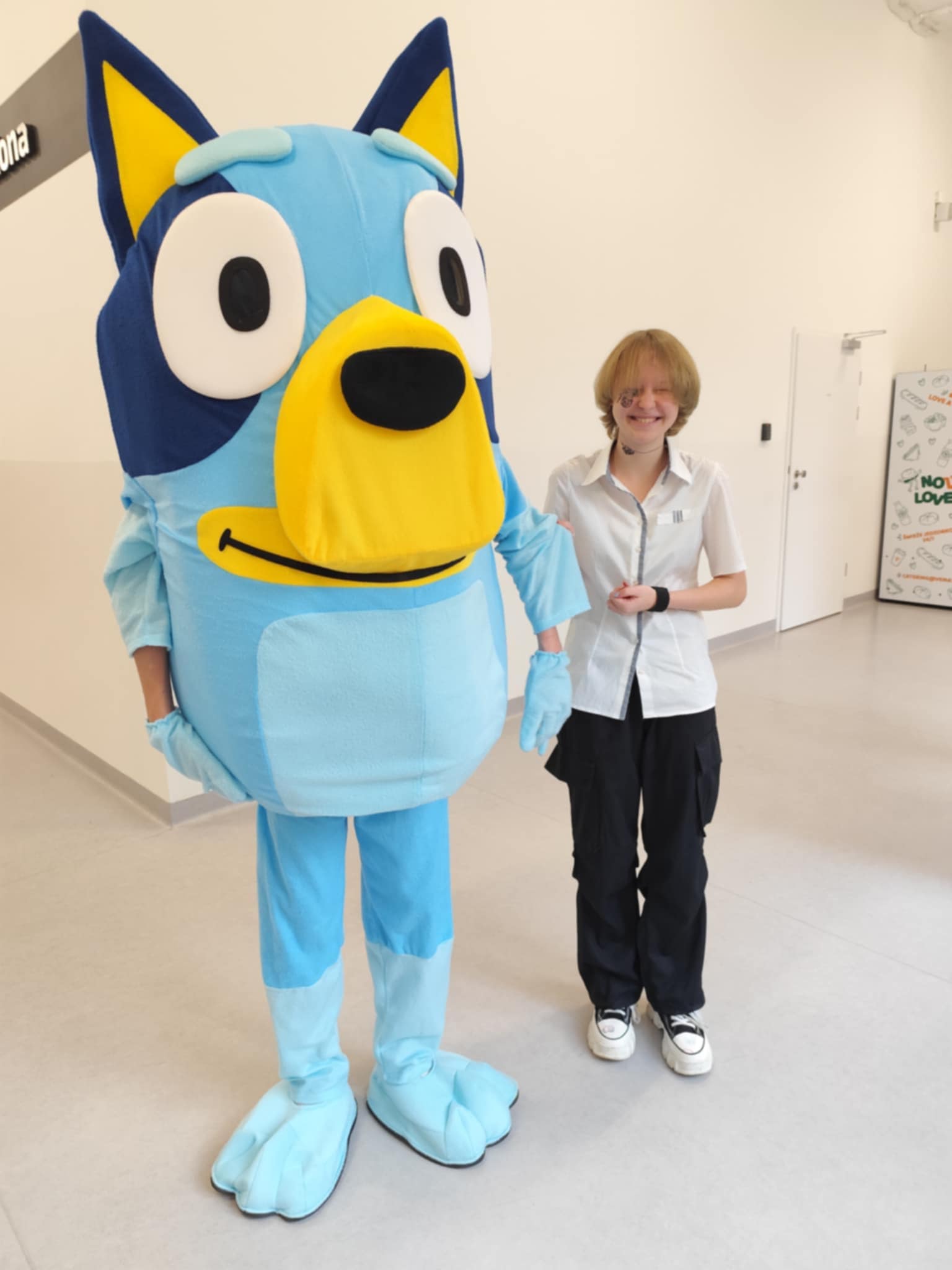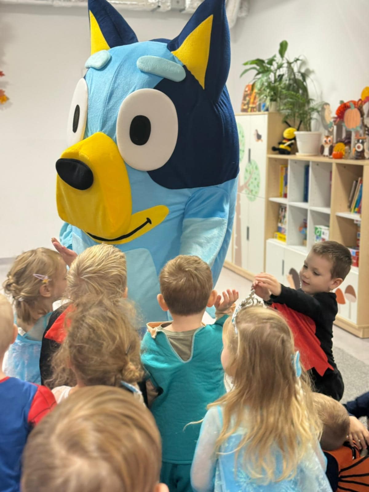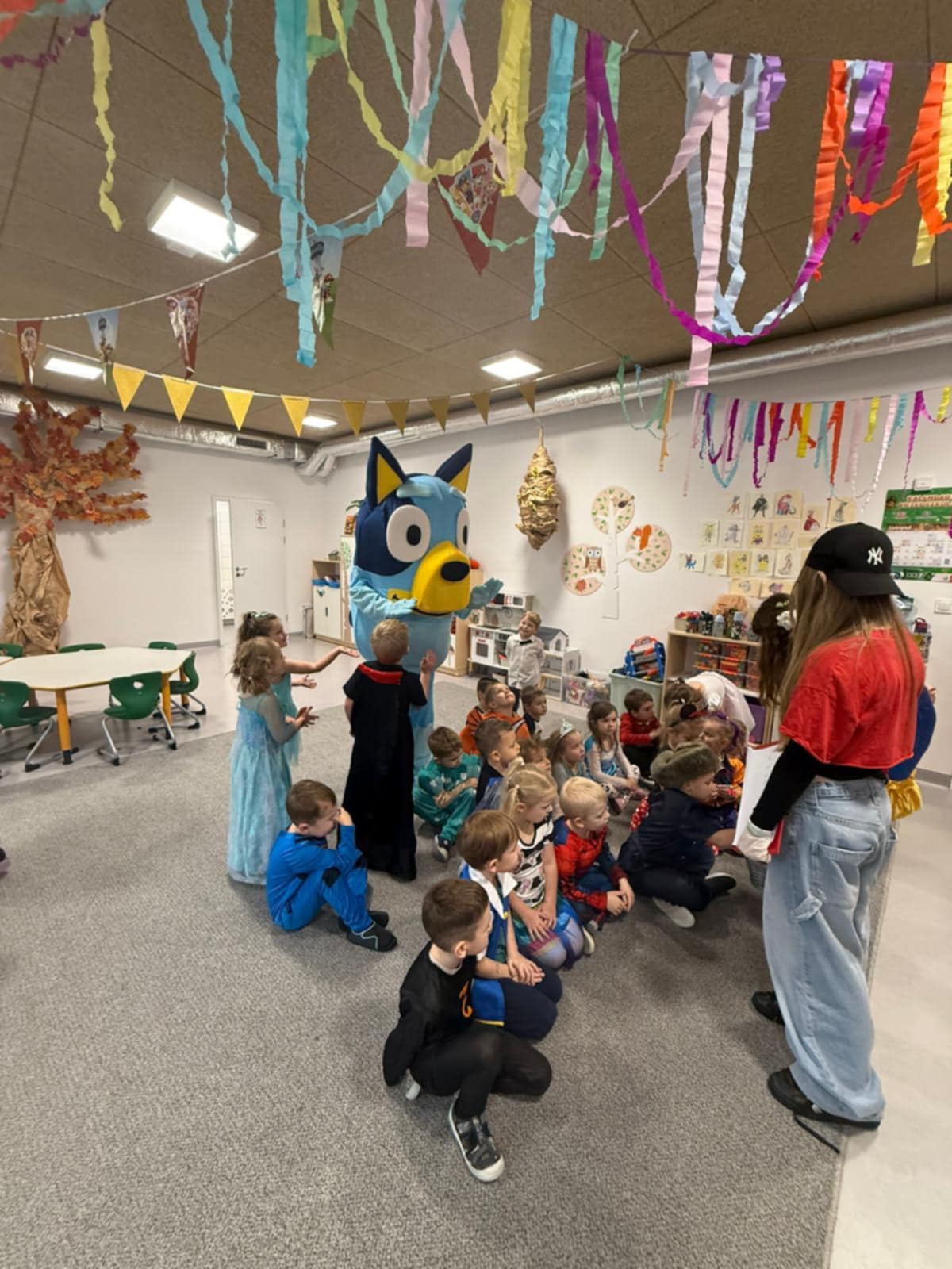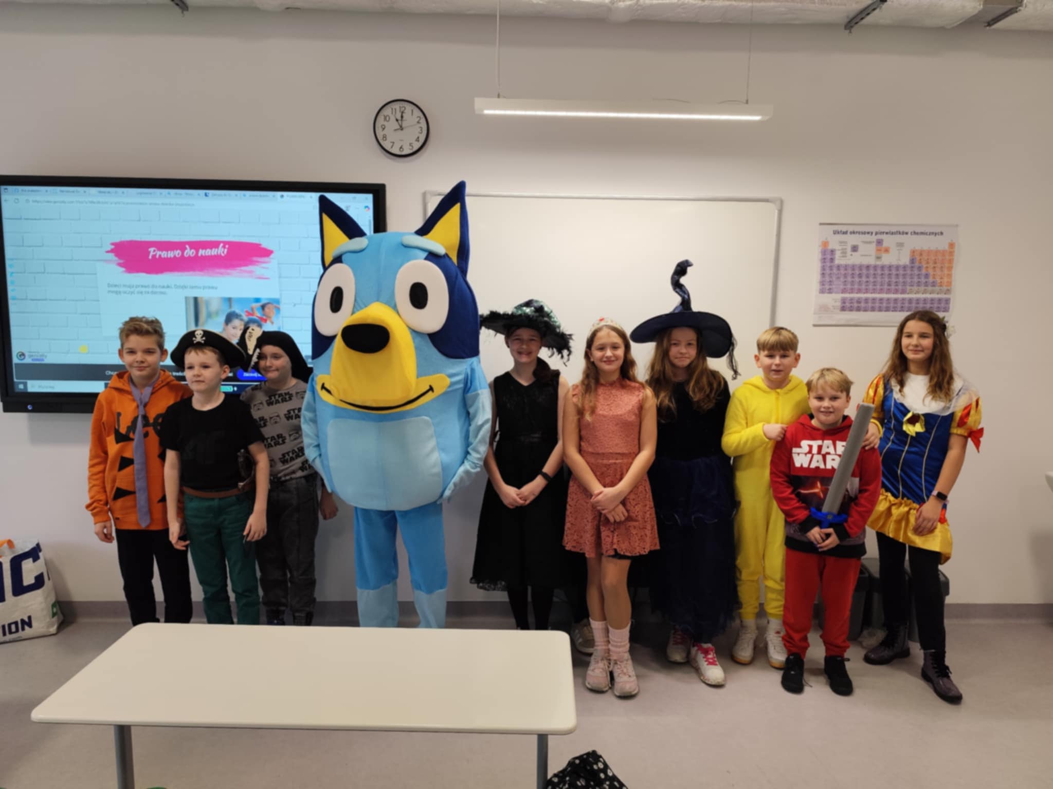 Atmosfera była pełna śmiechu, kreatywności i dobrej zabawy. Największą atrakcją dnia okazała się wizyta maskotki Blue, która wzbudziła ogromną furorę. Uczniowie z entuzjazmem przywitali gościa, robili sobie zdjęcia i przybijali „piątki”. Radość najmłodszych była nie do opisania, a szerokie uśmiechy towarzyszyły im do końca dnia.