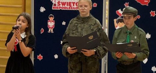 W dniu 10 listopada 2017 roku obchodziliśmy w naszej szkole Narodowe Święto Niepodległości. W szkole odbyła się uroczysta akademia przygotowana przez wychowawców klasy IVA Panią Monikę Stanek i klasy IIIA Panią Alicję Kankowską oraz nauczyciela muzyki i plastyki Panią Justynę Wolską. W trakcie uroczystości uczniowie nawiązali do wydarzeń historycznych i recytowali wiersze okolicznościowe. Chór szkolny po raz kolejny pochwalił się swoimi umiejętnościami, tym razem prezentując utwory patriotyczne. W trakcie uroczystości mieliśmy okazję zobaczyć nową i ciekawie przygotowaną dekorację okolicznościową. Uwagę uczestników uroczystości zwróciły także nowe stroje kaszubskie, w których wystąpił nasz szkolny poczet sztandarowy. Obchody podsumowała Pani Dyrektor, która podziękowała wszystkim uczestnikom i nauczycielom za przygotowanie szkolnej akademii oraz zaprosiła wszystkich chętnych do udziału w sobotnich obchodach Święta Niepodległości, które rozpoczną się o godzinie 10.00 Mszą świętą w Kościele pw. WNMP i św. Katarzyny przy ulicy Gdańskiej. W miejskiej uroczystości szkołę reprezentować będą oprócz dyrekcji także uczniowie ze sztandarem szkolnym.