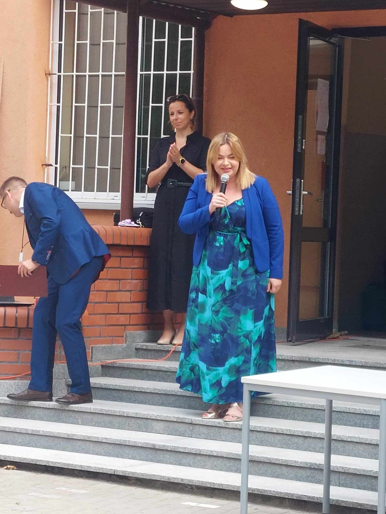 Pani Dyrektor Monika Halczak – Lewandowska złożyła podziękowania w kierunku nauczycieli, którzy przez cały rok szkolny czuwali nad bezpieczeństwem uczniów oraz rozwijali ich zdolności i pasje. Najważniejsze słowa skierowano do uczniów, którzy są sercem naszej szkoły. Nie zapomniano o ich rodzicach, którzy czuwają nad ich rozwojem i zapewniają im wsparcie oraz miłość. Głos na prośbę Pani Dyrektor zabrała Pani Maria Kiedrowska – przewodnicząca Rady Rodziców. Dzięki licznym działaniom, podejmowanym przez rodziców udało się Radzie między innymi zakupić sprzęt nagłośnieniowy. Dzięki organizacji imprez takich jak festyny pozyskiwane są nie tylko środki na rozwój szkoły, ale przede wszystkim jest to okazja do integracji lokalnej społeczności.
