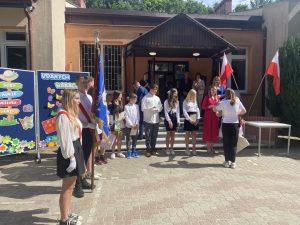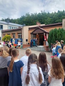 W piątek – 21 czerwca w naszej szkole odbyło się zakończenie roku szkolnego 2023/2024. Dla naszych uczniów i nauczycieli był to pracowity rok, obfitujący w sukcesy i liczne osiągnięcia. Uroczystość rozpoczęto od odśpiewania hymnu państwowego w obecności nowego pocztu sztandarowego. Nad przebiegiem apelu czuwał Pan Sebastian Dubert, który w pierwszej kolejności poprosił o zabranie głosu Panią Hannę Janiak – Sekretarz Urzędu Miasta Redy, która życzyła uczniom bezpiecznego i udanego wakacyjnego wypoczynku. Pani Sekretarz podkreśliła także jak wyjątkowym i pięknym miejscem, które dba o swoich uczniów jest nasza Piątka. Następnie głos zabrał Wiceprzewodniczący Rady Miejskiej w Redzie Pan Leszek Hebel, który także złożył uczniom najlepsze życzenia z okazji zakończenia roku szkolnego i życzył dalszych sukcesów.