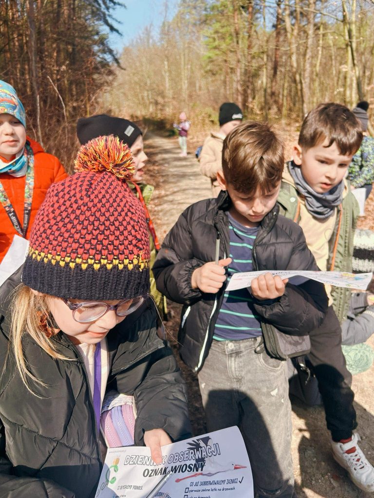 Dzisiaj uczniowie klasy 1C wraz ze swoim wychowawcą wyruszyli na wiosenną przygodę! Podczas lekcji przyrody poszukiwali oznak nadchodzącej wiosny – dostrzegli pierwsze pąki na drzewach, wiosenne kwiaty i śpiewające ptaki. Wszystko zanotowali w dzienniku obserwacji.
