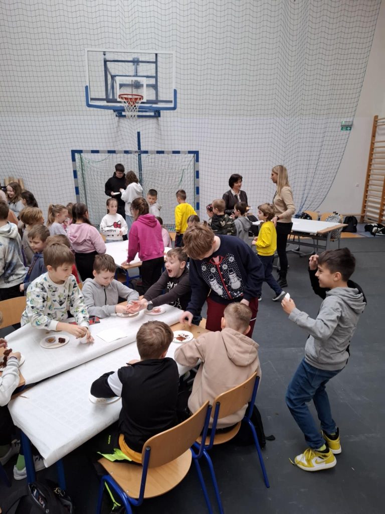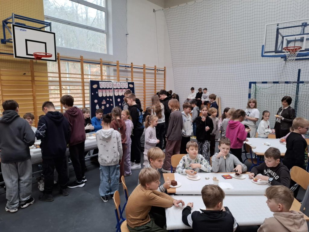 Szczególne podziękowania kierujemy do Rodziców oraz Uczniów, którzy przygotowali przepyszne wypieki. Dziękujemy także Paniom: Joannie Soitz, Magdalenie Gurzędzie, Joannie Piaseckiej, Irenie Stępniewskiej i Marcie Szulc – Przybył za wypiek babeczek i rogalików. Dziękujemy także Panu Marcinowi Nosewiczowi, który przygotował salę na nasz kiermasz oraz Paniom z obsługi za pomoc przy porządkowaniu sali.