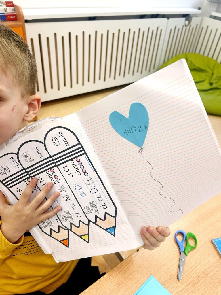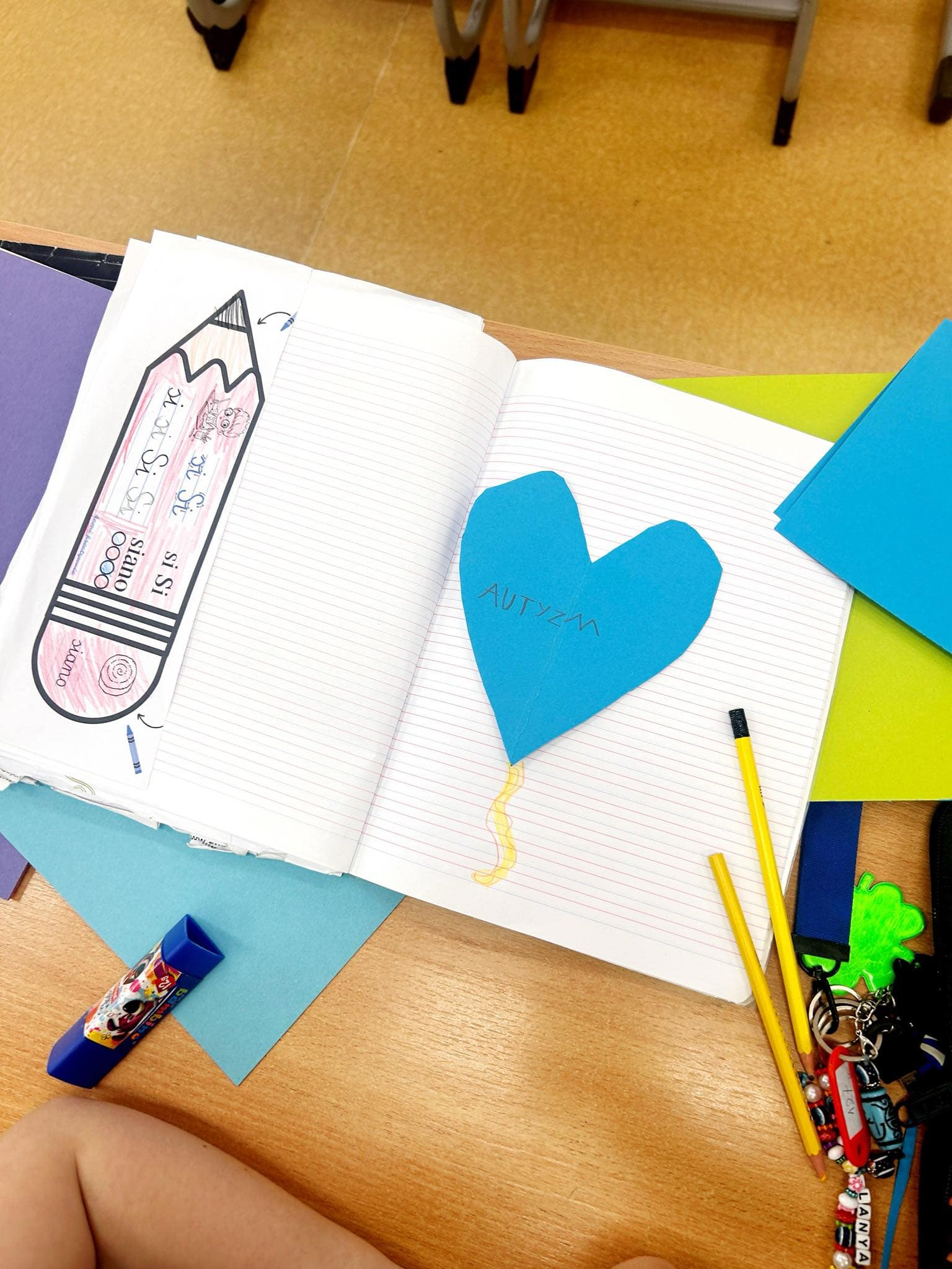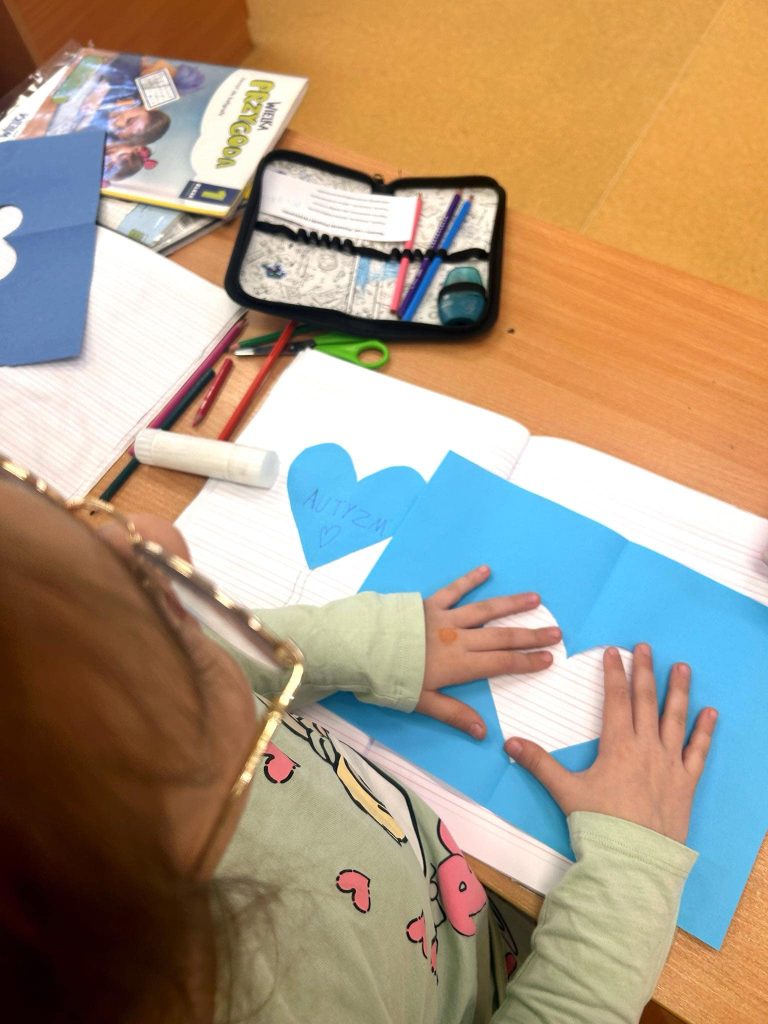 Uczniowie klasy 1C obchodzili Dzień Świadomości Autyzmu, dowiedzieli się, czym jest autyzm i jak ważne jest wspieranie osób w spektrum. Aby wyrazić swoją solidarność, dzieci wykonały niebieskie serduszka, które wkleili do swoich zeszytów jako symbol akceptacji i wsparcia.