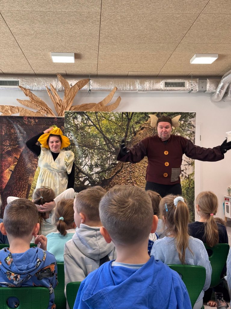 Odział przedszkolny odwiedził bardzo lubiany przez dzieci Teatr Gargulec. Tym razem aktorzy zaprezentowali spektakl pt. „Zakochany Troll” Aby odwrócić czar zazdrosnej Wiedźmy, Elf zamieniony w Trolla, za radą mądrego Drzewa przenosi się do innych bajek, gdzie spełnia dobre uczynki: ratuje Czerwonego Kapturka przed wilkiem, budzi Śpiącą Królewnę.