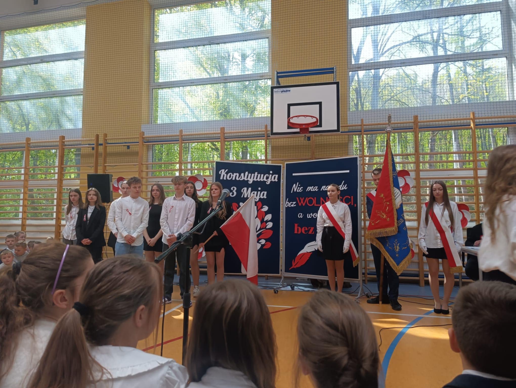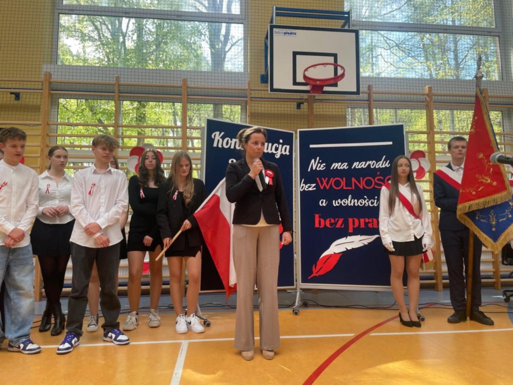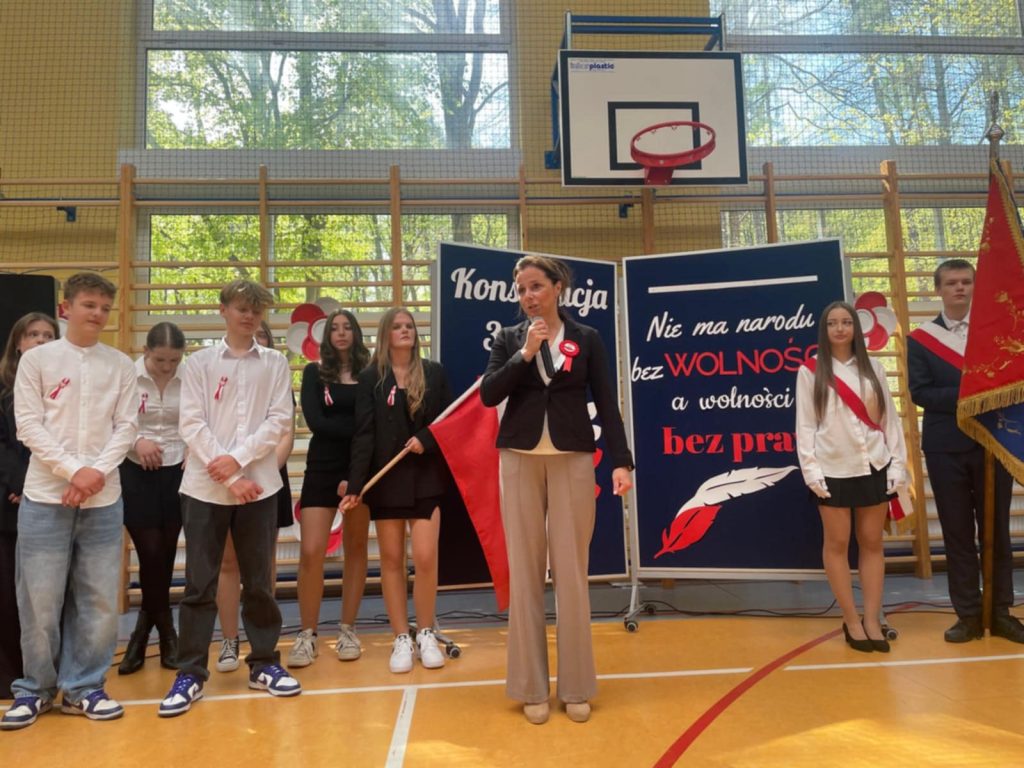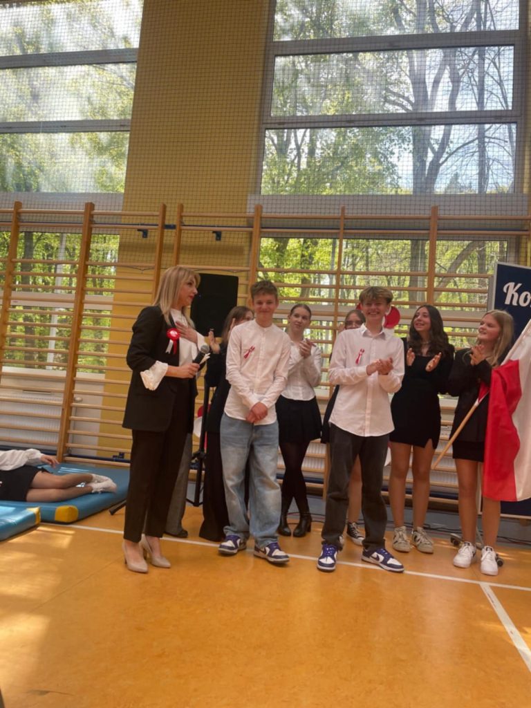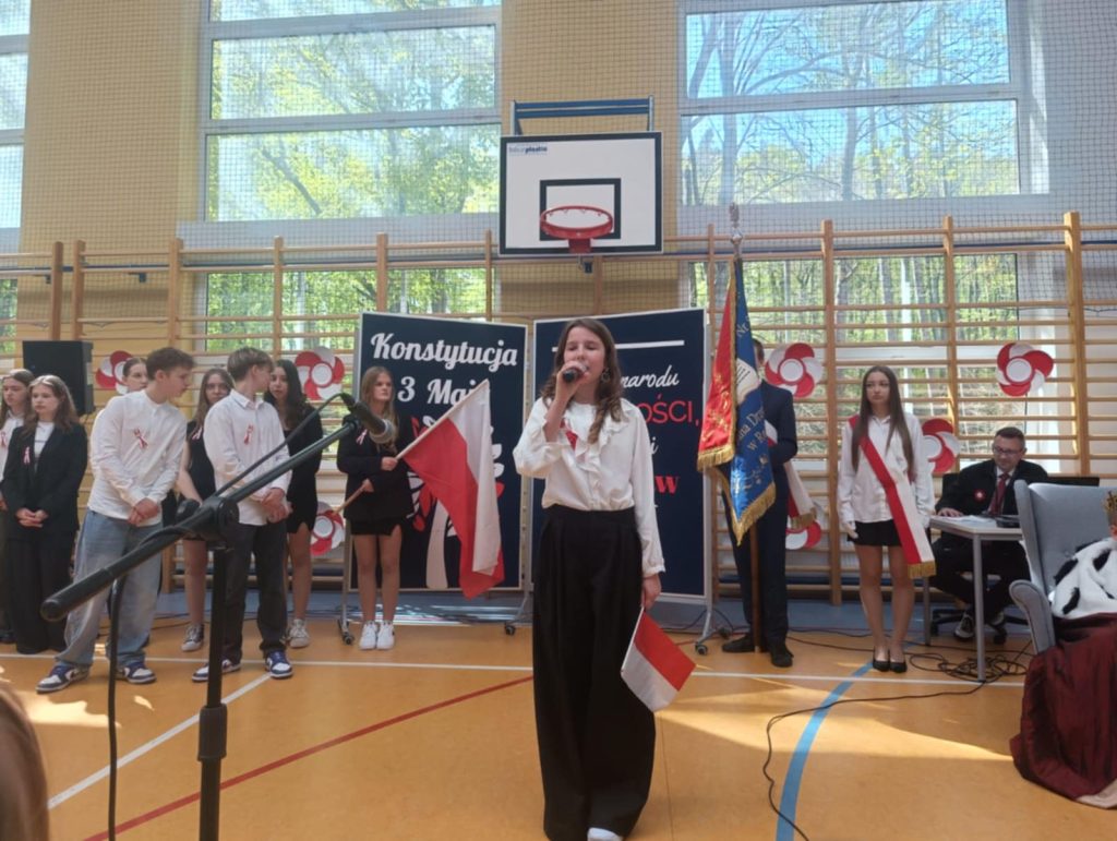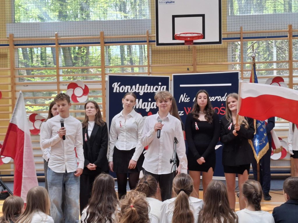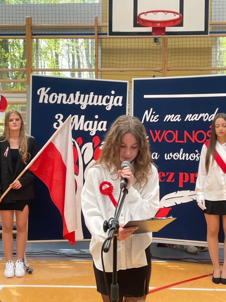 Akademia odnosiła się nie tylko do Konstytucji 3 Maja oraz osób, które brały aktywny udział w jej tworzeniu. Podczas występów uczniowie klasy 8 odśpiewali piosenkę związaną z naszą, polską flagą, której święto przypada 2 Maja. Na koniec uroczystości głos zabrała Pani Wicedyrektor – Agnieszka Gomułka, która nie tylko podziękowała uczniom za występ oraz nauczycielom za jego przygotowanie, ale także odniosła się do znaczenia i wagi świąt, które przypadają na początku maja.