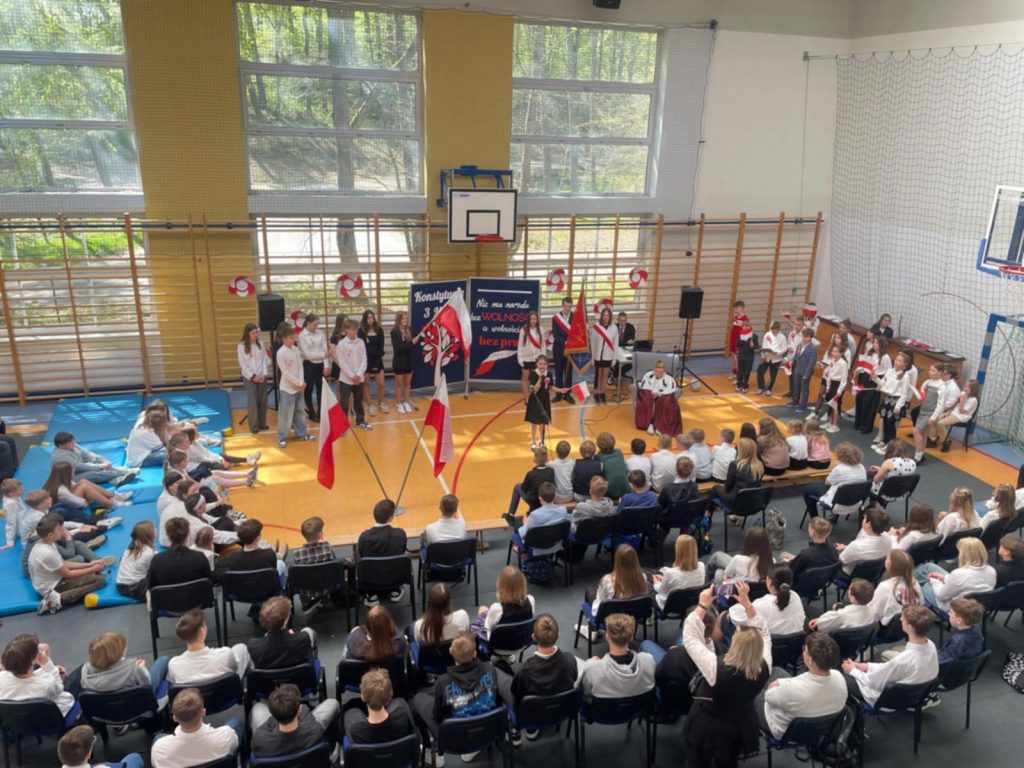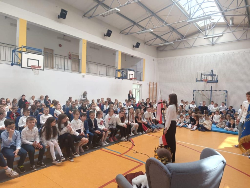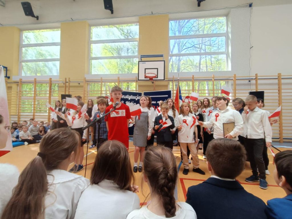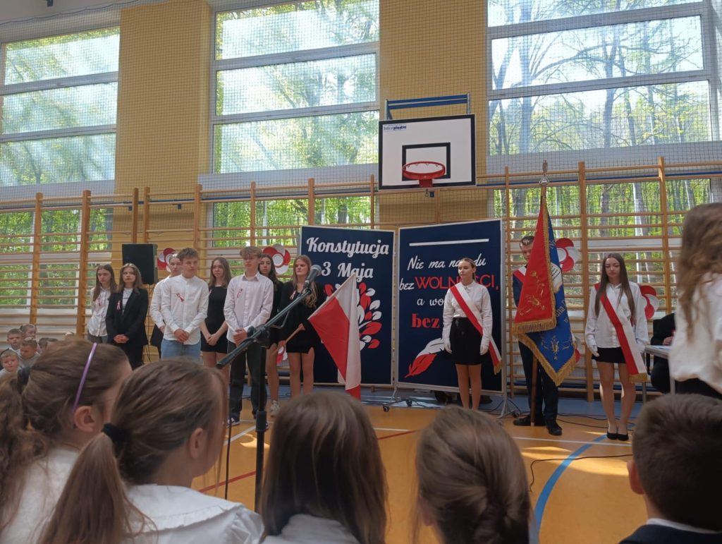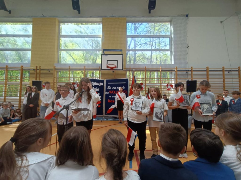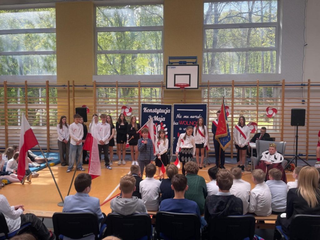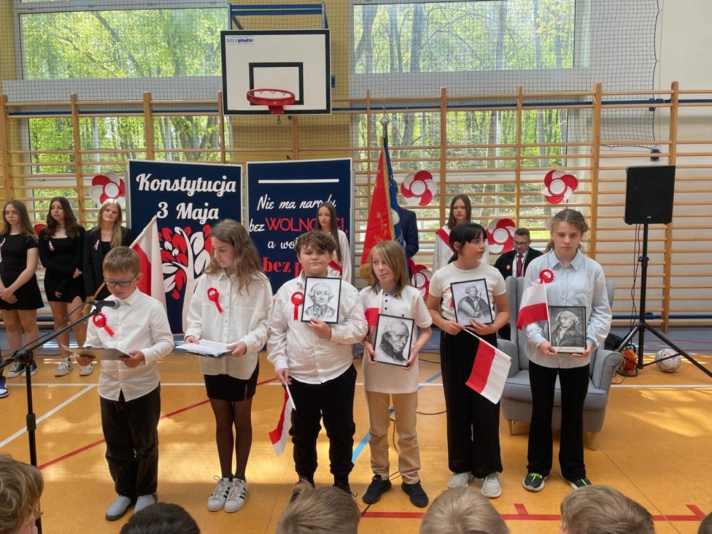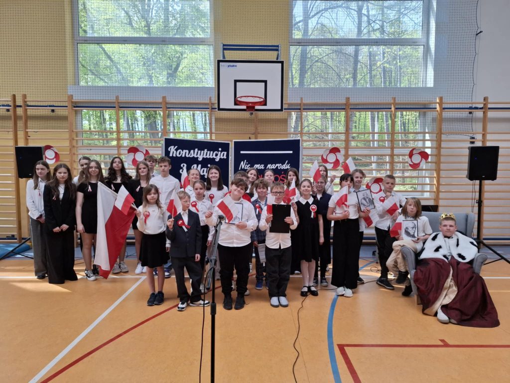 W środę – 30 kwietnia odbyła się w naszej szkole uroczysta Akademia z okazji Świąt Majowych – szczególnie Święta Konstytucji 3 Maja; przygotowana przez uczniów z klas: 3 a, 4 a, 4 b i 8 b pod kierunkiem Pań: Magdaleny Gurzędy i Marty Szulc – Przybył. Uroczystość rozpoczęła się od odśpiewania hymnu państwowego. Następnie uczniowie klas 0 – 8 mieli okazję dowiedzieć się dlaczego obchodzimy Święto Konstytucji 3 Maja i jak ważne jest ono dla naszej historii.