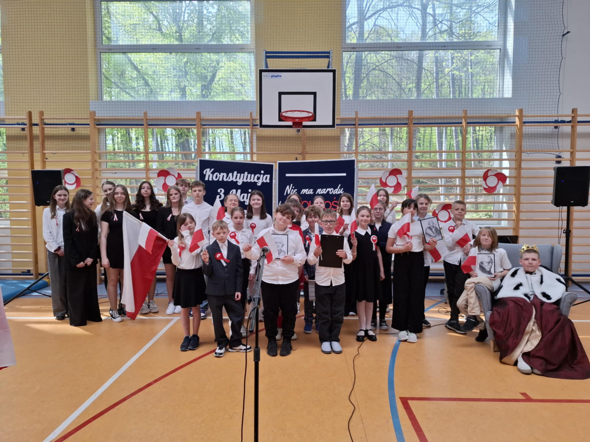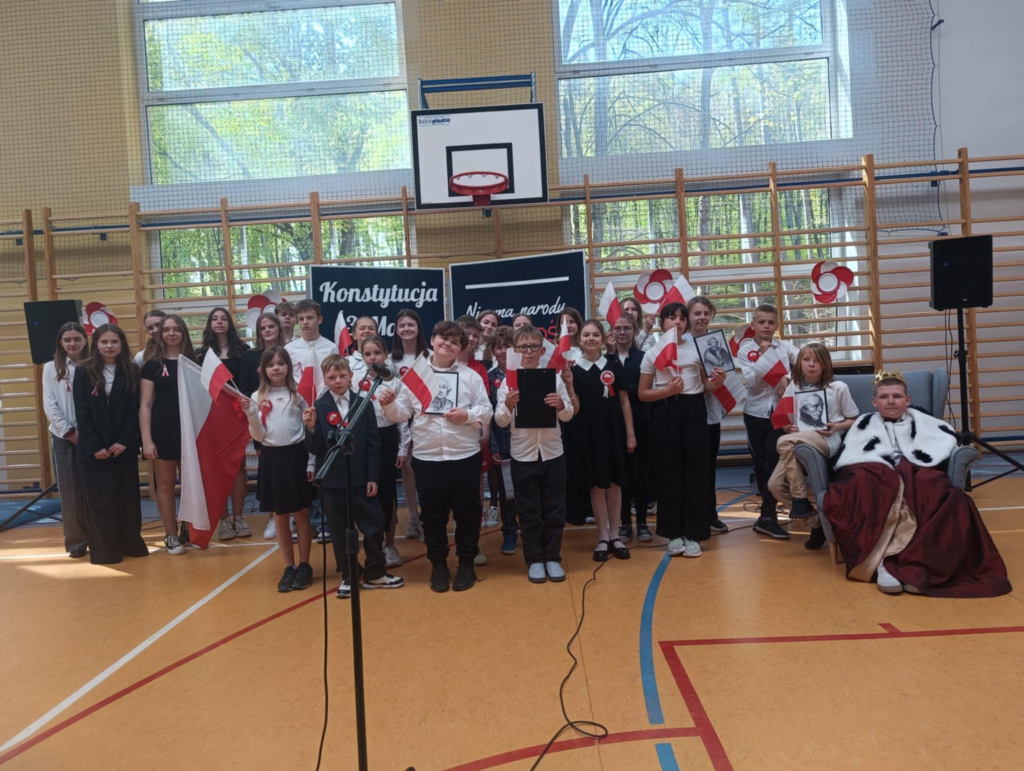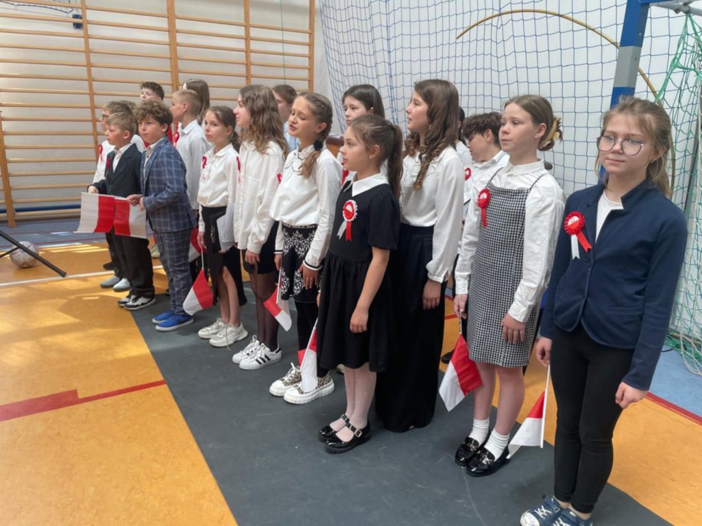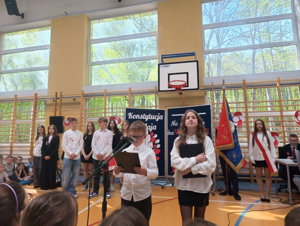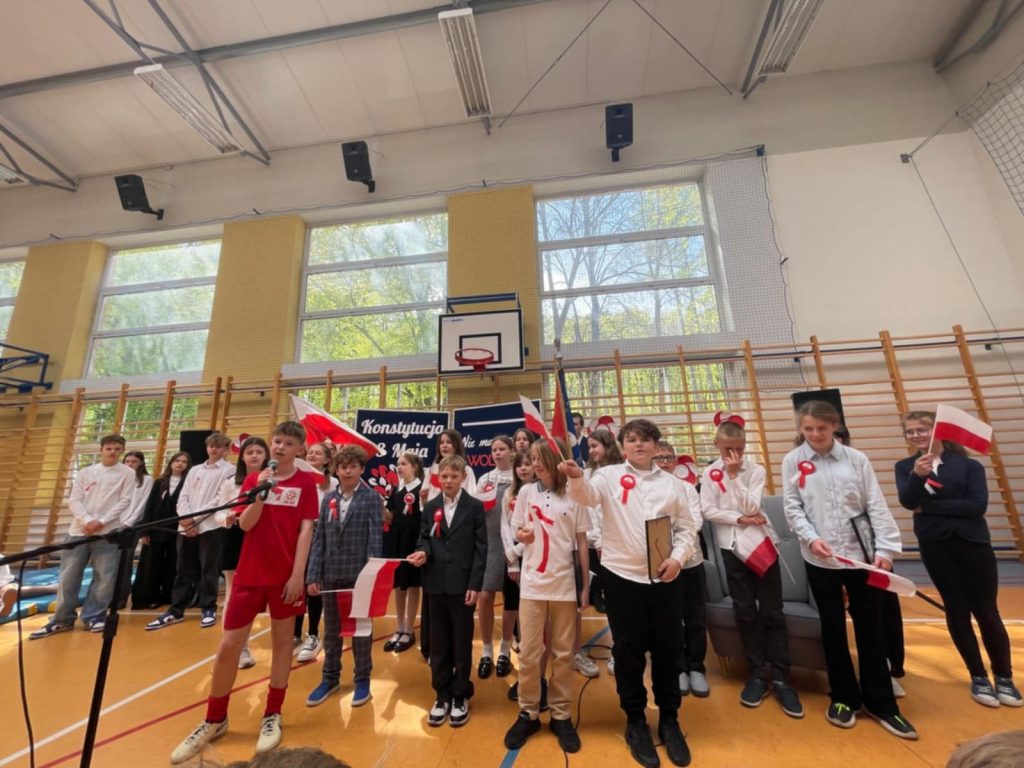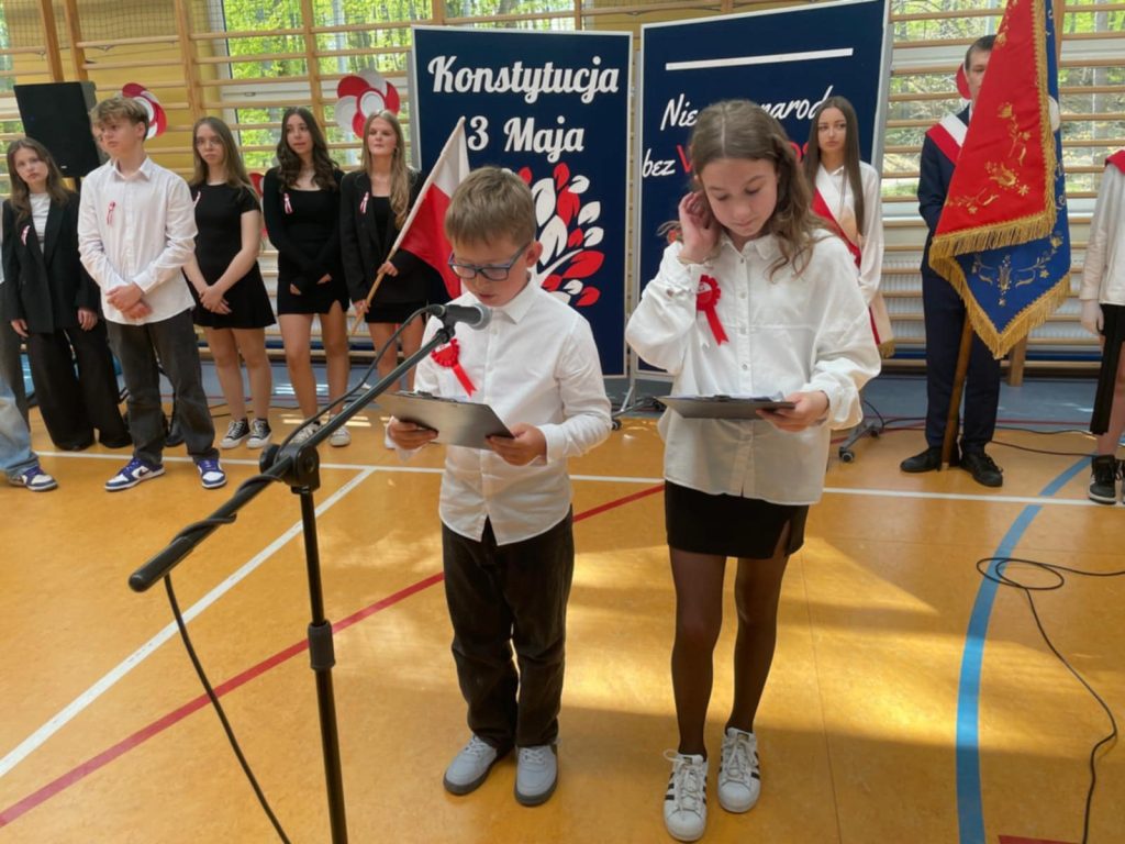 W środę – 30 kwietnia odbyła się w naszej szkole uroczysta Akademia z okazji Świąt Majowych – szczególnie Święta Konstytucji 3 Maja; przygotowana przez uczniów z klas: 3 a, 4 a, 4 b i 8 b pod kierunkiem Pań: Magdaleny Gurzędy i Marty Szulc – Przybył. Uroczystość rozpoczęła się od odśpiewania hymnu państwowego. Następnie uczniowie klas 0 – 8 mieli okazję dowiedzieć się dlaczego obchodzimy Święto Konstytucji 3 Maja i jak ważne jest ono dla naszej historii.