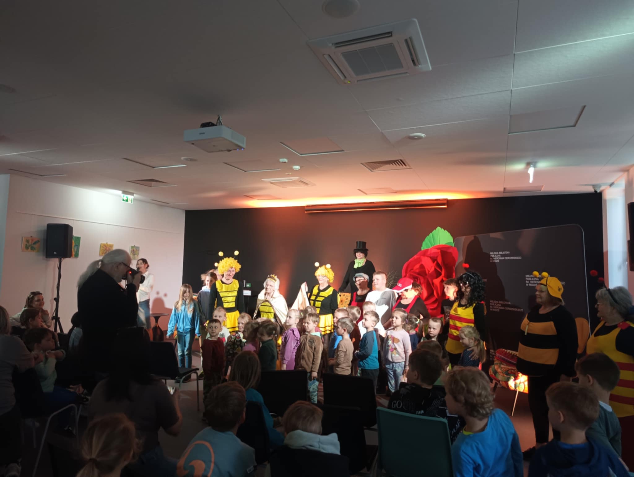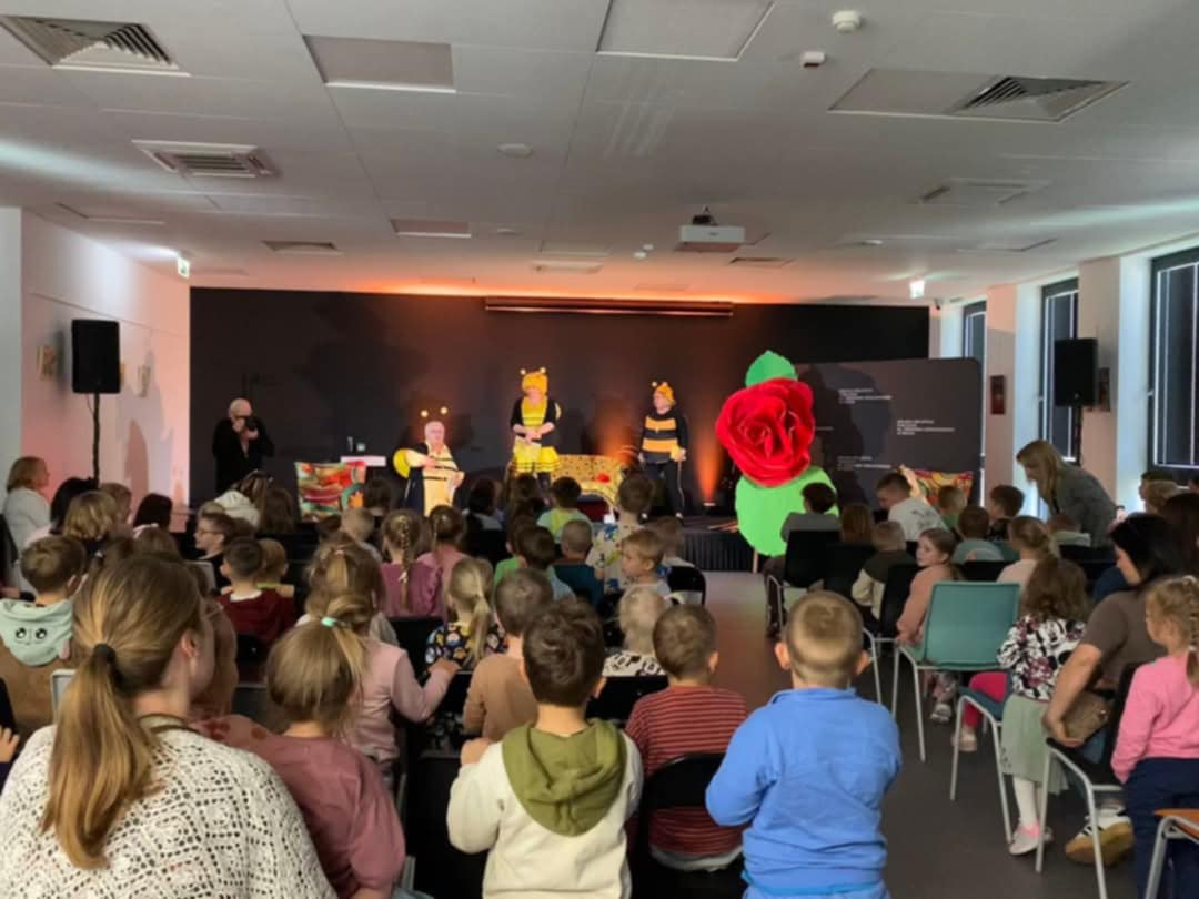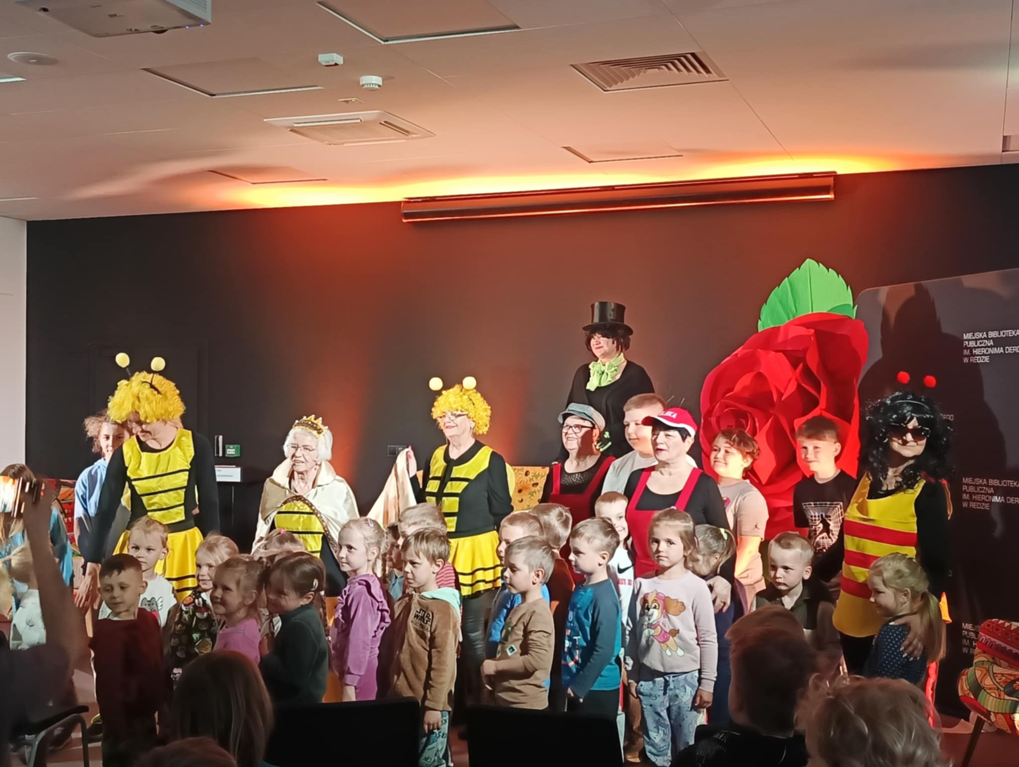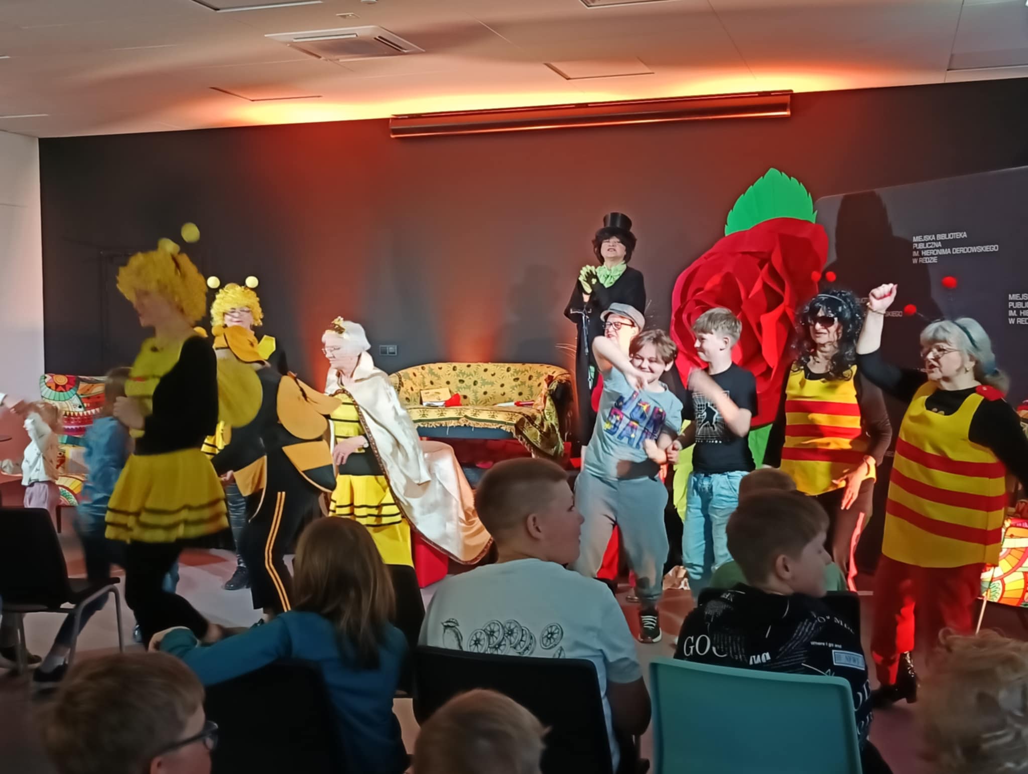 Klasa 4 a na spektaklu „Pszczółka Maja” w Miejskiej Bibliotece w Redzie