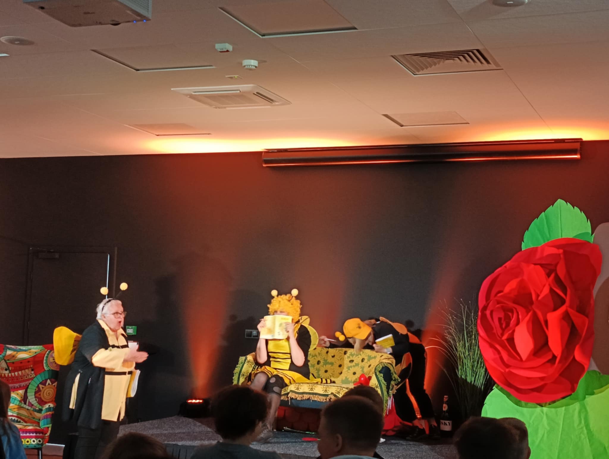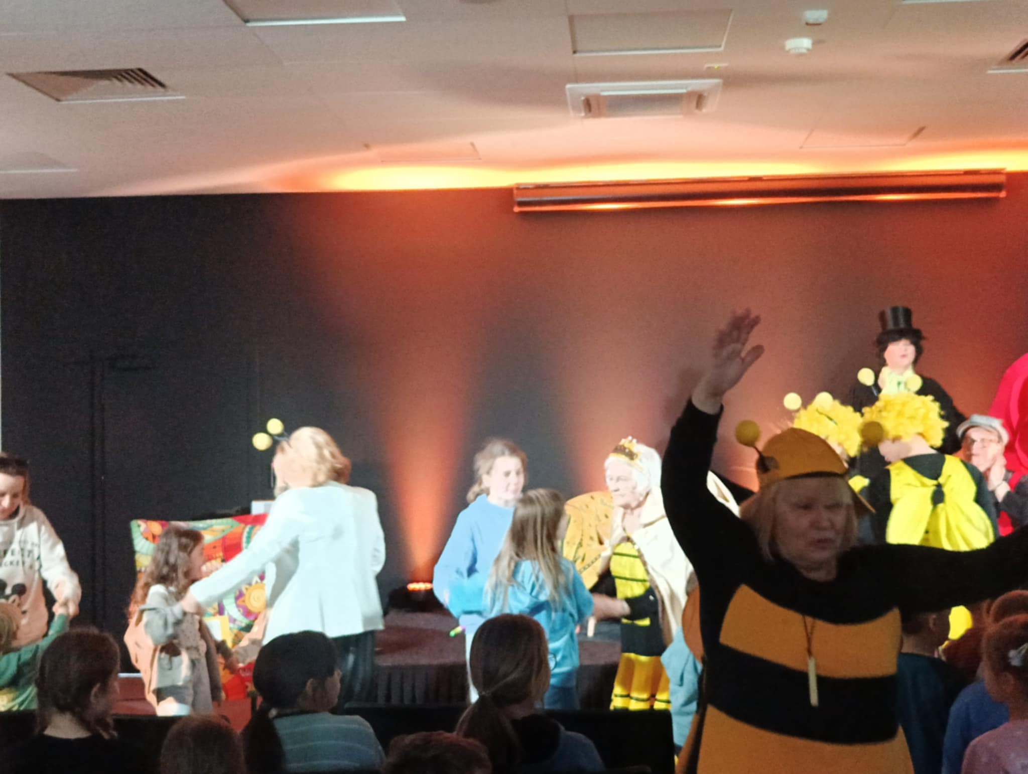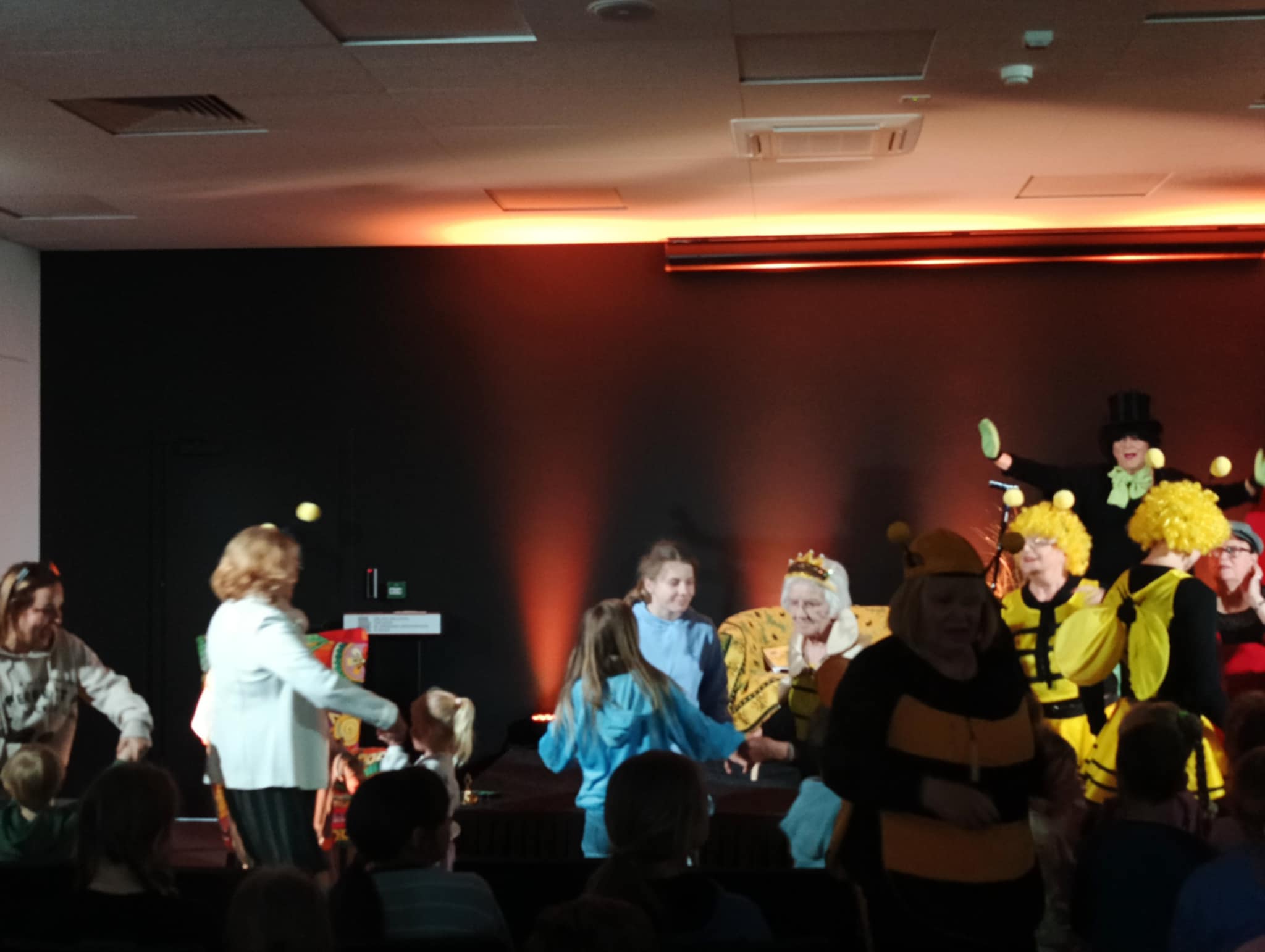 Klasa 4 a na spektaklu „Pszczółka Maja” w Miejskiej Bibliotece w Redzie