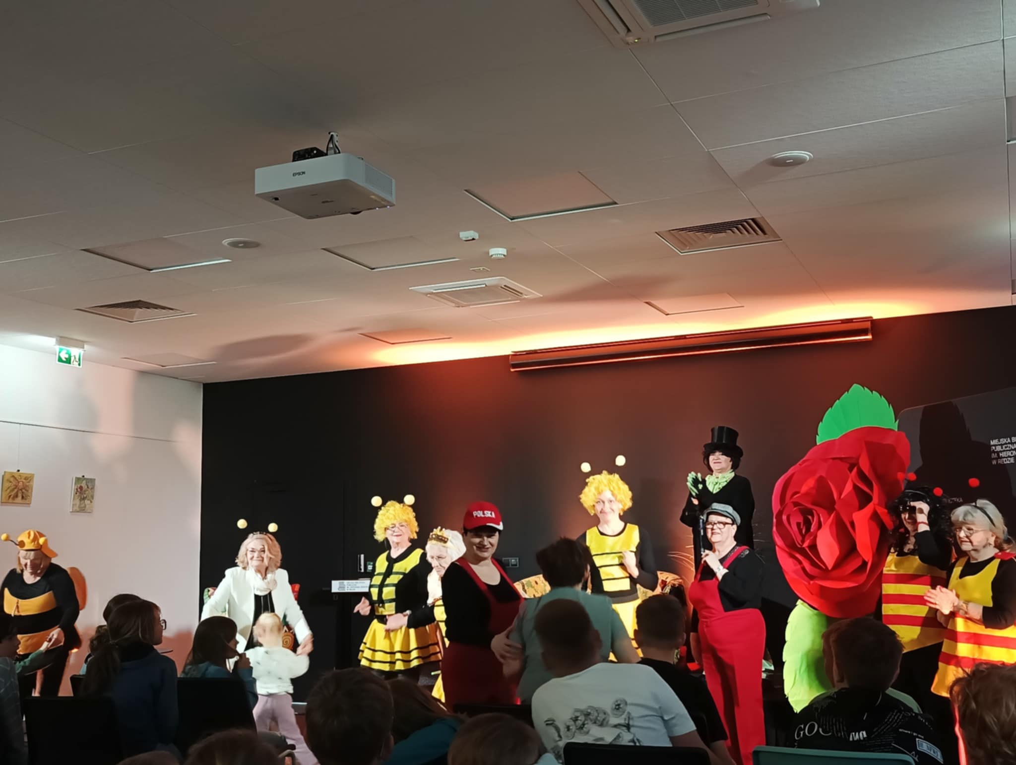 Dnia 7 maja klasa 4 a wybrała się do Miejskiej Biblioteki Publicznej w Redzie na spektakl pt. „Pszczółka Maja”, zorganizowany z okazji Tygodnia Bibliotek. Przedstawienie przygotowała Grupa Teatralna z Redy. Na scenie pojawili się dobrze znani bohaterowie tj. Maja, Gucio, konik polny Filip, mucha, mrówka i inni przyjaciele pszczółek.