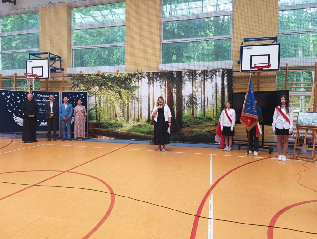 W piątek, 27 czerwca 2025 r., odbyło się uroczyste zakończenie roku szkolnego 2024/2025. Uroczystość rozpoczęła się od wprowadzenia sztandaru szkoły i odśpiewania hymnu państwowego. Następnie głos zabrała Dyrektor Szkoły – Pani Monika Halczak – Lewandowska, która podsumowała mijający rok szkolny, pełen wyzwań, sukcesów i wspólnego zaangażowania. W swoim przemówieniu Pani Dyrektor serdecznie podziękowała uczniom za ich codzienny wysiłek, nauczycielom i specjalistom za profesjonalizm i oddanie, a pracownikom administracji i obsługi za ich nieocenioną pracę na rzecz sprawnego funkcjonowania szkoły. Życzyła wszystkim radosnych, bezpiecznych i pełnych odpoczynku wakacji.