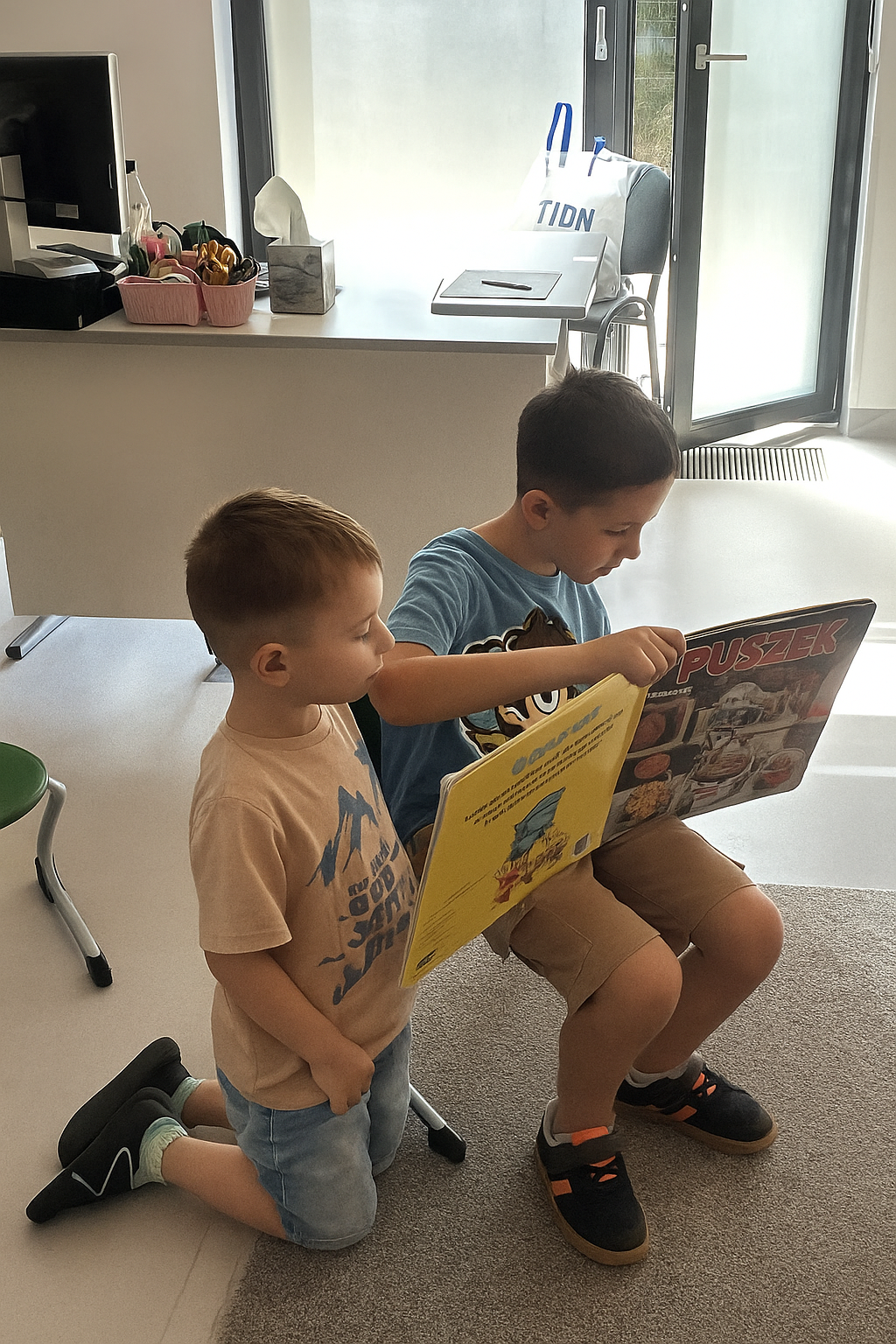 W pierwszym tygodniu września Bartek Dmuchowski z klasy II zagościł w grupie 4/5 latków. Marzeniem Jego braciszka Marcelka było to, aby Bartek przyszedł do grupy Pszczółek i przeczytał książkę. Tak też się stało. Bartek czytał pięknie, wyraźnie, głośno i z pełnym zaangażowaniem. Marcel był przeszczęśliwy, a dzieci zachwycone, że poznały starszego kolegę.