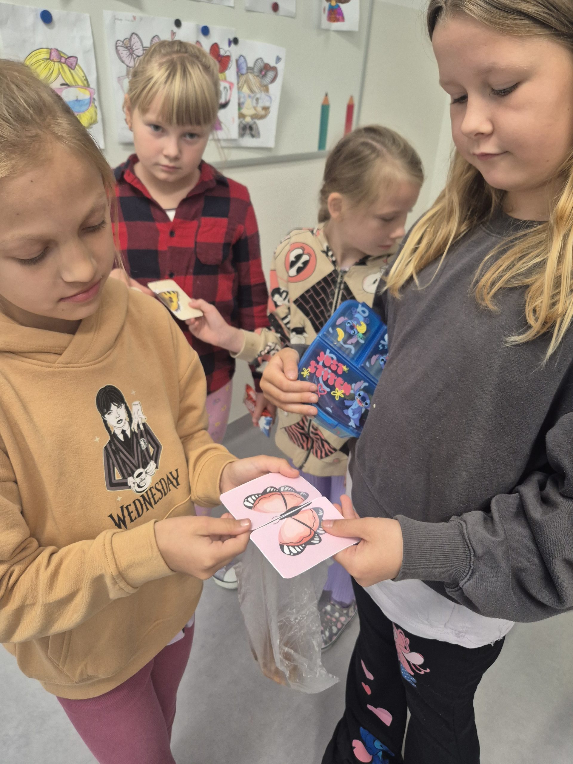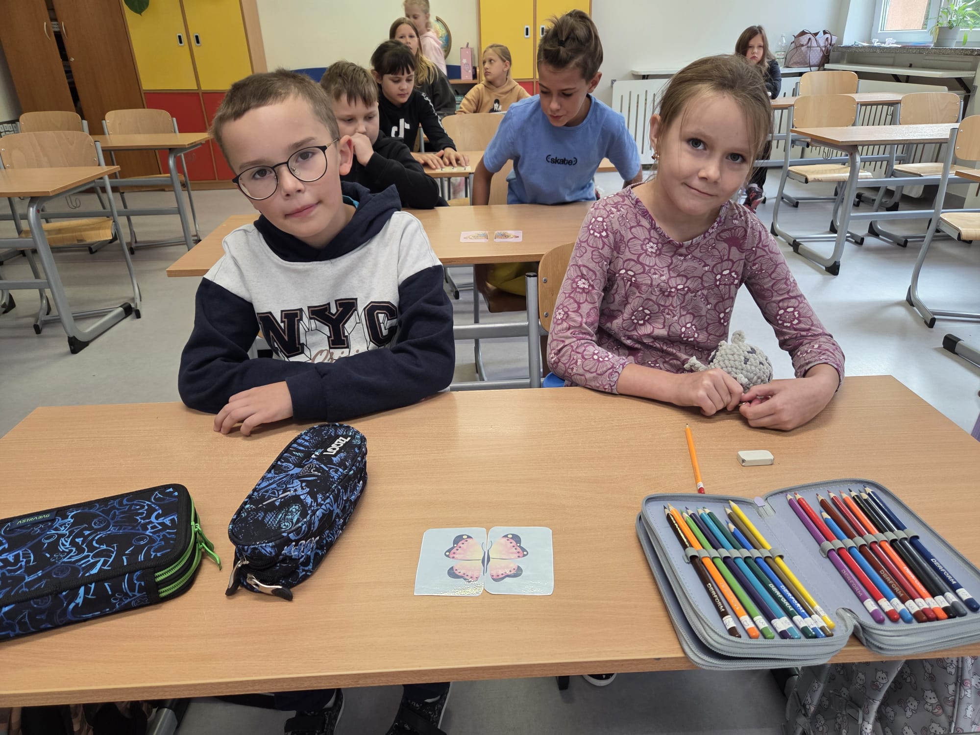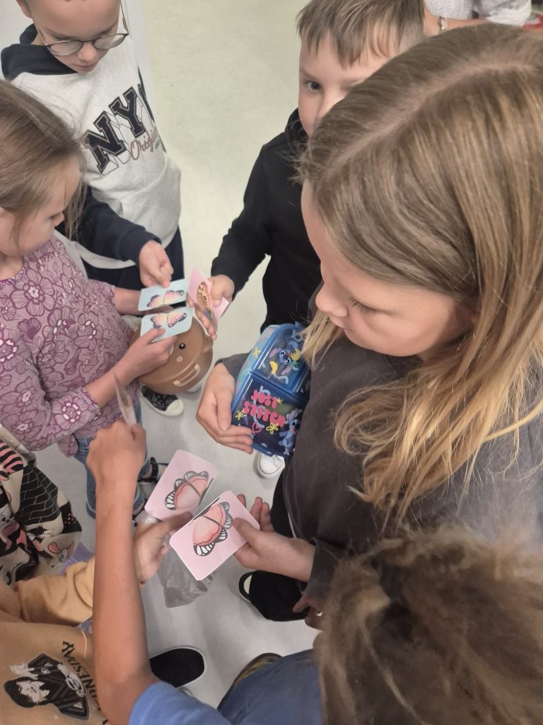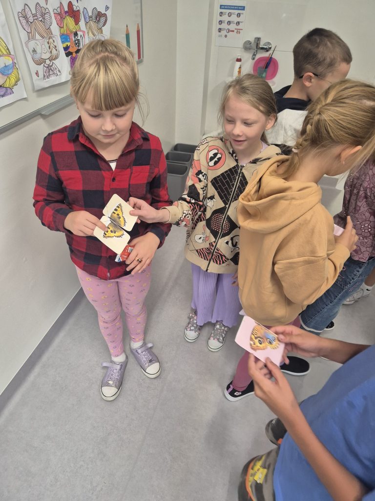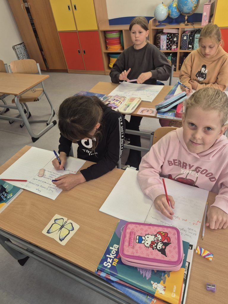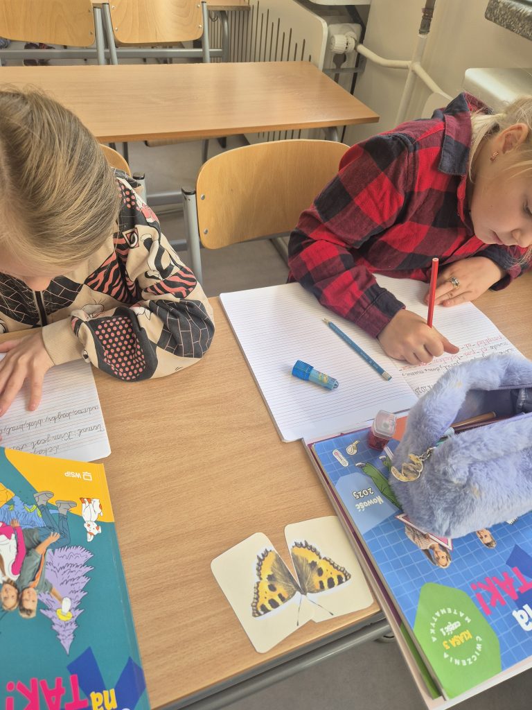 Każdego dnia uczniowie losowali kolorowe motylki i w ten sposób dobierali się w pary, by usiąść obok siebie w ławkach. 🦋