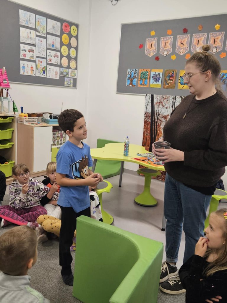 Uroczystość uświetnił występ uczennic z klas II i III, a całość dopełniły zabawy integrujące naszą świetlicową grupę. To był czas pełen uśmiechu, życzliwości i wspólnej zabawy.