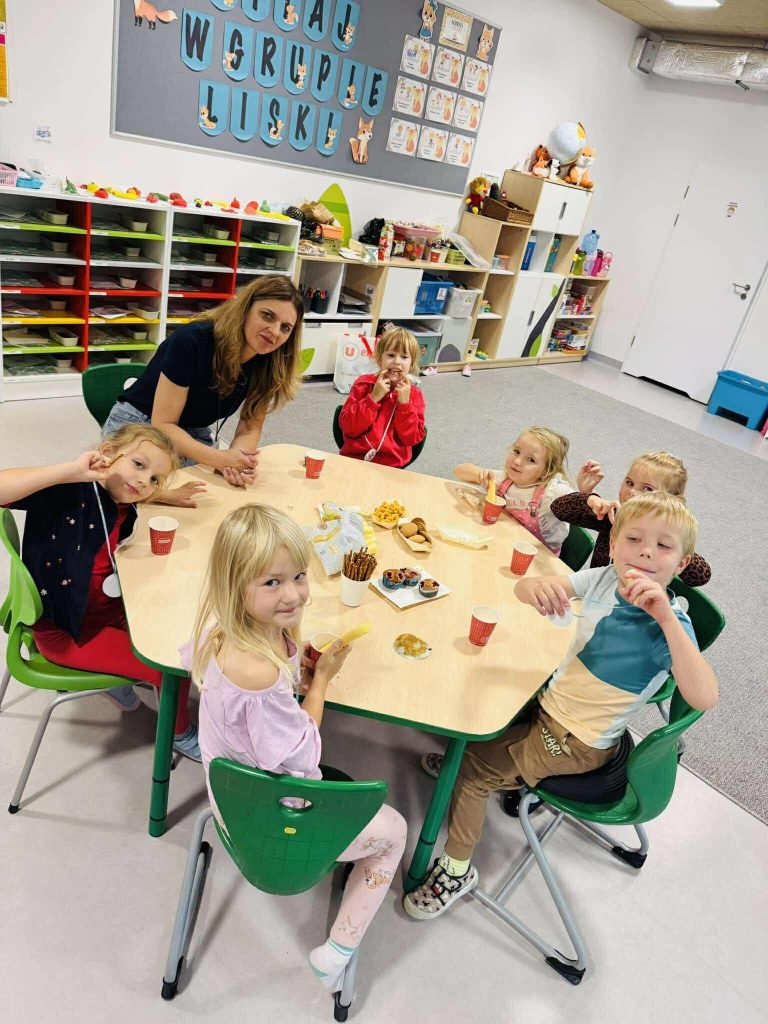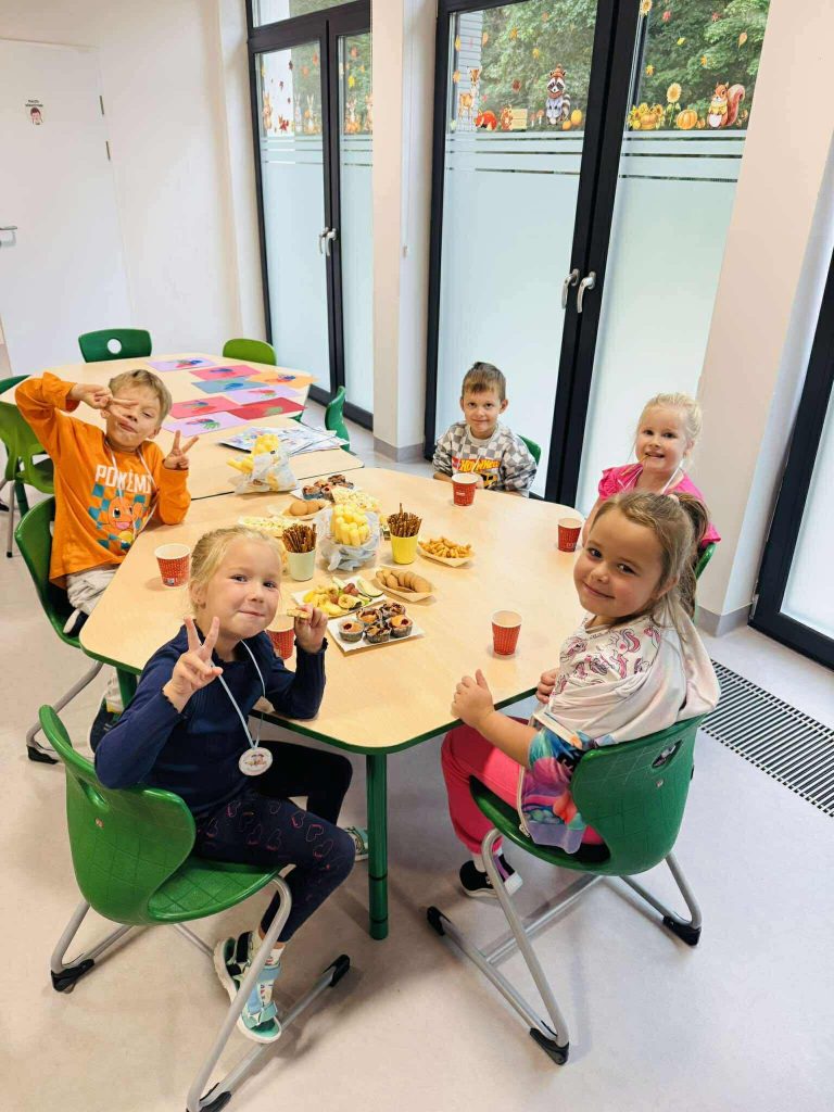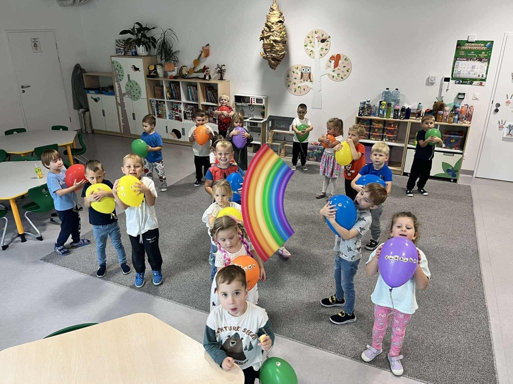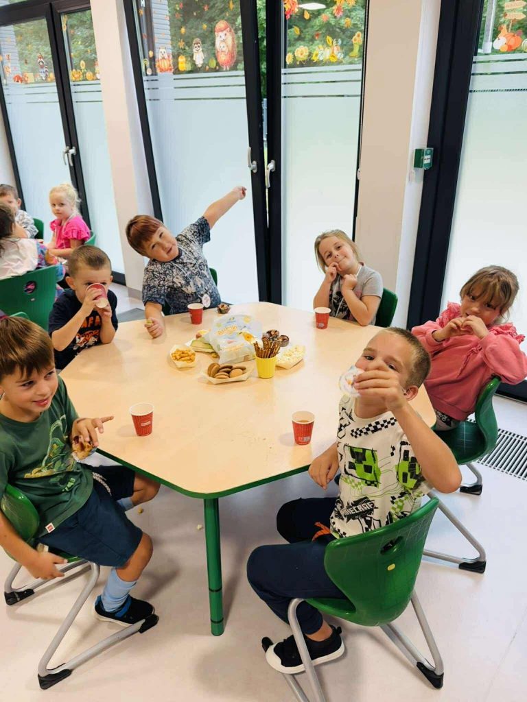Na naszych przedszkolaków czekało wiele atrakcji – wspólne zabawy, tańce i mini bal, podczas którego każdy mógł poczuć się wyjątkowo. Nie zabrakło także życzeń, głośnego „Sto lat!” i symbolicznego dmuchania świeczki.