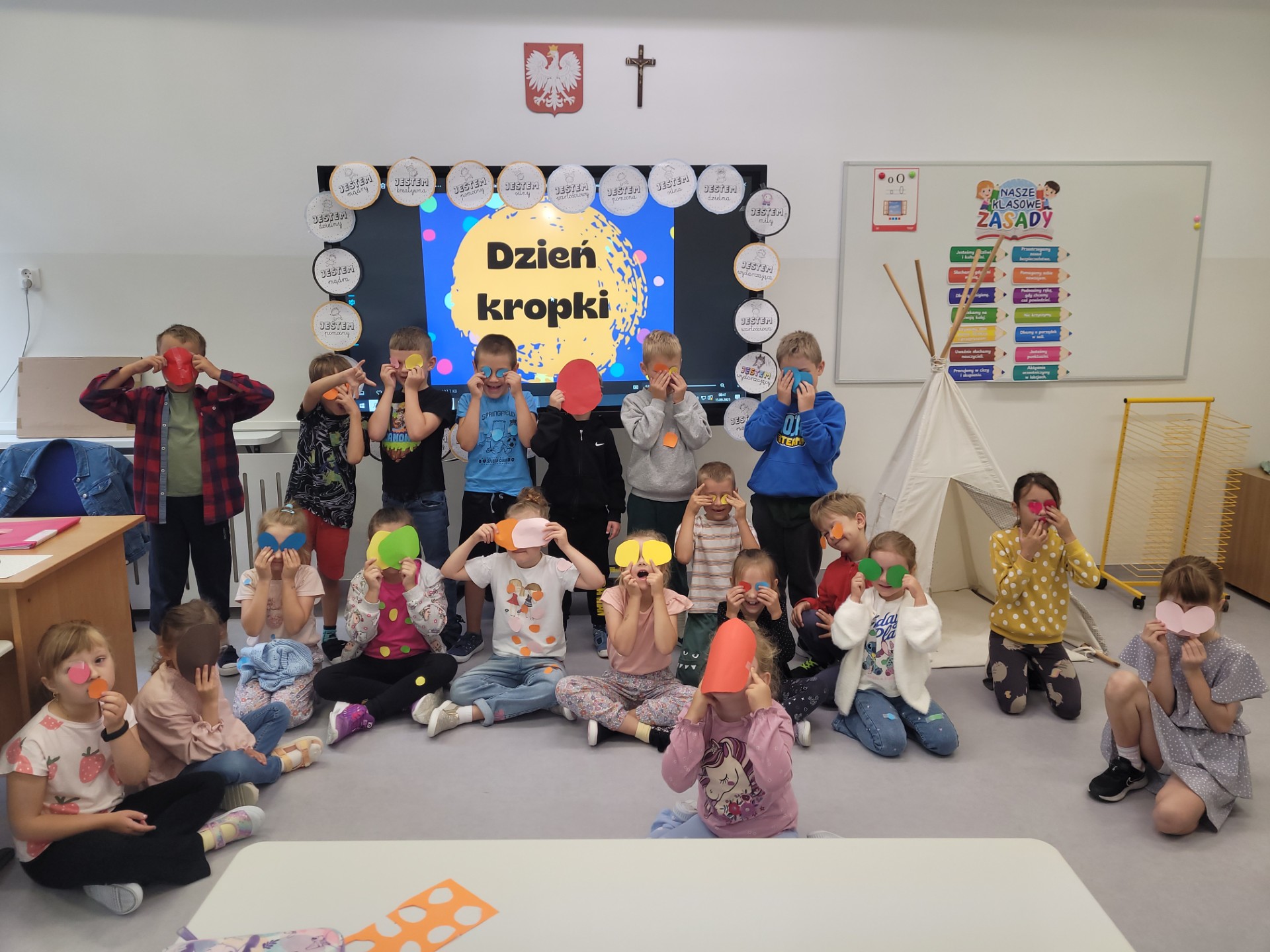 Uczniowie klasy 1c świętowali wspólnie Dzień Kropki. 15 września na całym świecie obchodzimy DZIEŃ KROPKI. Kropka jest tylko inspiracją do działań podejmowanych przez dzieci. W klasie 1 c kropka to dobra zabawa, kreatywność, odwaga. Dzieci prezentowały swoje kropkowe stroje, opowiadały o swoich pasjach, talentach. Próbowały odkryć swoje pasje podczas animacji tanecznych, plastycznych czy zabaw ruchowych.