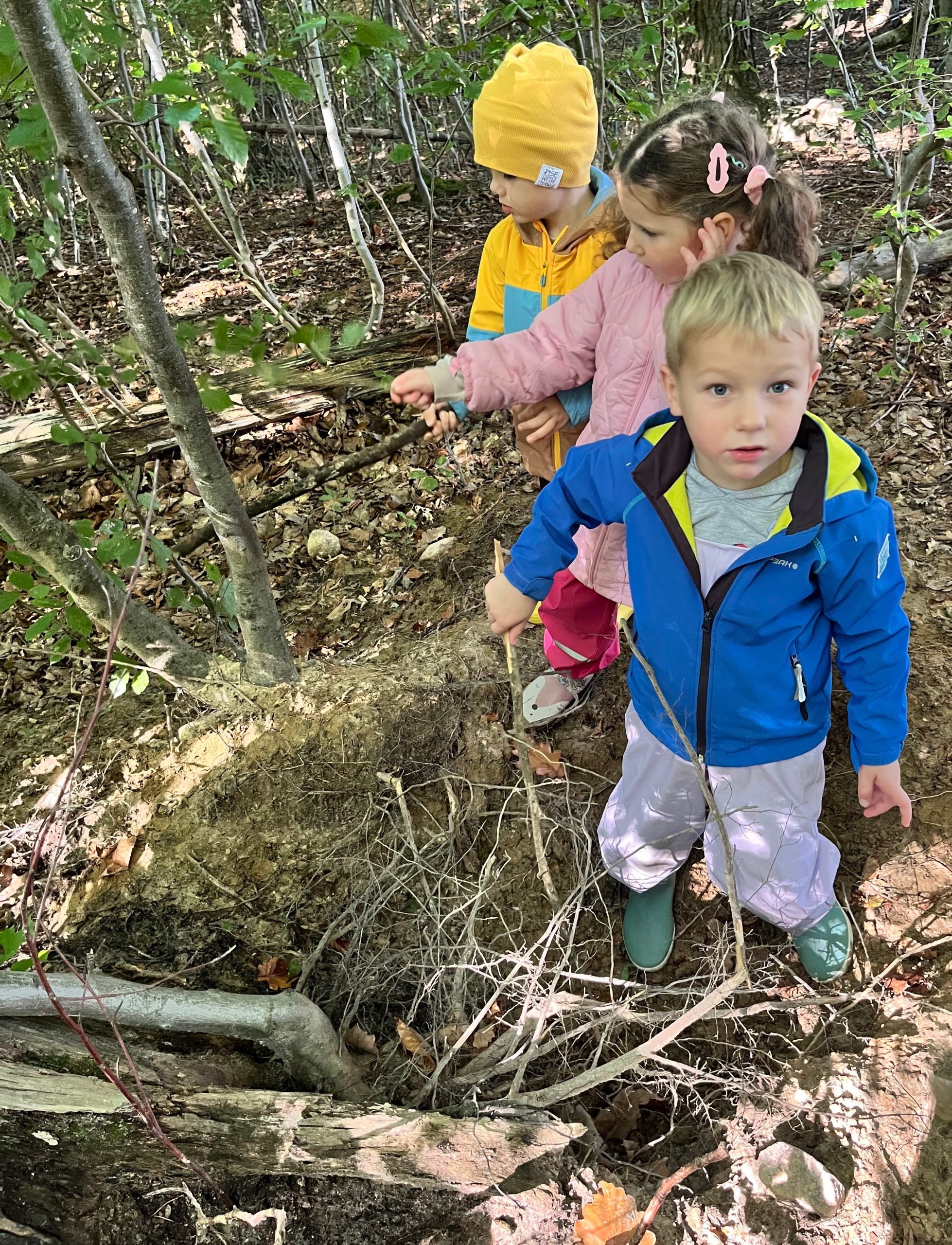 Grupa Pszczółek już we wrześniu rozpoczęła przygodę z lasem. Dzieci pokochały od razu spacery i zabawy w lesie. Mają specjalne ubranka, kalosze i z uśmiechem maszerują na leśne przygody. Była już wyprawa na wysoką górę, czytanie książki w lesie, skoki do liściastej dziury, wyścigi biegowe, zabawy w szałasach, skoki przez patyki, zbieranie szyszek i patyków. Przed nami kolejne wyjścia.