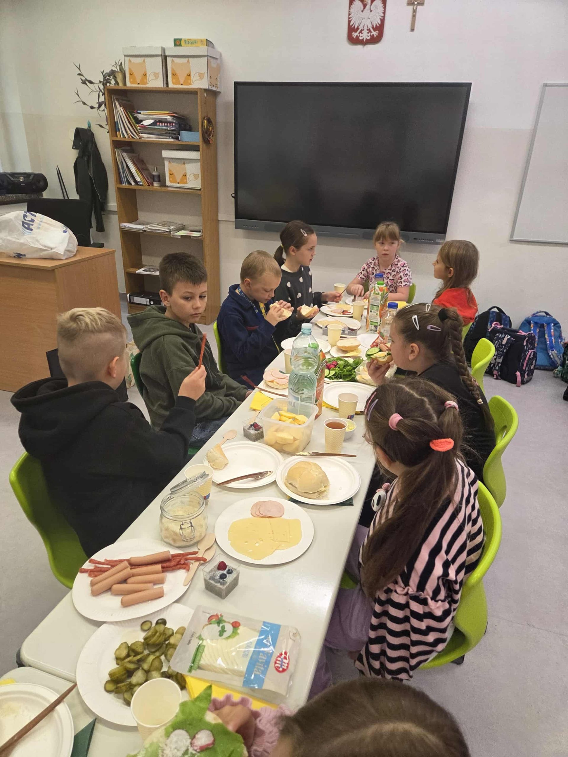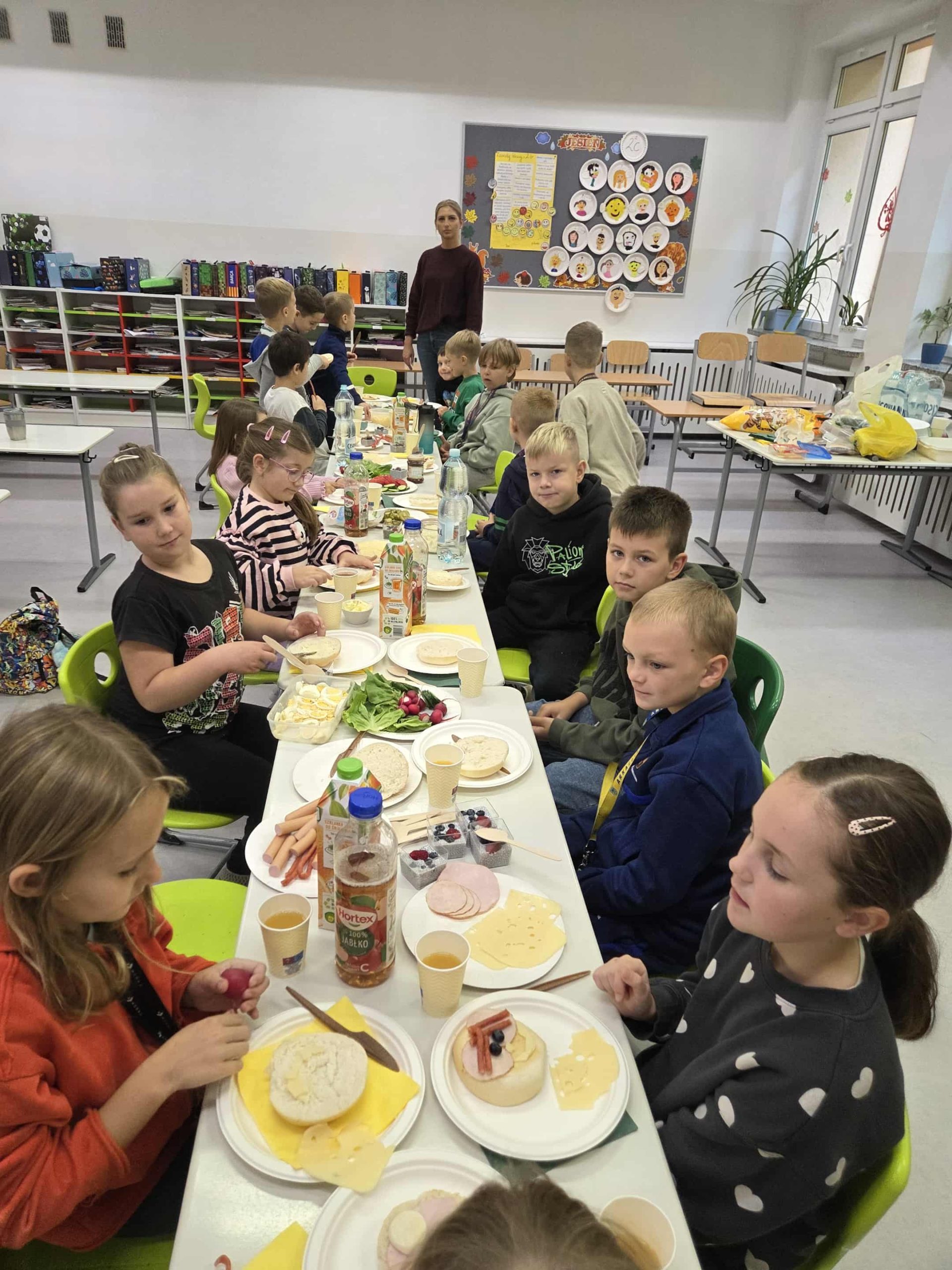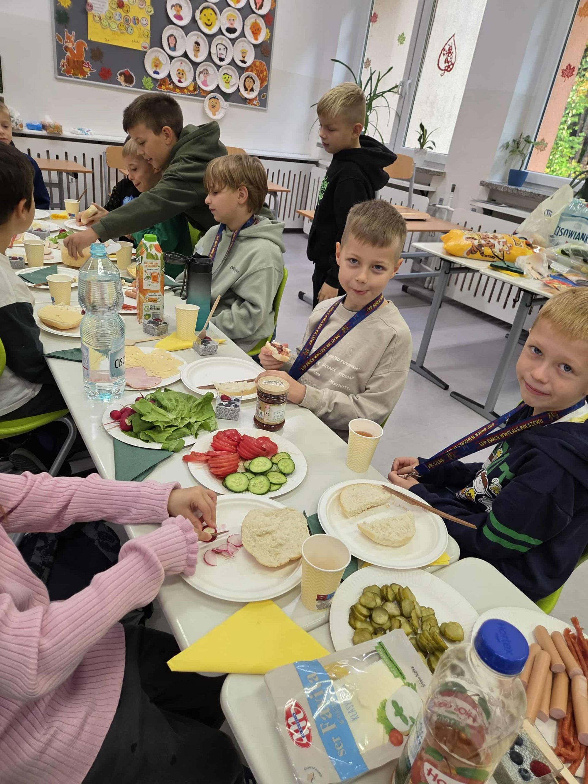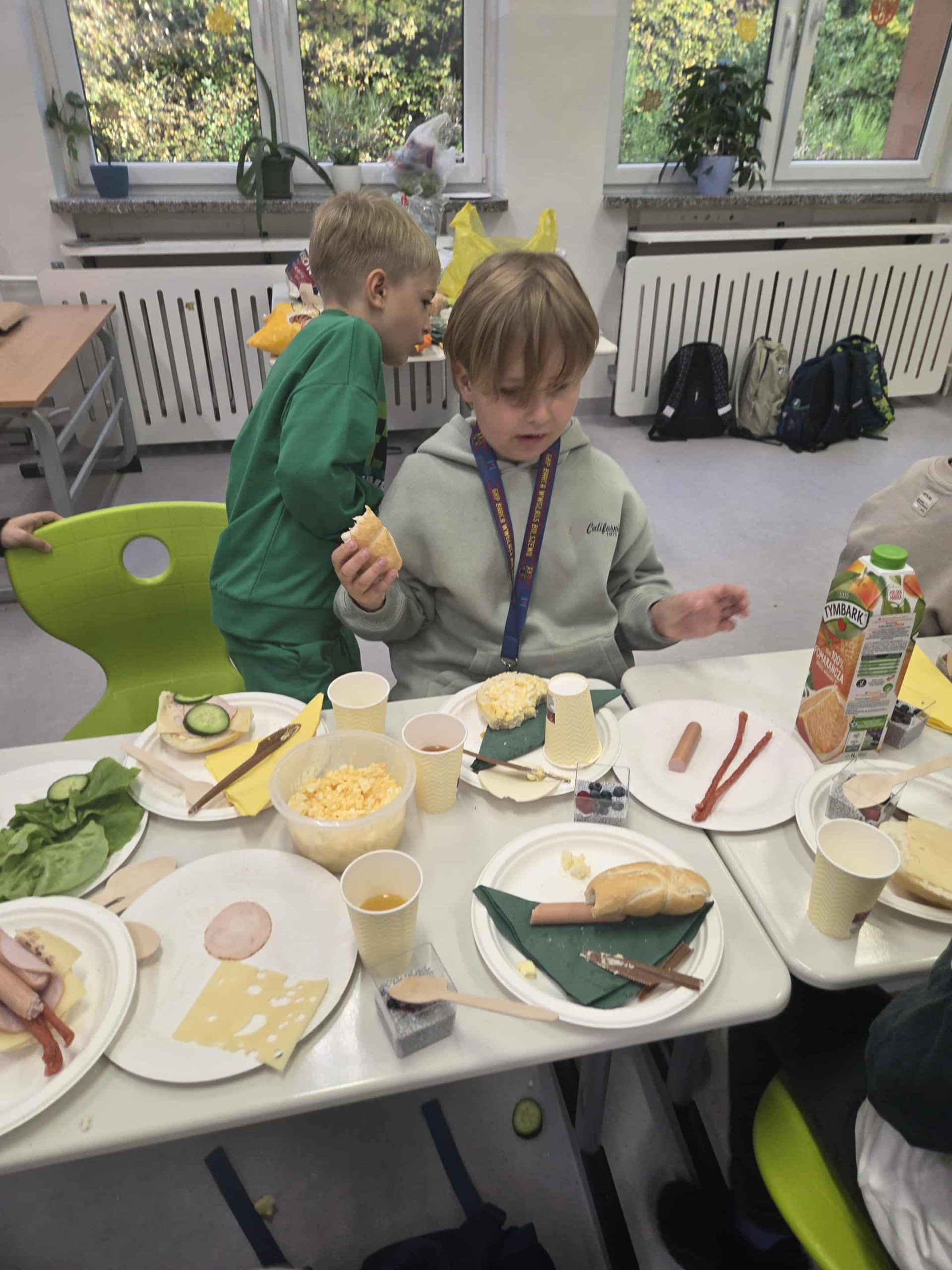W piątek 10 października klasa II b zorganizowała w swojej sali zdrowe śniadanie. Uczniowie wspólnie przygotowali różnorodne kanapki z warzywami i nie tylko . Podczas spotkania rozmawiali o zdrowym odżywianiu oraz poznali zasady, które przedstawia piramida żywieniowa.