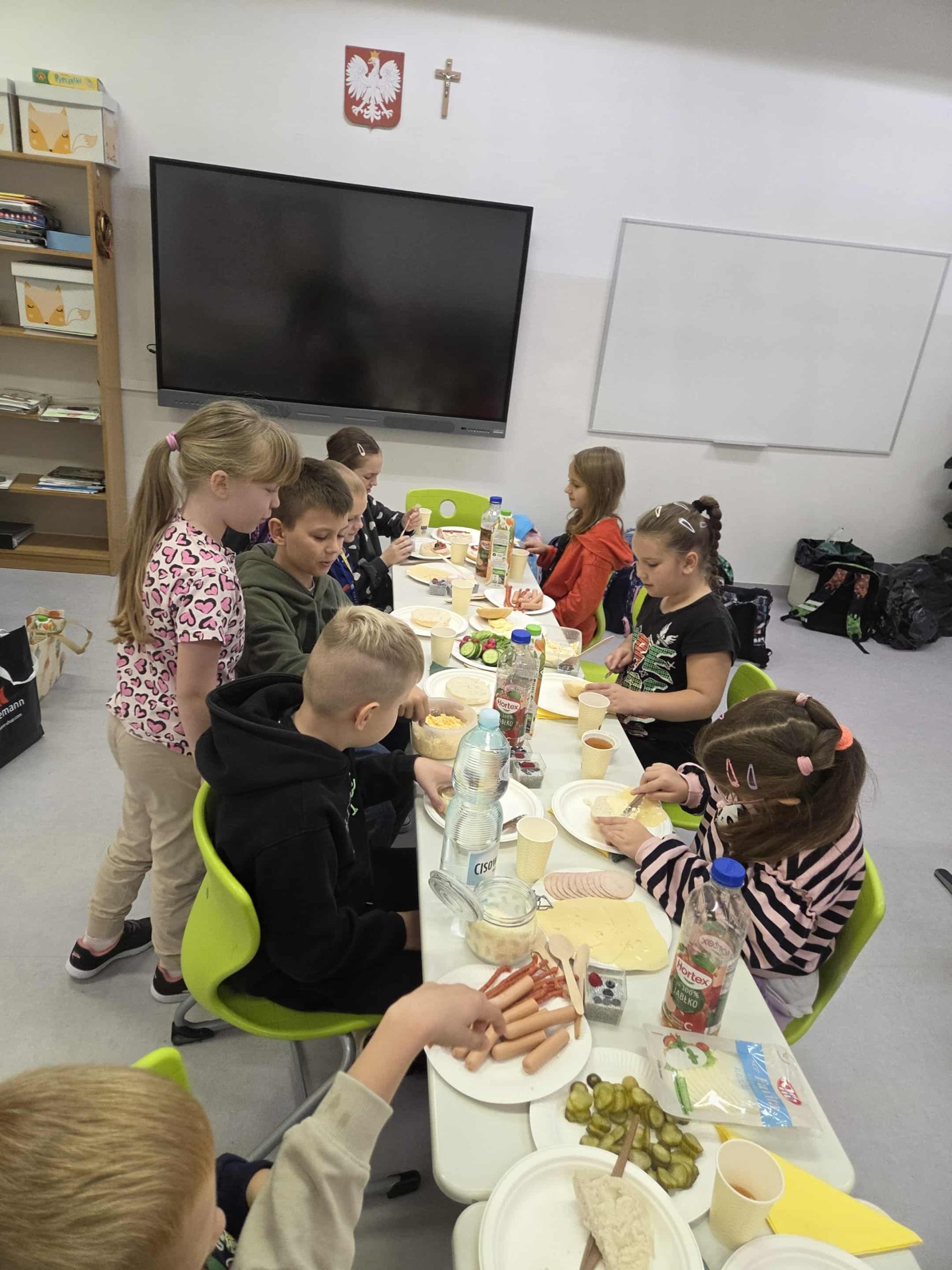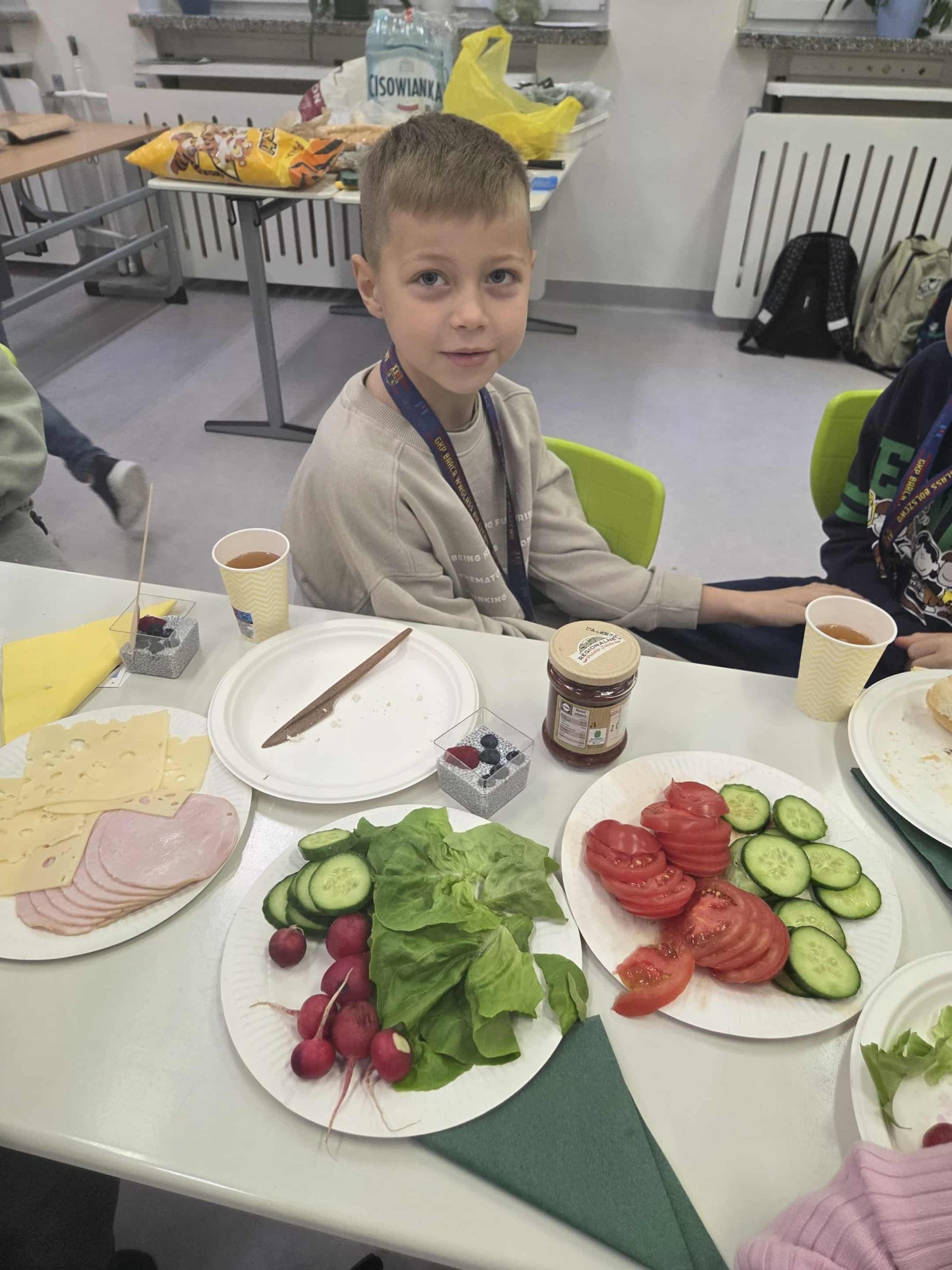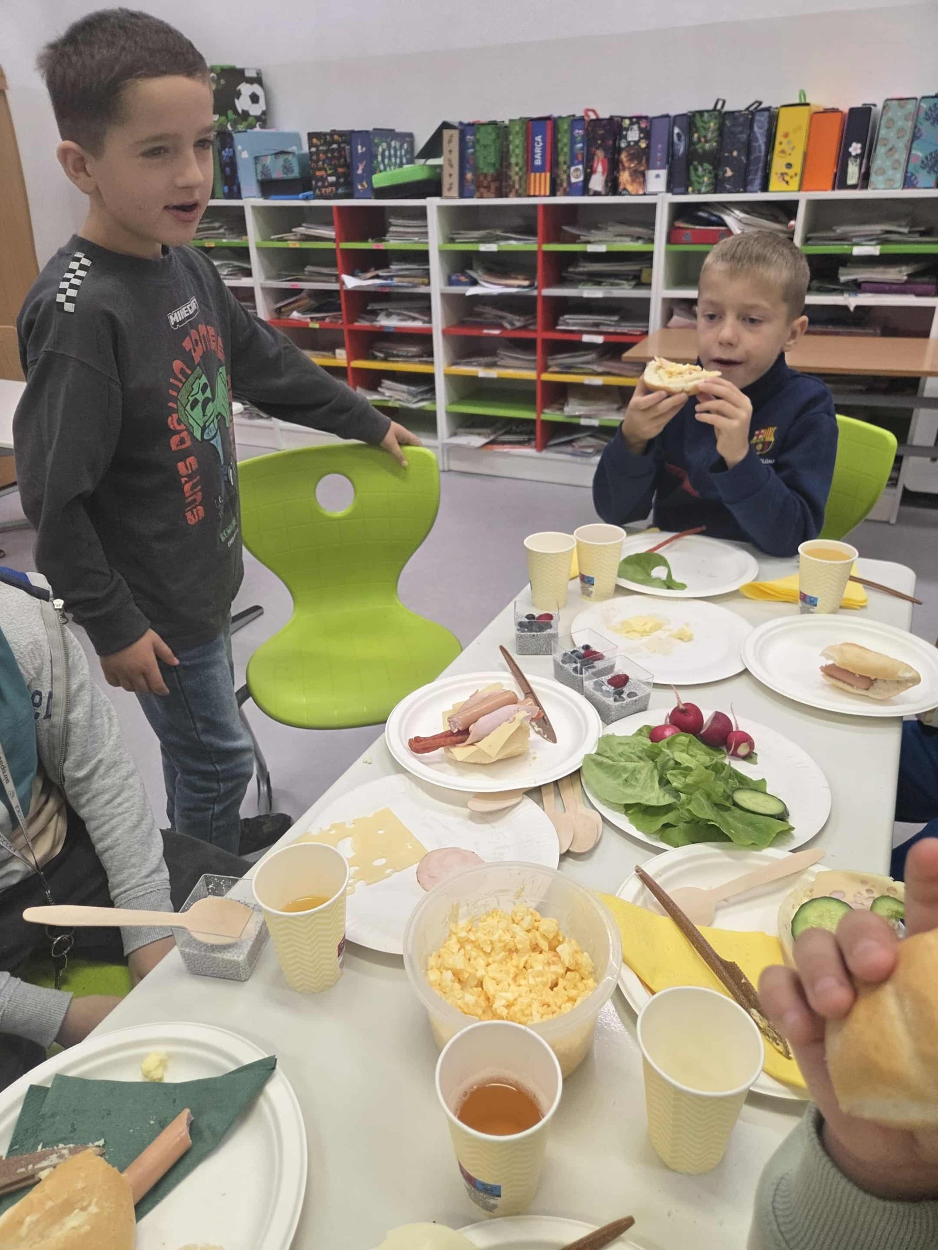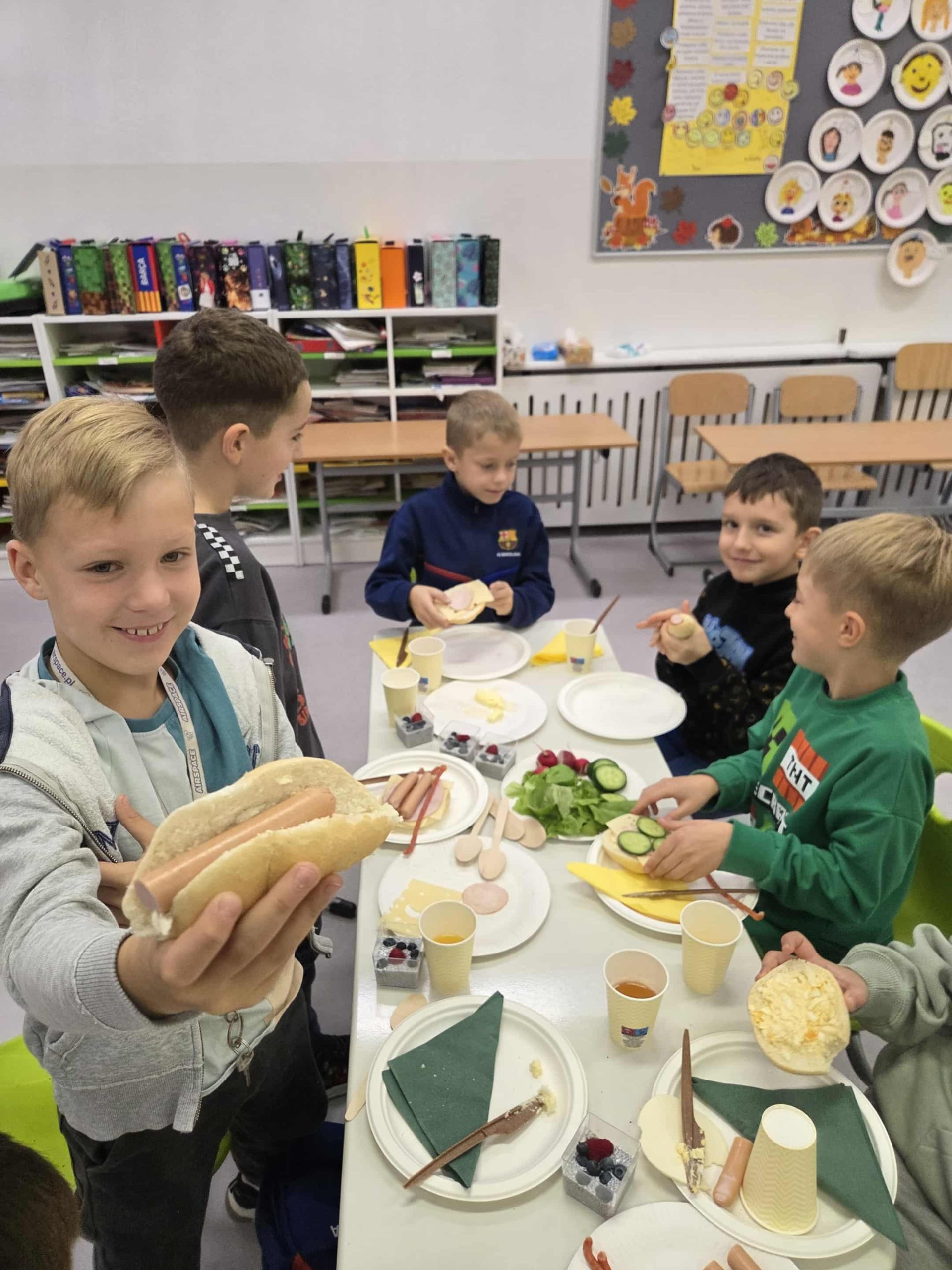 W piątek 10 października klasa II b zorganizowała w swojej sali zdrowe śniadanie. Uczniowie wspólnie przygotowali różnorodne kanapki z warzywami i nie tylko . Podczas spotkania rozmawiali o zdrowym odżywianiu oraz poznali zasady, które przedstawia piramida żywieniowa.