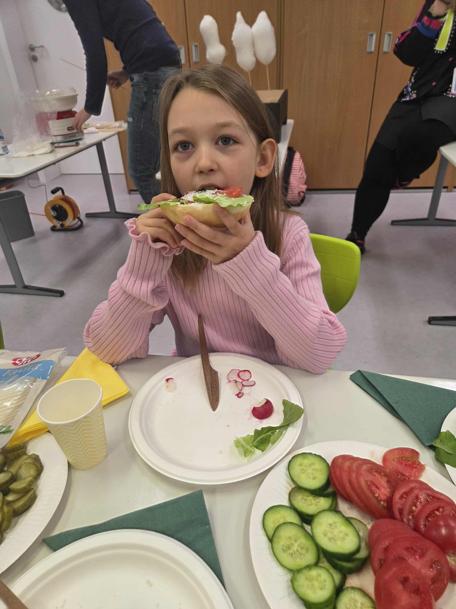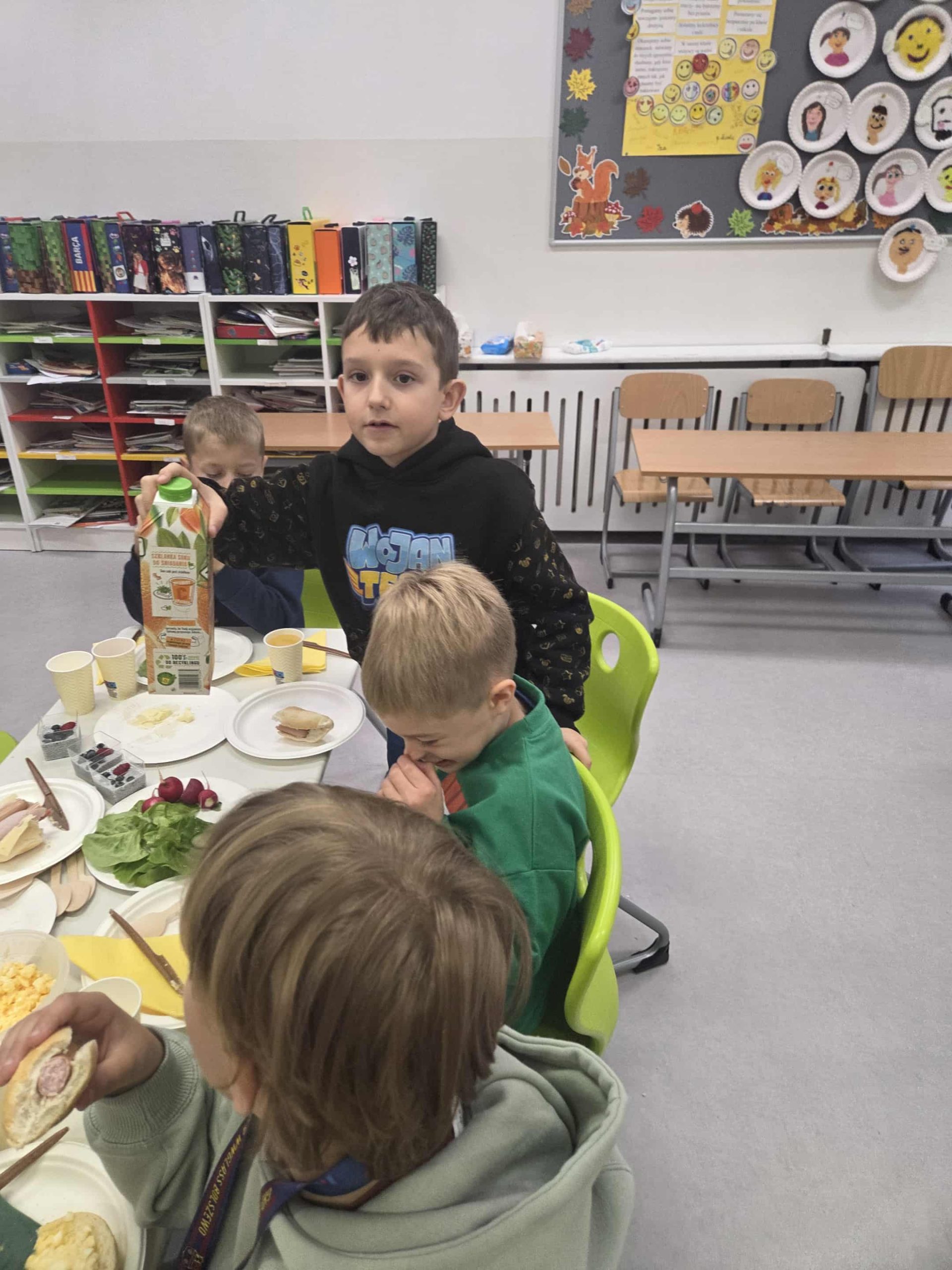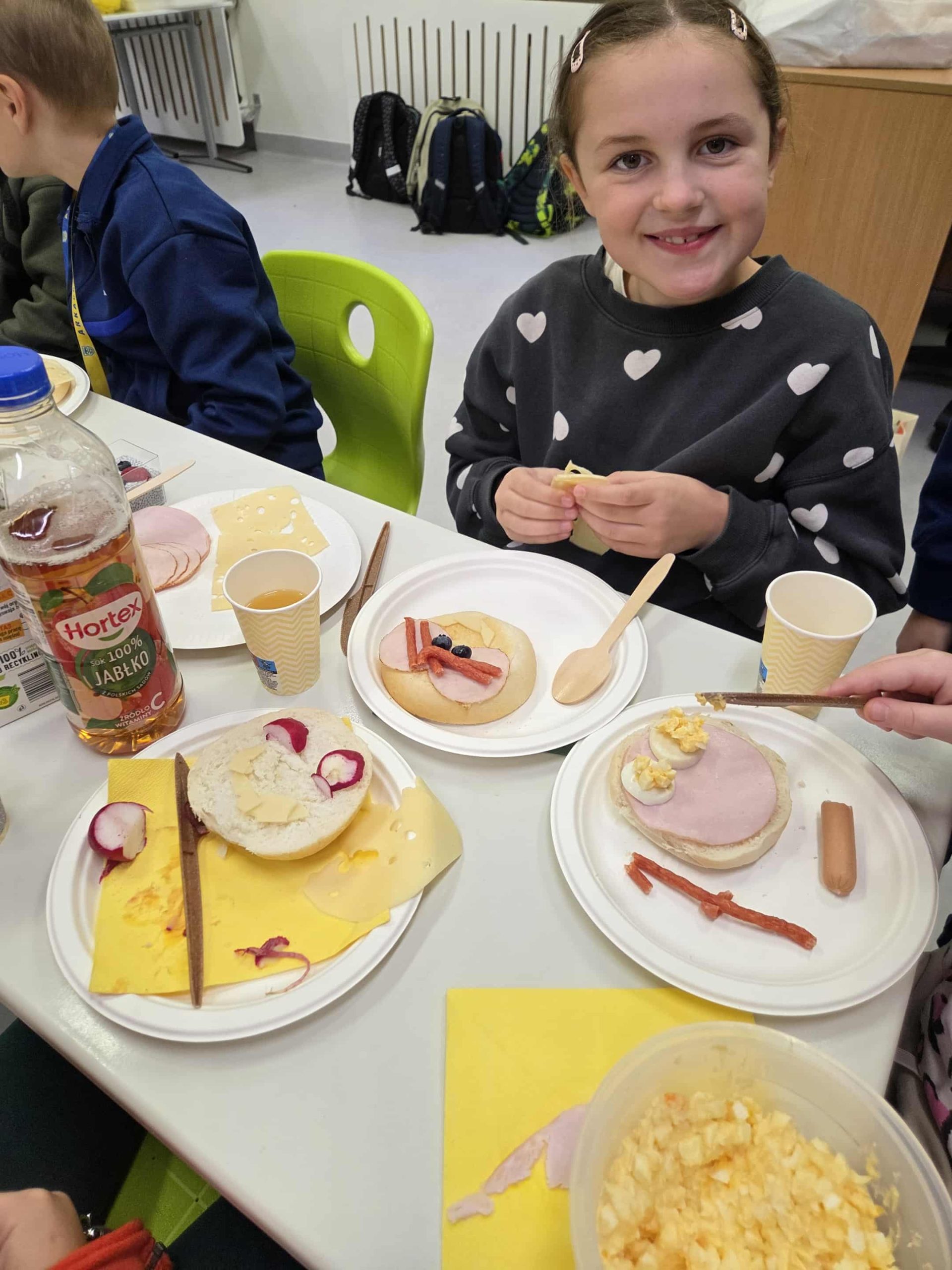 Dzieci dowiedziały się, jak ważne jest spożywanie warzyw, owoców i produktów pełnoziarnistych. Na zakończenie wszyscy z apetytem zjedli przygotowane śniadanie i zgodzili się, że zdrowe jedzenie może być smaczne i kolorowe.
