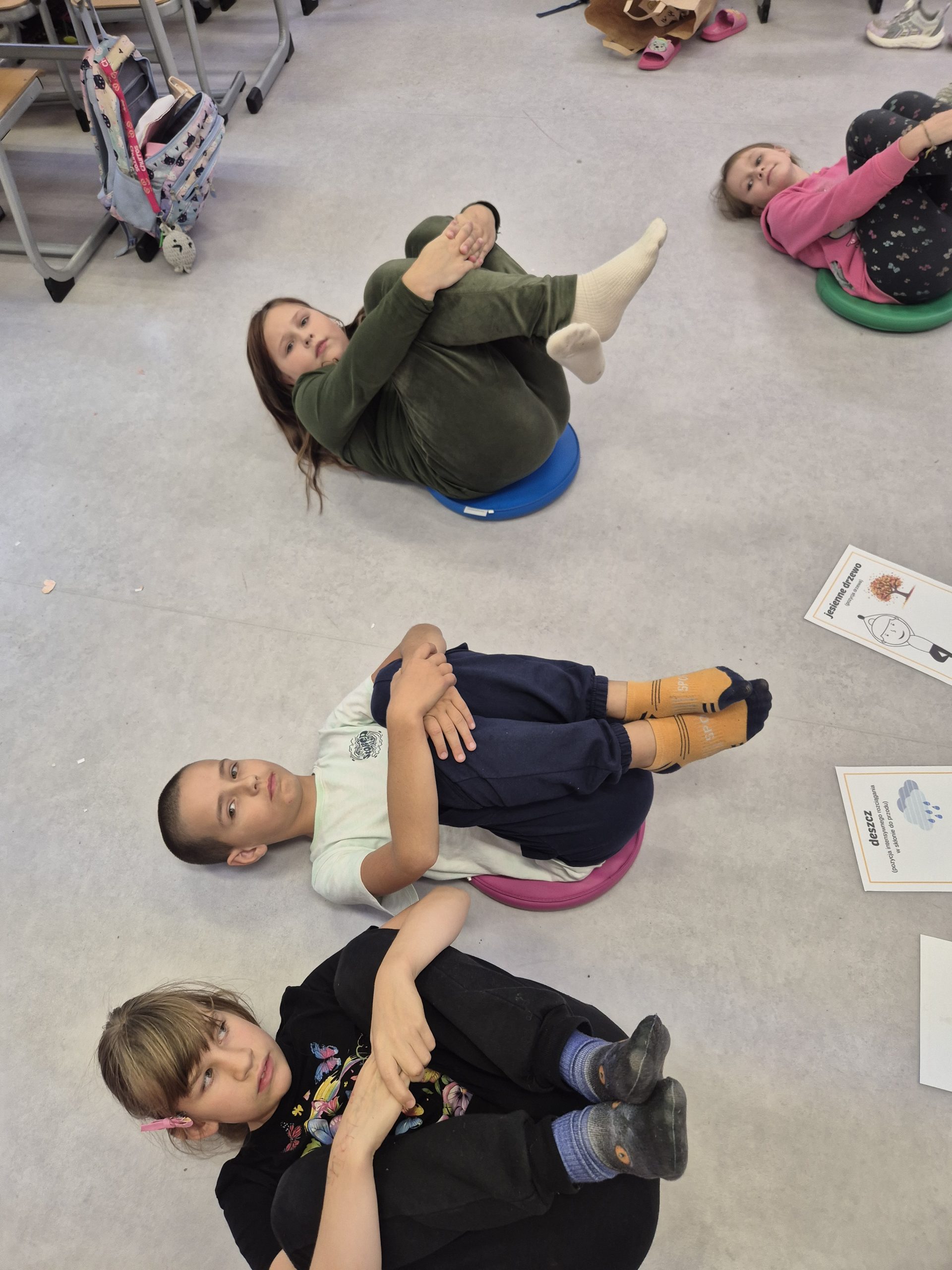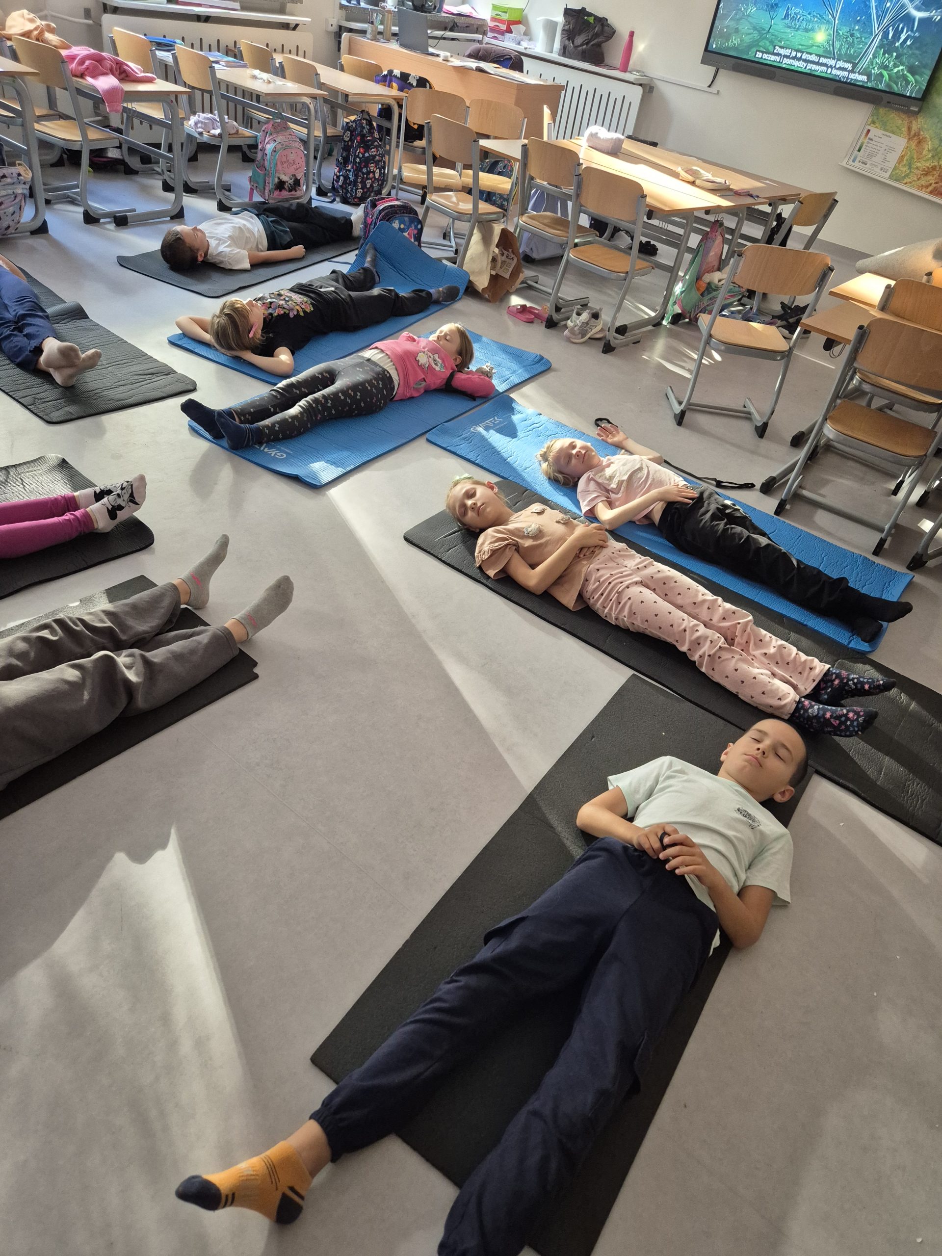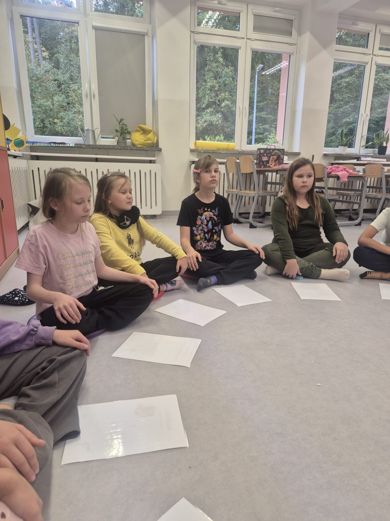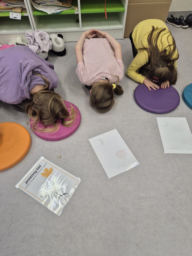 Nie zabrakło też twórczego relaksu – wspólnie tworzyliśmy jesienne mandale oraz odpoczywaliśmy na matach, słuchając fragmentu medytacji prowadzonej dla dzieci🌙✨