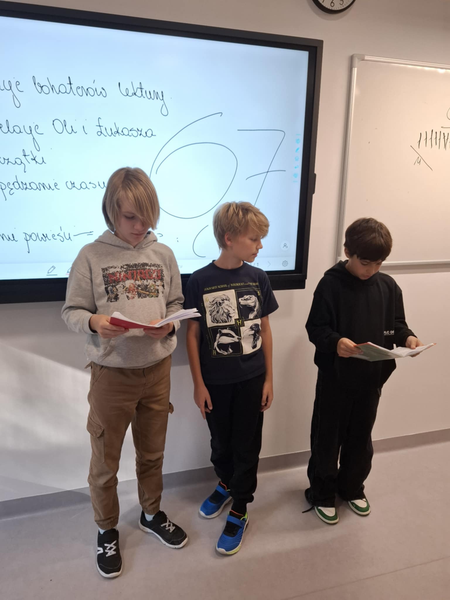 Omówienie lektury było także idealną okazją do rozmowy na temat rodzin i problemów z którymi się borykają. W trakcie omówienie zwracaliśmy uwagę na emocje i umiejętność ich wyrażania. Klasa 5 b poradziła sobie świetnie z tematem – uczniowie podeszli do temu odpowiedzialnie i co najważniejsze potrafili nazywać emocje, co nie zawsze jest łatwym zadaniem.