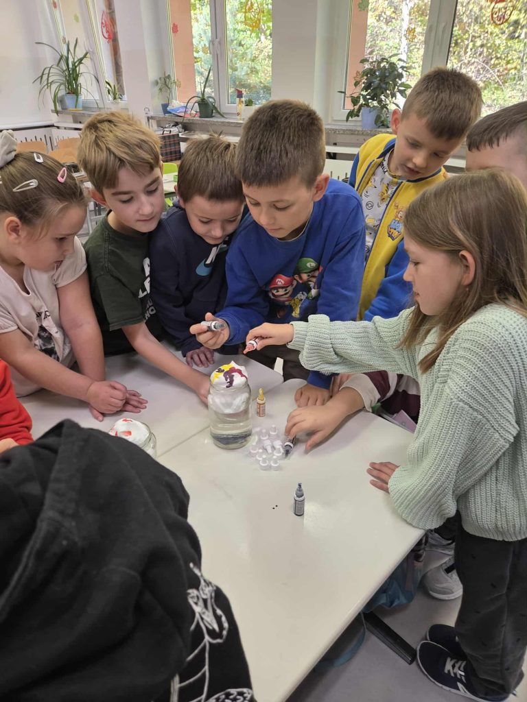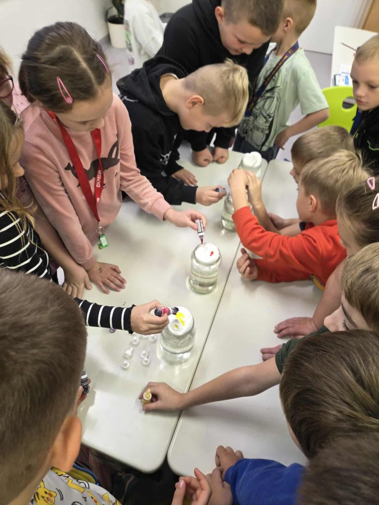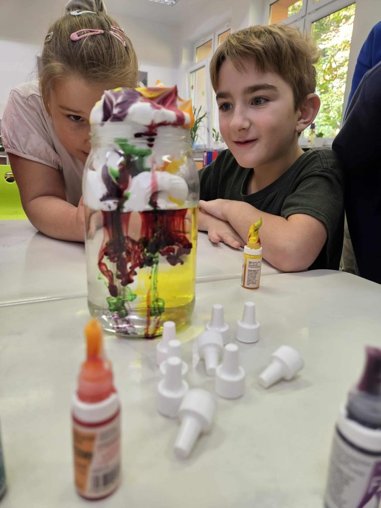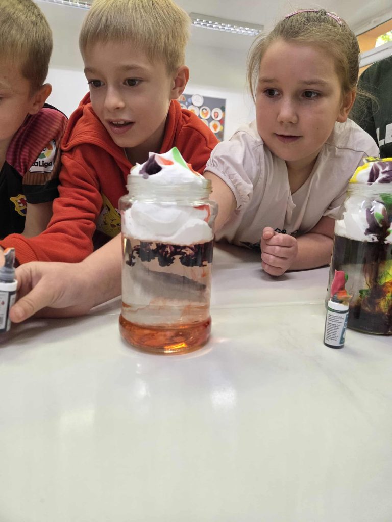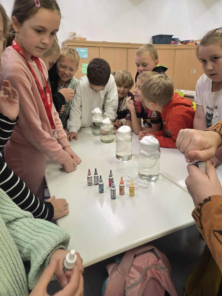Lekcja przyrody w klasie 2b przez Marta Szulc - Przybył · 21 października 2025 W poniedziałek 20 października uczniowie klasy 2b podczas zajęć dowiedzieli się skąd się bierze deszcz. Przeprowadzili ciekawe doświadczenie. Za pomocą prostego eksperymentu dzieci samodzielnie stworzyły kolorowy deszcz. To była świetna zabawa i ciekawa lekcja przyrody! Autor: Marta Olszewska