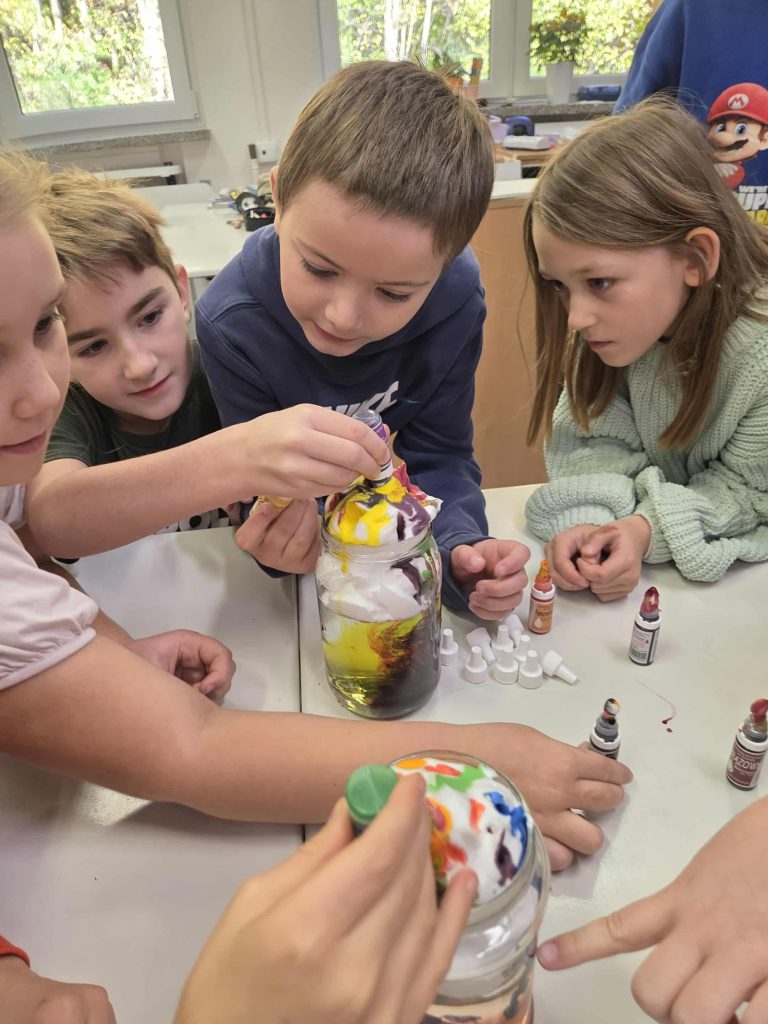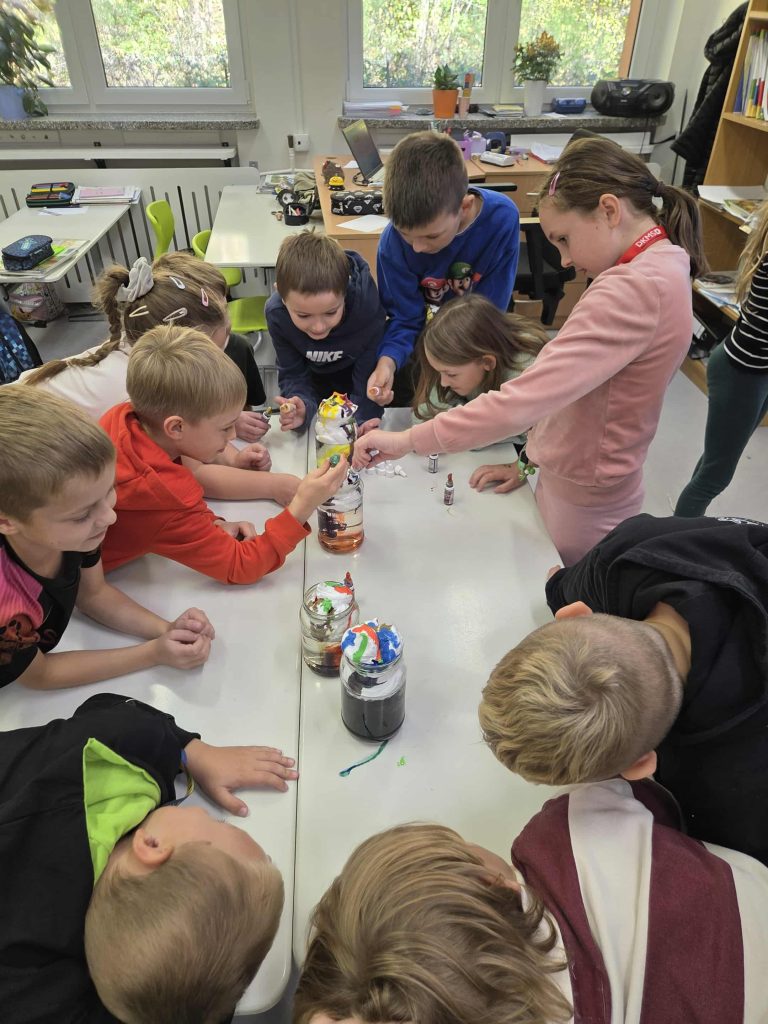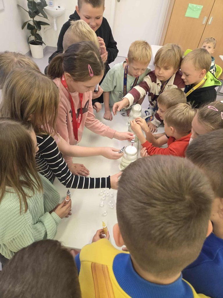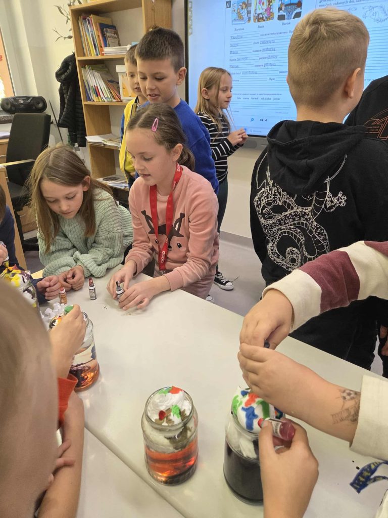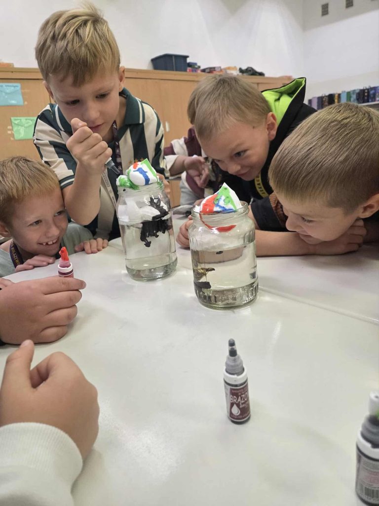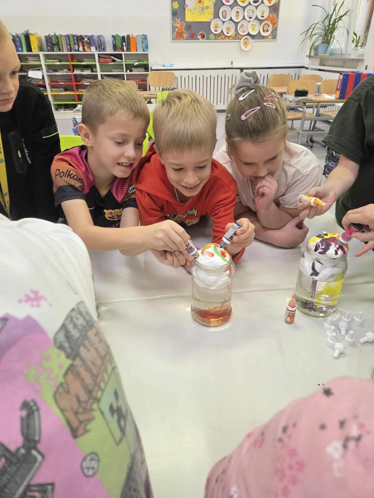 Lekcja przyrody w klasie 2b przez Marta Szulc - Przybył · 21 października 2025 W poniedziałek 20 października uczniowie klasy 2b podczas zajęć dowiedzieli się skąd się bierze deszcz. Przeprowadzili ciekawe doświadczenie. Za pomocą prostego eksperymentu dzieci samodzielnie stworzyły kolorowy deszcz. To była świetna zabawa i ciekawa lekcja przyrody! Autor: Marta Olszewska