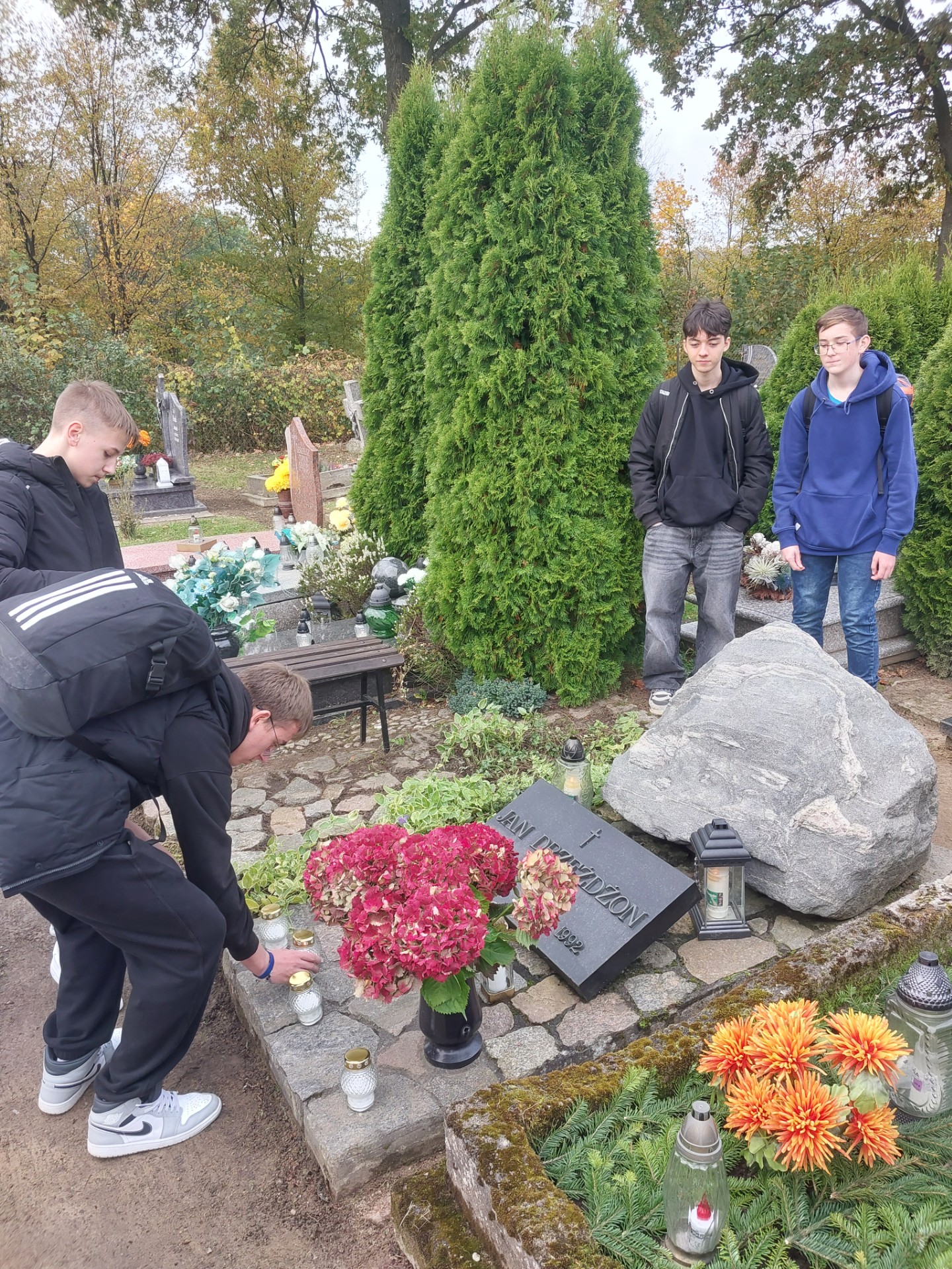 Uczniowie klasy 8 B bardzo odpowiedzialnie podeszli do wizyty na cmentarzu, uporządkowali grób oraz zapalili symboliczne znicze – znak tego, że pamiętamy o naszym Patronie. To wizyty wyjątkowa, szczególnie ze względu na zbliżające się Święto Wszystkich Zmarłych.