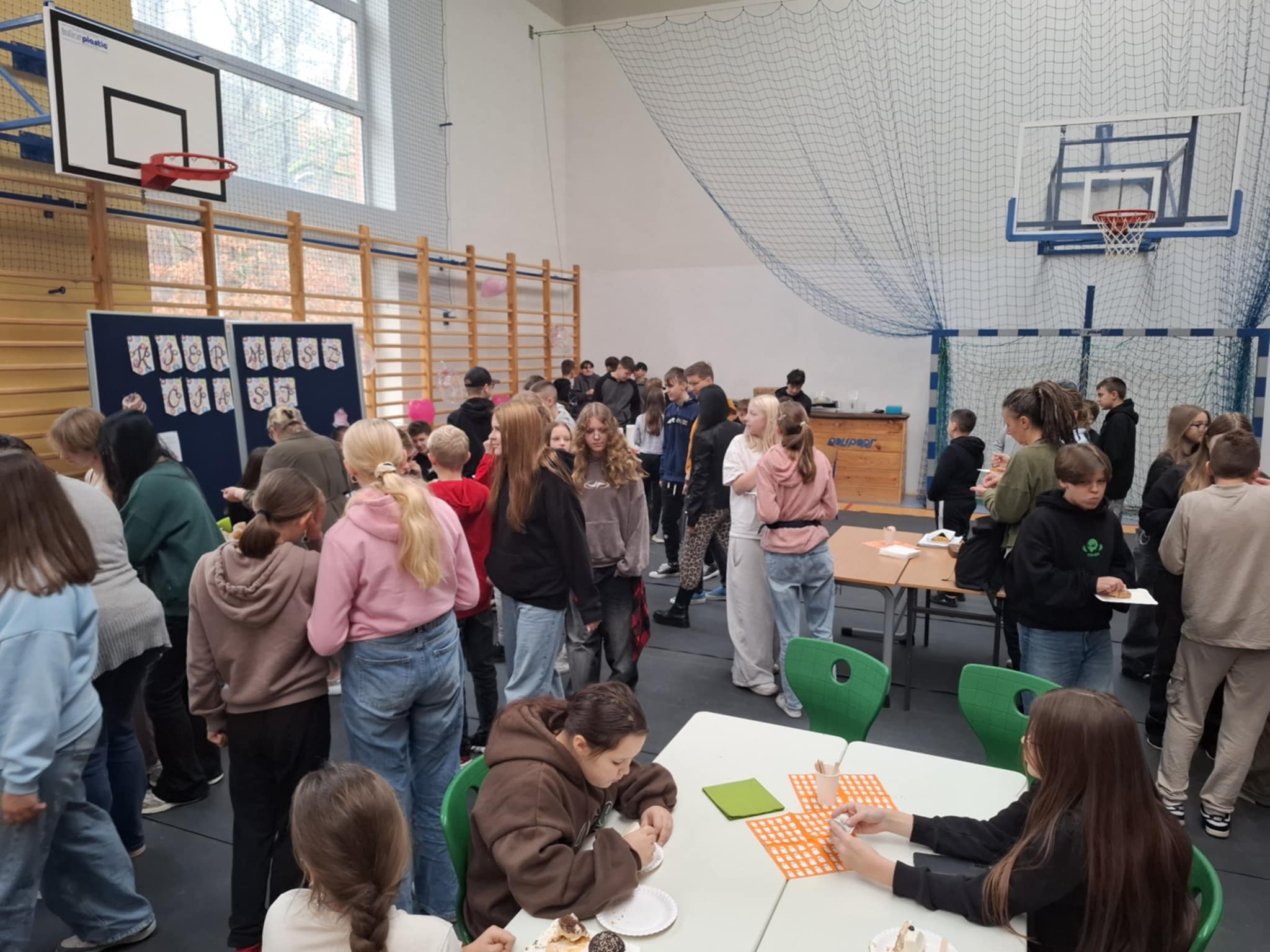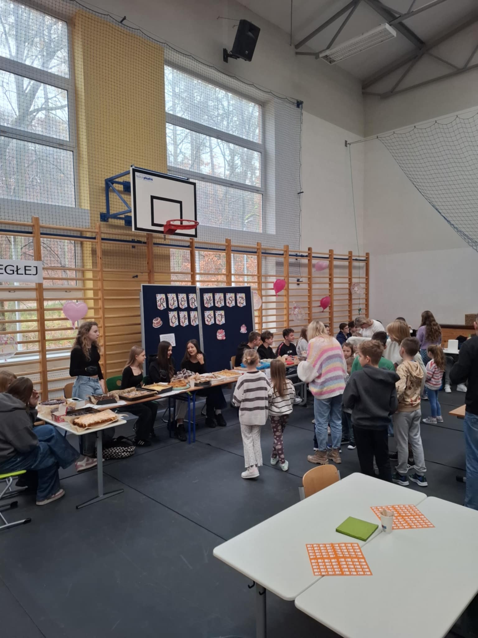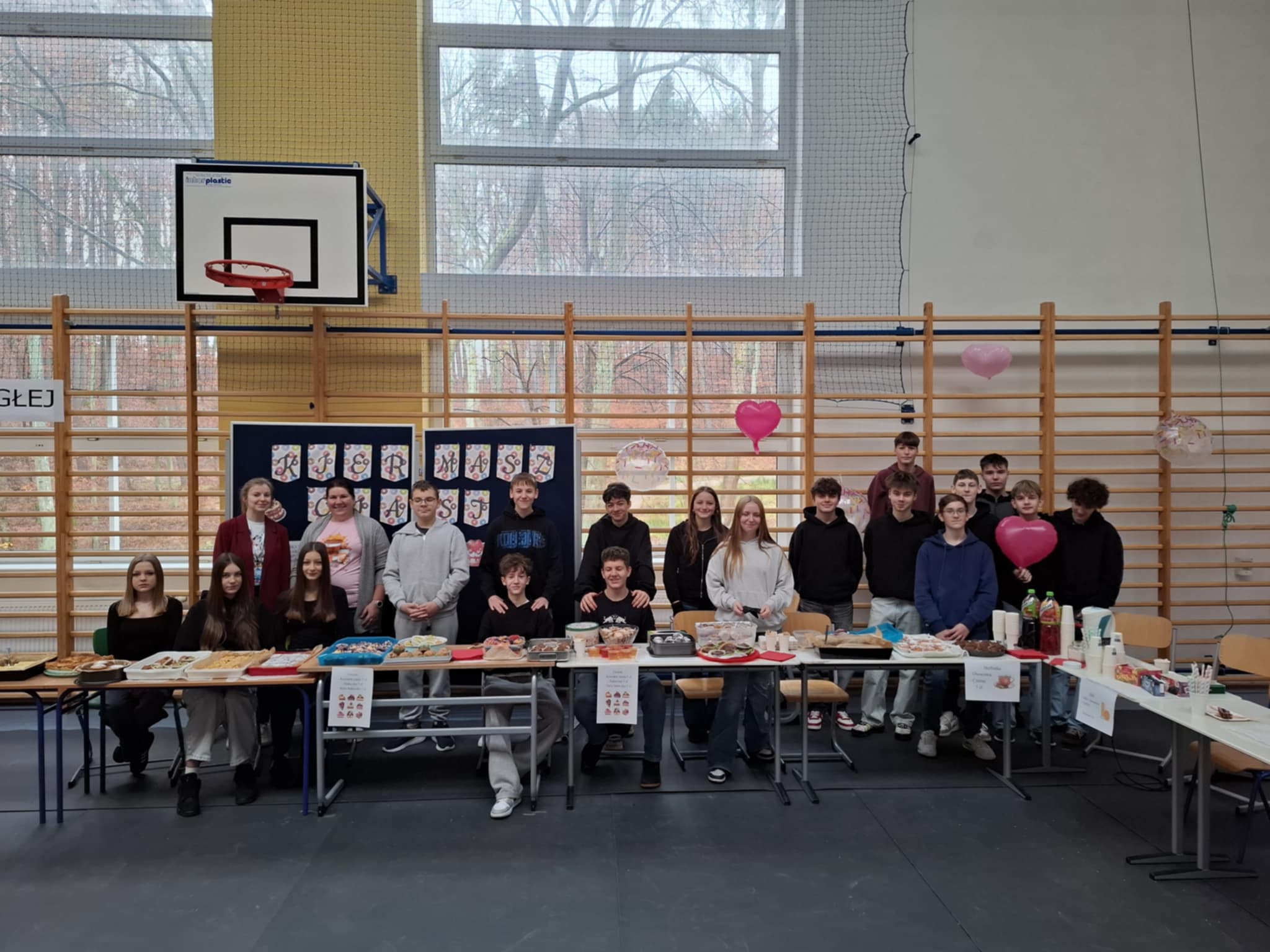 Dziękujemy osobom, które pomogły nam przygotować salę na to ważne wydarzenie: Panu Marcinowi Nosewiczowi, Jakubowi Garczarek oraz Panu Markowi Janeczkowi. Dziękujemy także wszystkim Paniom z obsługi, które dbały o czystość. Dziękujemy opiekunkom Wolontariatu – Pani Marcie i Pani Irenie za czuwanie nad dziećmi podczas kiermaszu i organizację.
