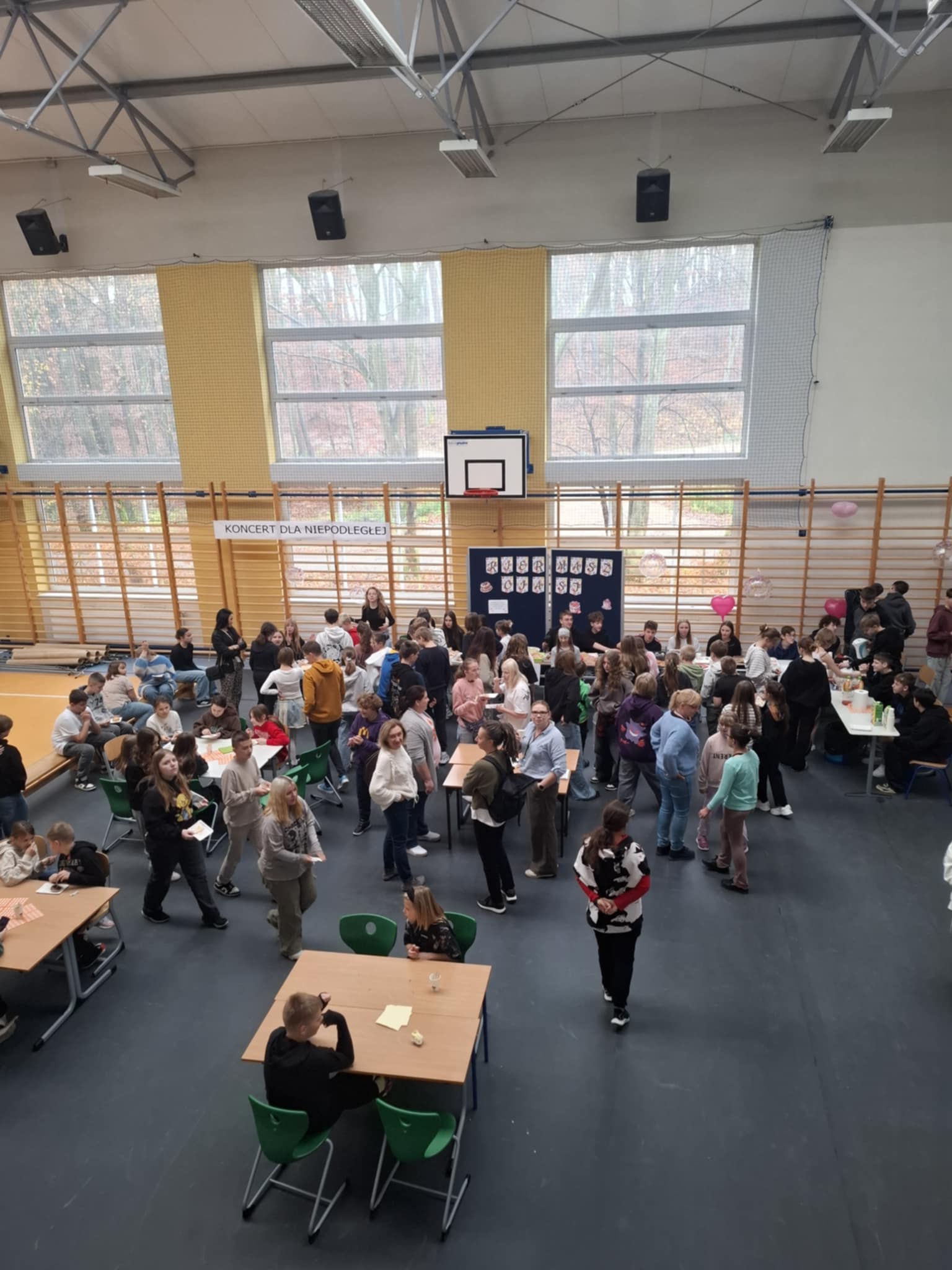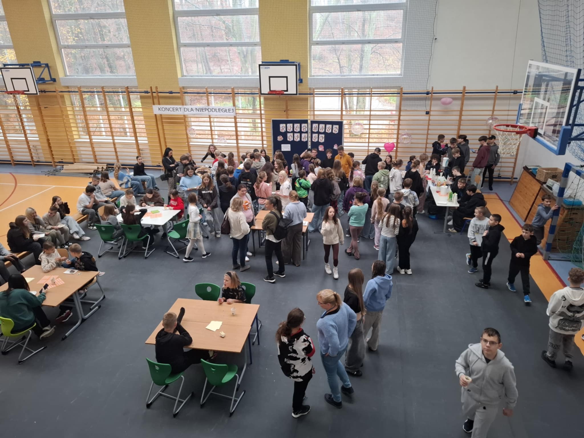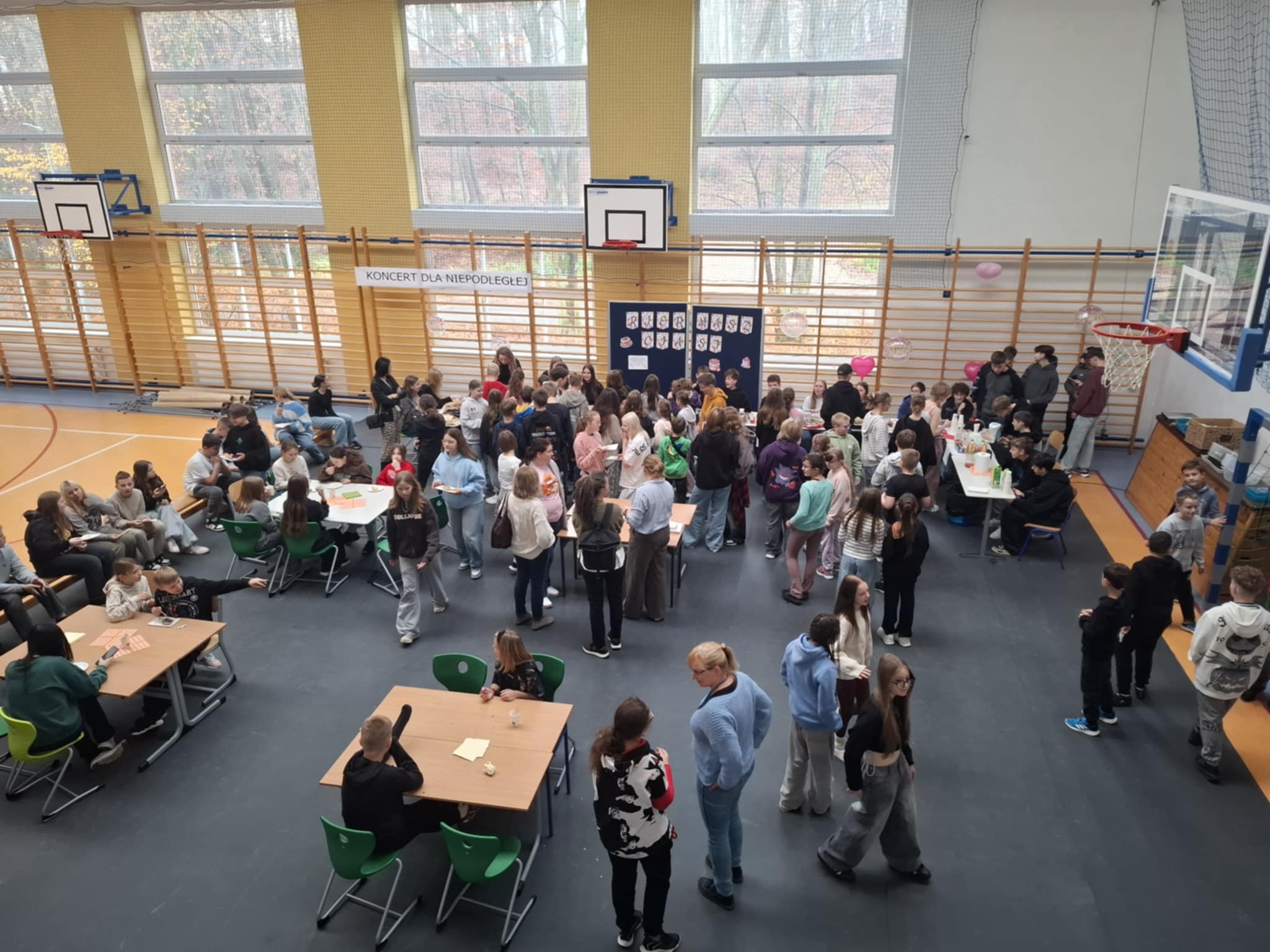 Dziękujemy osobom, które pomogły nam przygotować salę na to ważne wydarzenie: Panu Marcinowi Nosewiczowi, Jakubowi Garczarek oraz Panu Markowi Janeczkowi. Dziękujemy także wszystkim Paniom z obsługi, które dbały o czystość. Dziękujemy opiekunkom Wolontariatu – Pani Marcie i Pani Irenie za czuwanie nad dziećmi podczas kiermaszu i organizację.