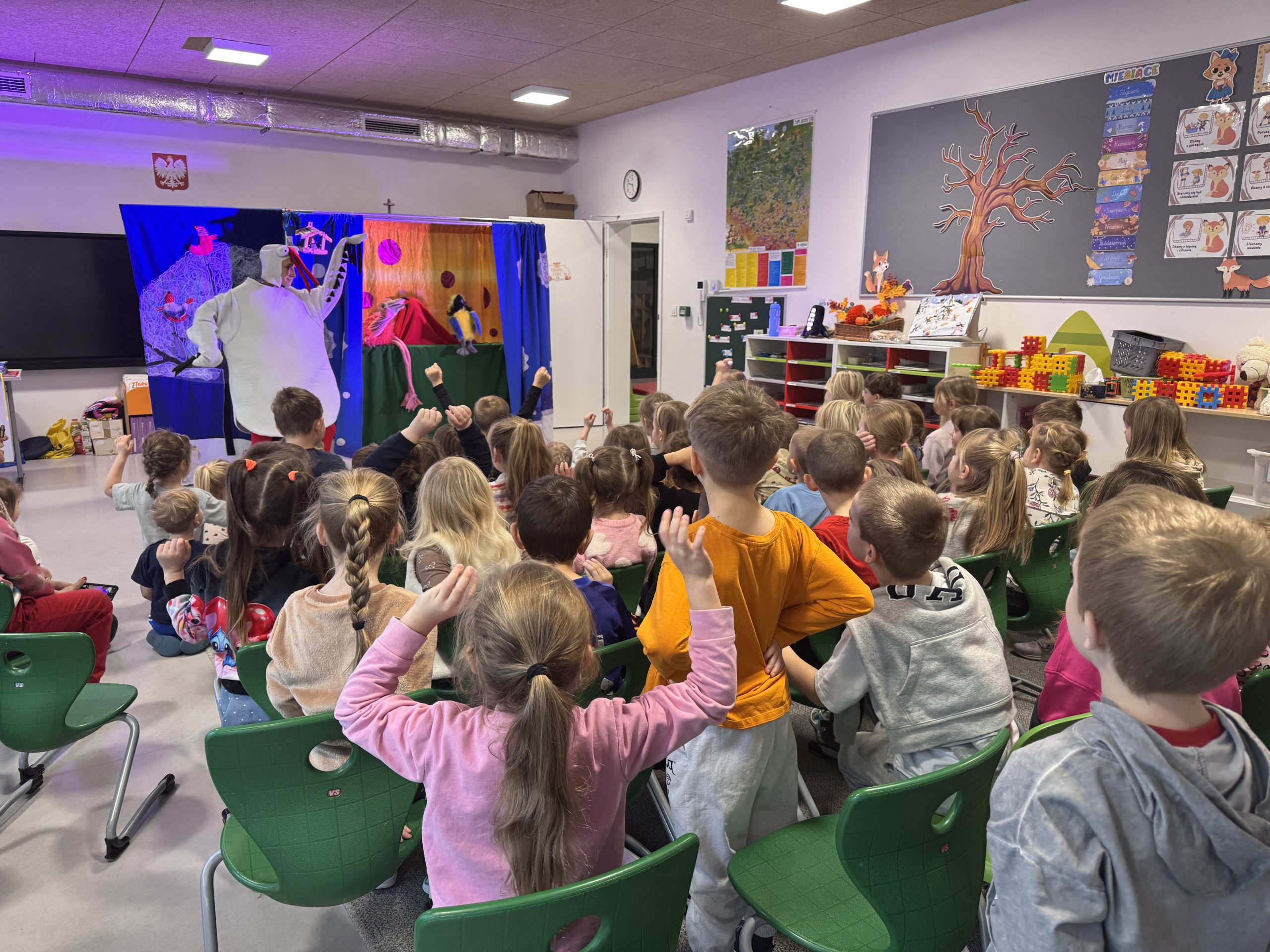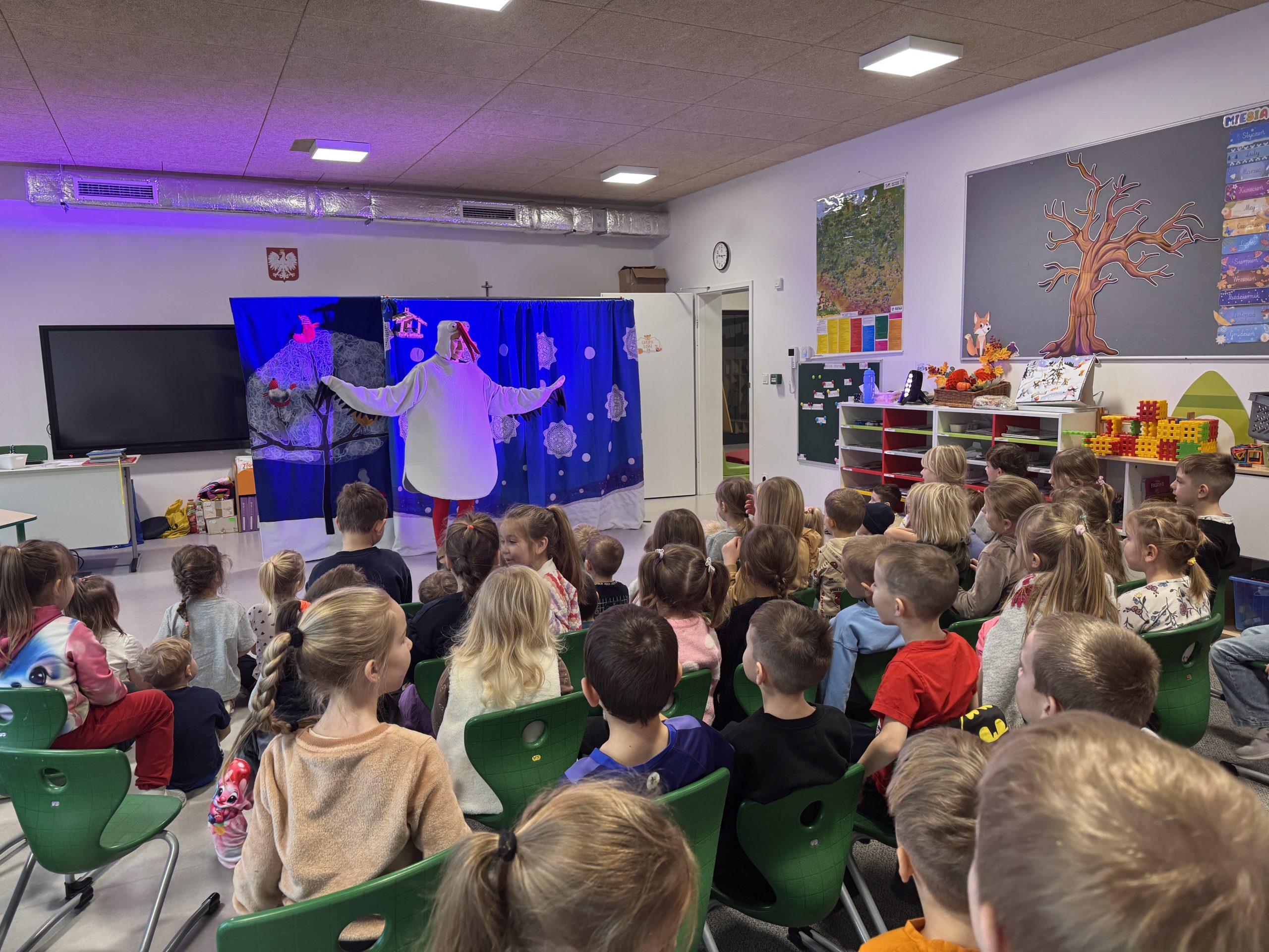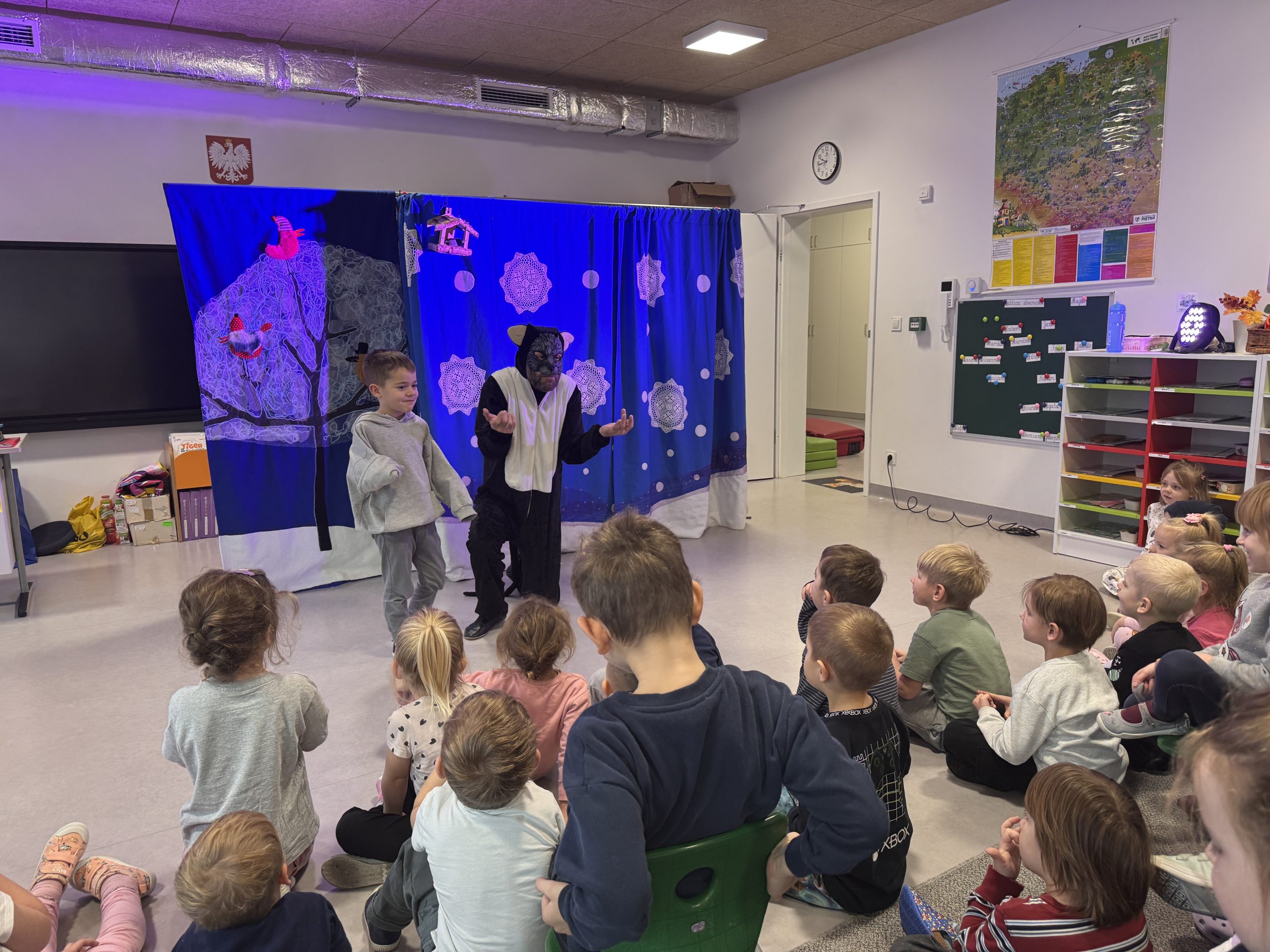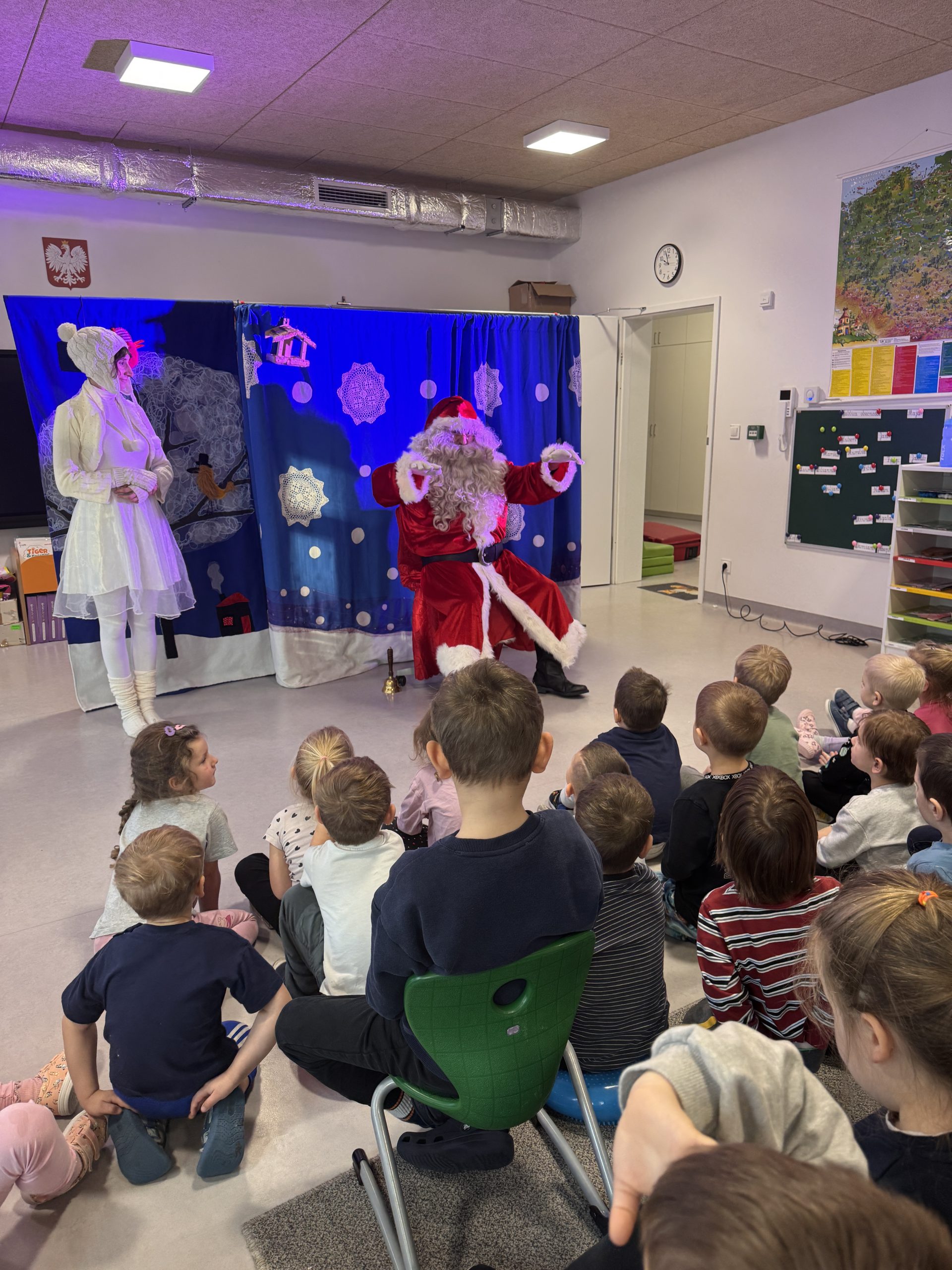 Teatr Gargulec wystąpił w przedszkolu z przedstawieniem o ptaszkach. Było dużo zabawy, śmiechu i radości. Na koniec odbyło się spotkanie ze św. Mikołajem, który wysłuchał marzeń dzieci i wróci do przedszkola już w piątek;)