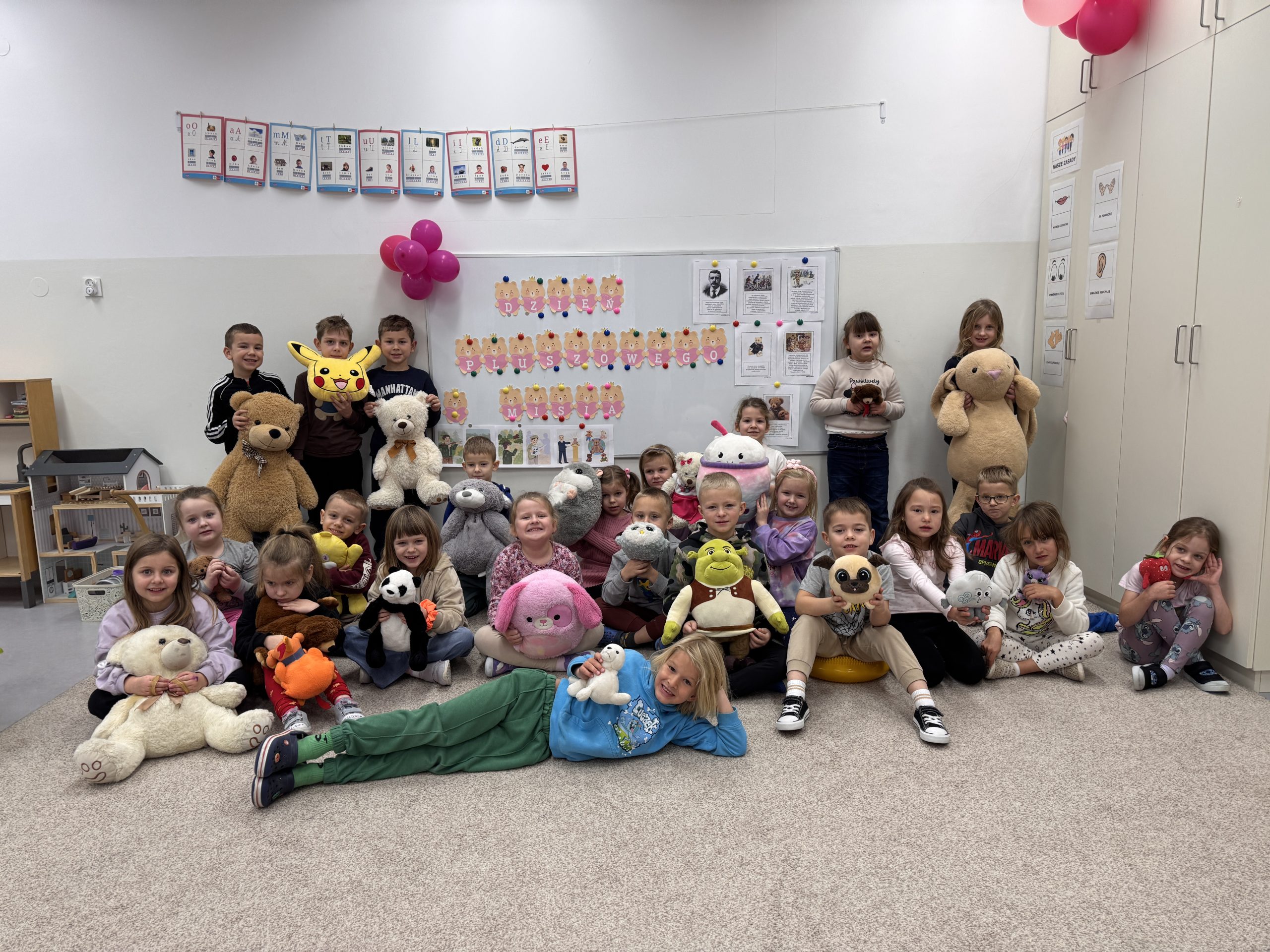 W grupie 0b „Misie” świętowaliśmy Dzień Pluszowego Misia. Dzieci przyniosły do przedszkola swoje ulubione pluszaki, które towarzyszyły im przez cały dzień. Podczas zajęć poznaliśmy historię pluszowego misia oraz dowiedzieliśmy się, skąd wzięła się popularność tej wyjątkowej zabawki.