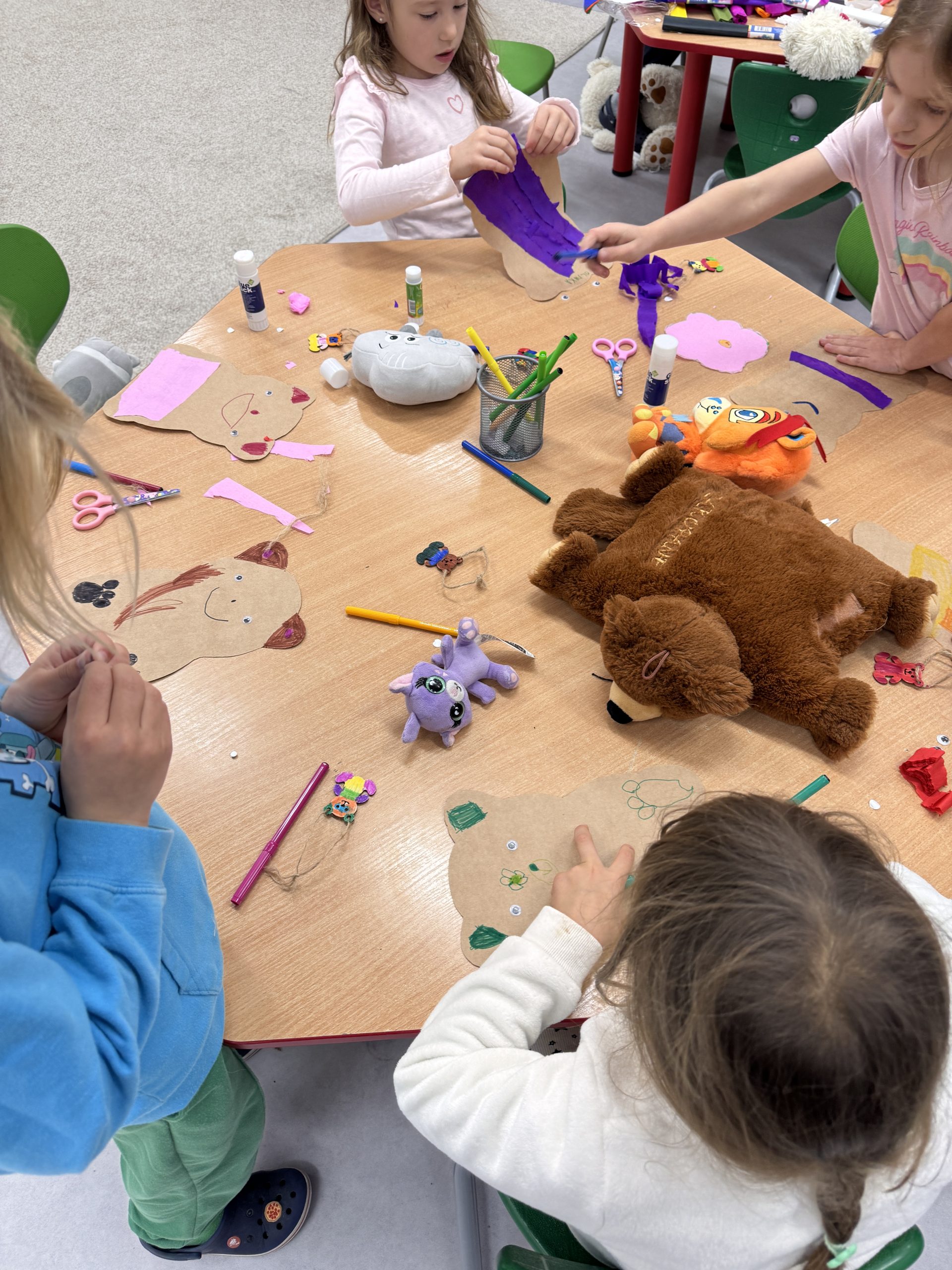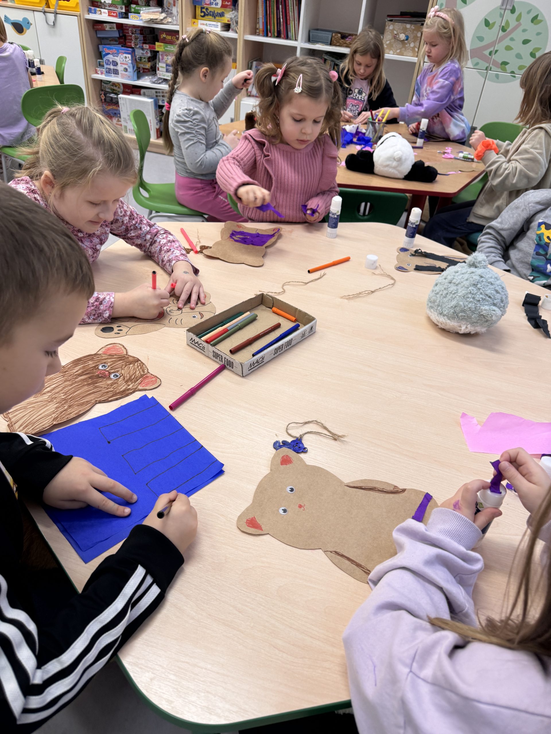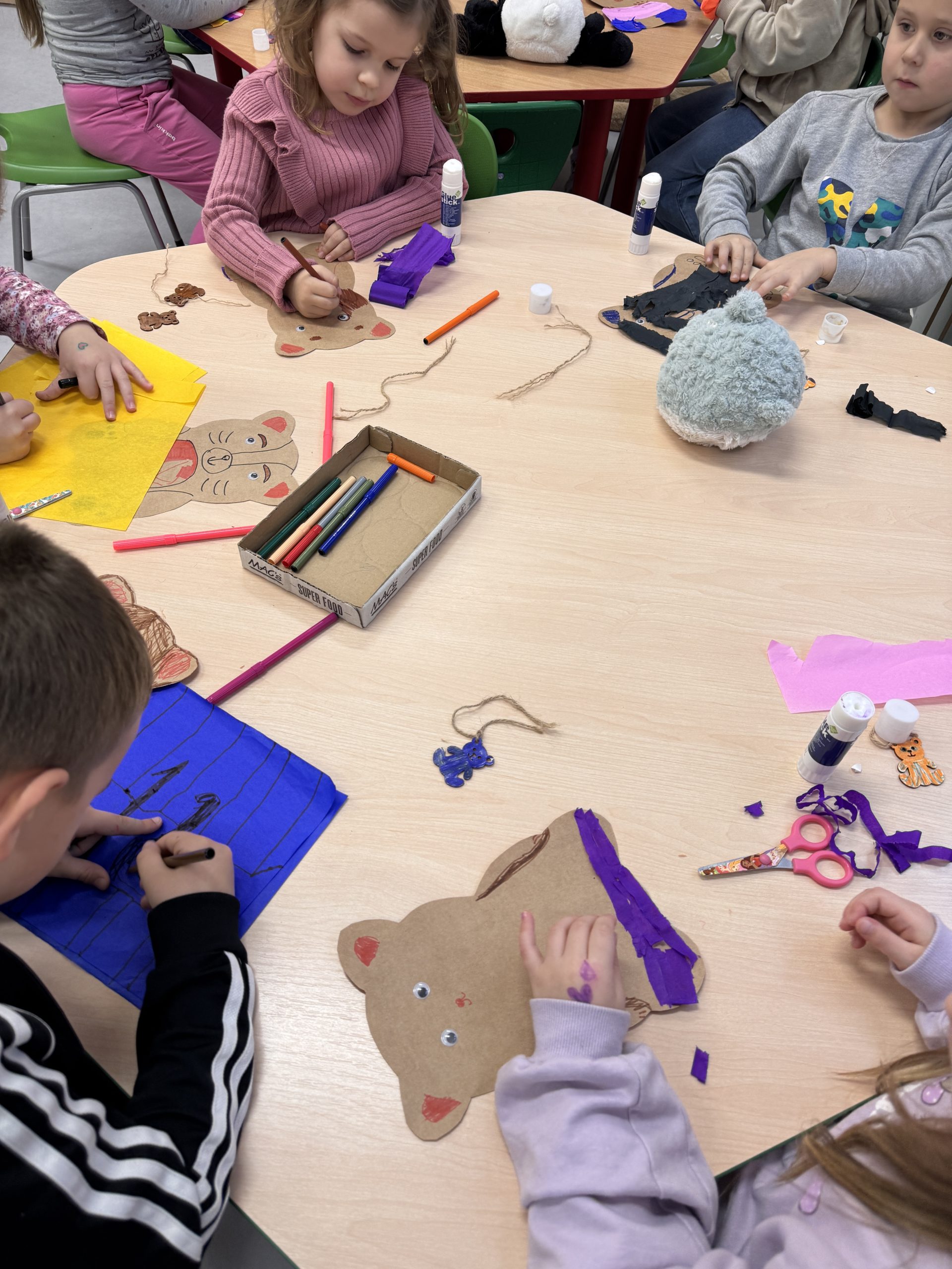 Rozmawialiśmy o różnych rodzajach misiów, a następnie uczestniczyliśmy w zabawach, konkursach i zajęciach plastycznych związanych z naszym misiowym bohaterem. To był pełen radości dzień, w którym każdy mógł pochwalić się swoim misiem i poczuć się częścią naszej grupy „Misie”.