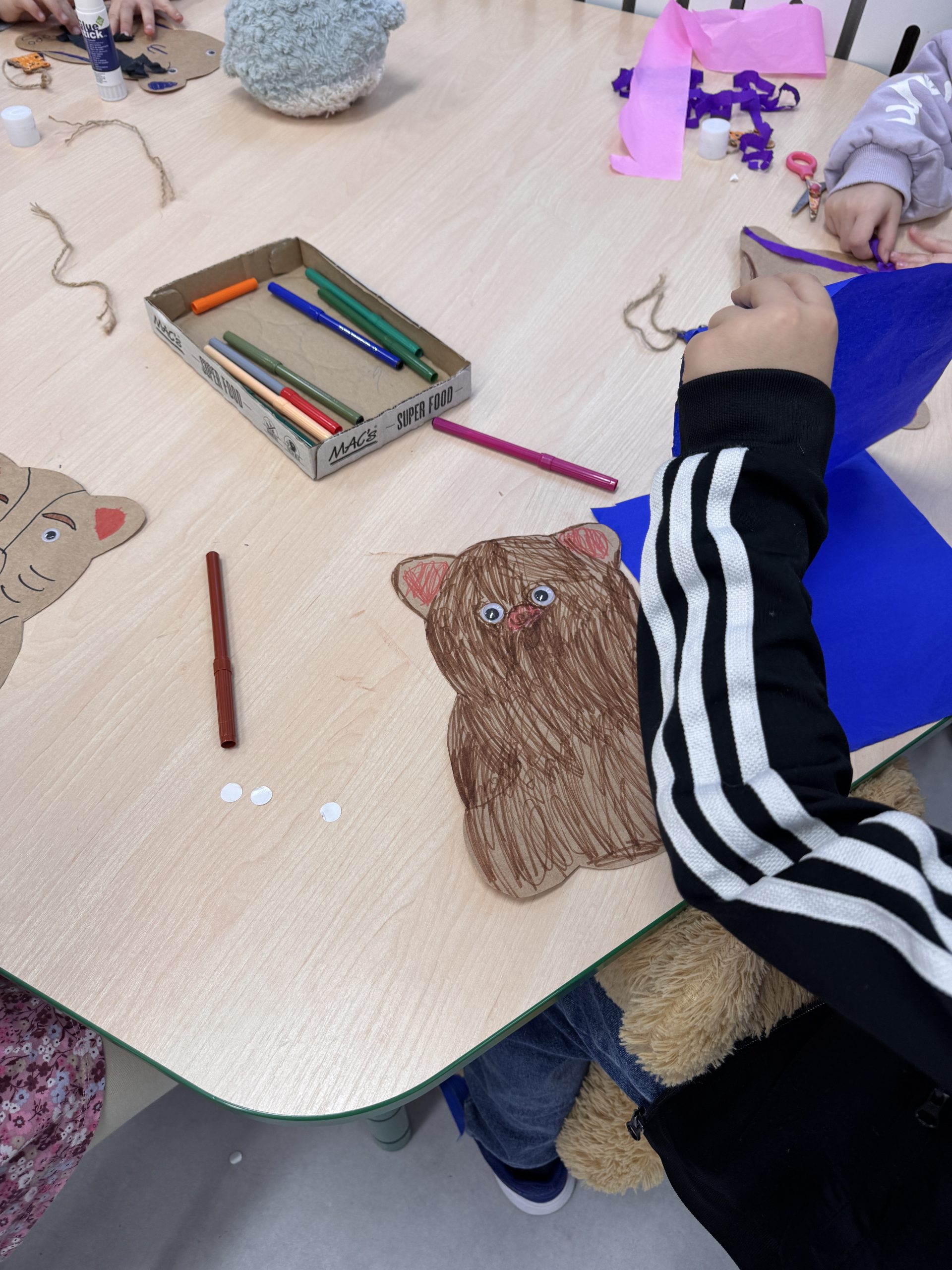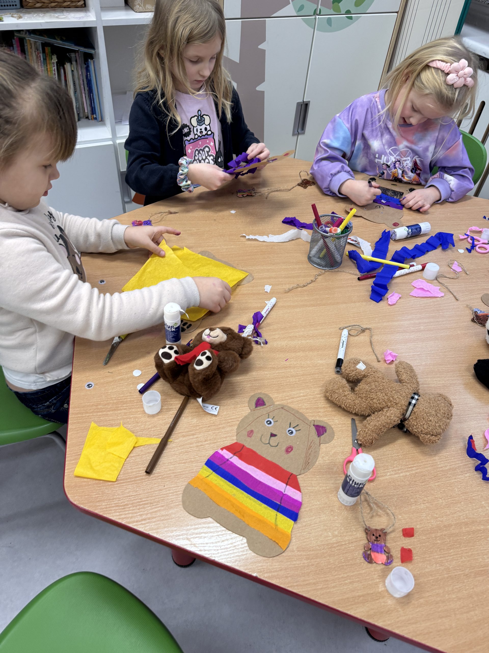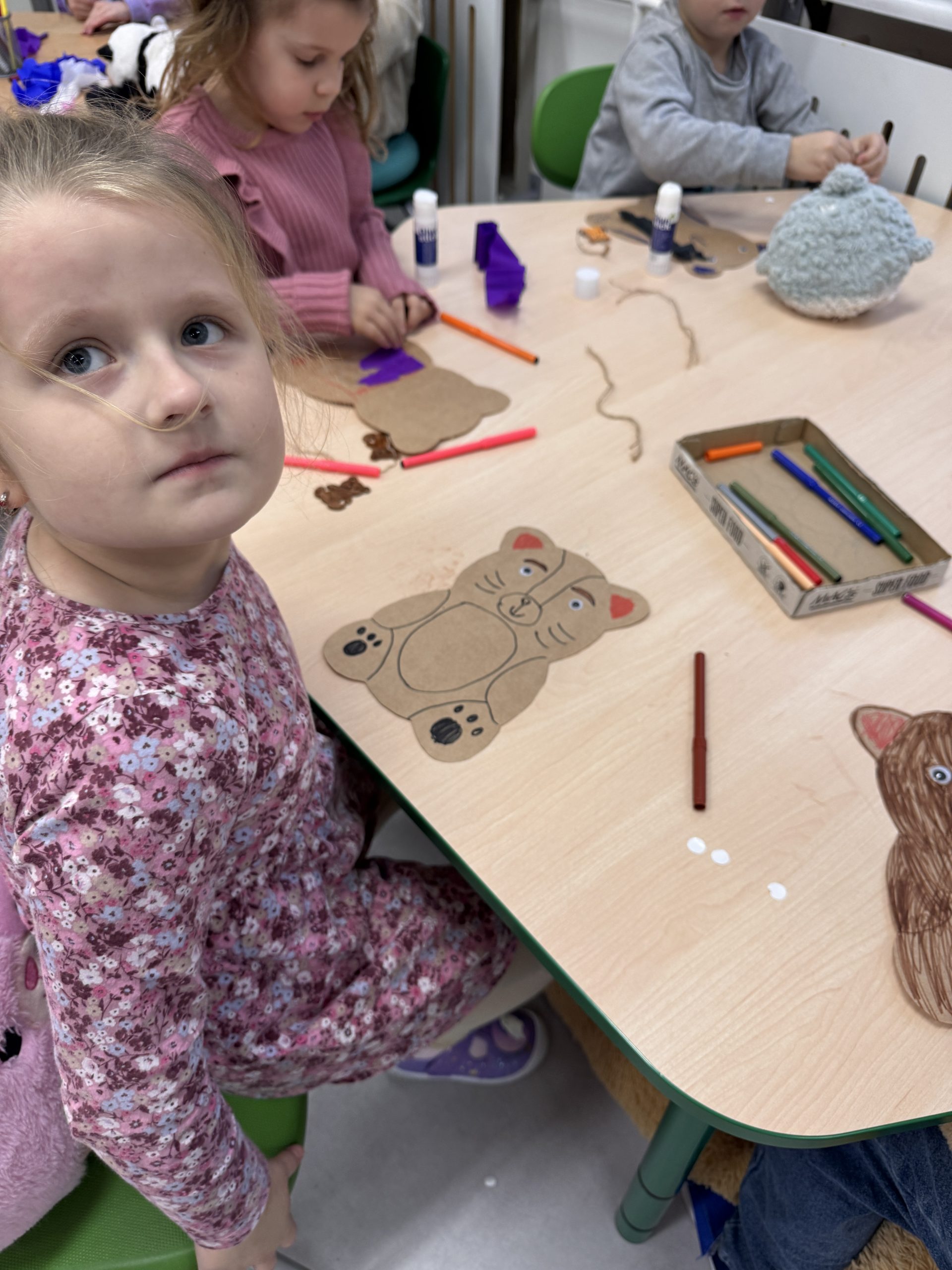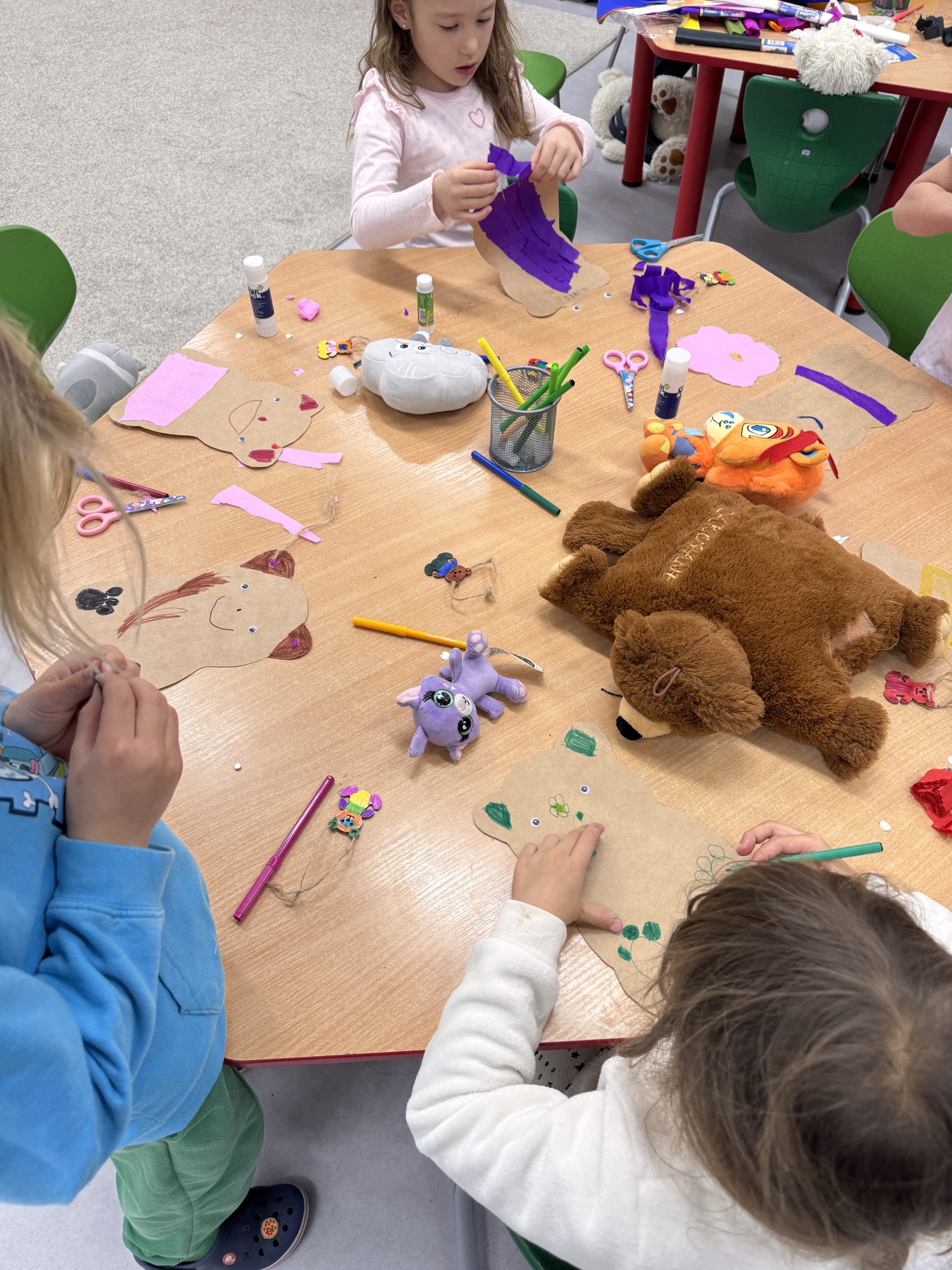 Rozmawialiśmy o różnych rodzajach misiów, a następnie uczestniczyliśmy w zabawach, konkursach i zajęciach plastycznych związanych z naszym misiowym bohaterem. To był pełen radości dzień, w którym każdy mógł pochwalić się swoim misiem i poczuć się częścią naszej grupy „Misie”.