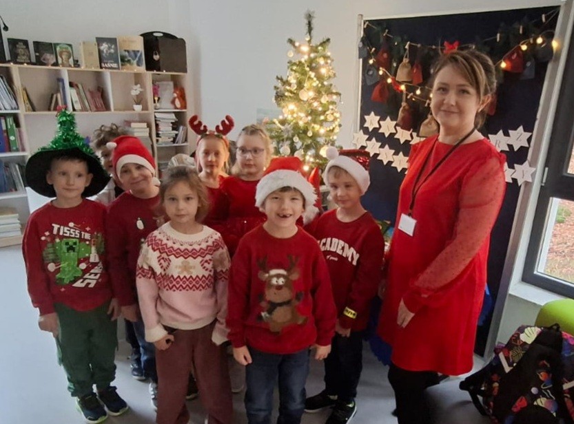 Dzieci aktywnie uczestniczyły w rozmowie o świątecznych zwyczajach i chętnie dzieliły się własnymi doświadczeniami. Uczniowie zwrócili uwagę, że przygotowania do świąt mogą sprawiać radość, jeśli wykonuje się je wspólnie. Spotkanie sprzyjało integracji grupy oraz budowaniu pozytywnej atmosfery. Opowieść pomogła dzieciom dostrzec, że święta to nie tylko prezenty, ale przede wszystkim czas bliskości, dobroci i pomagania innym. Na koniec spotkania dzieci odkryły kolejne wyzwanie z Kalendarza Czytelniczego.