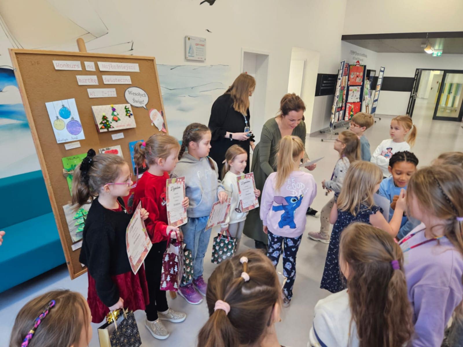 W czwartek 18 grudnia, odbyło się rozstrzygnięcie Szkolnego Konkursu Plastycznego na Najładniejszą Kartkę na Święta Bożego Narodzenia. W konkursie wzięli udział uczniowie klas I–III. Komisja konkursowa miała nie lada problem z wyborem najciekawszych prac.