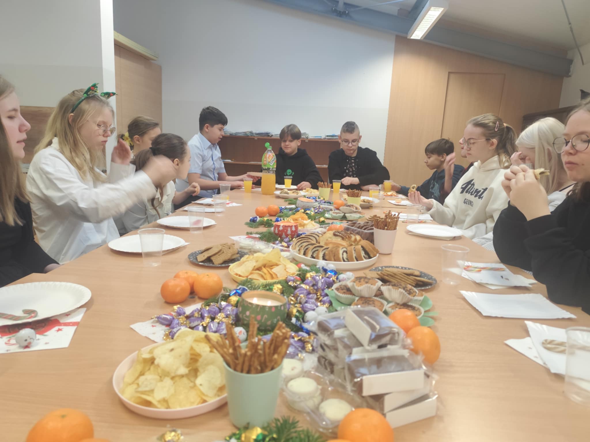 Wigilia klasy 7 A przez Marta Szulc - Przybył · 19 grudnia 2025 Mieliśmy niezwykłych gości: Panią Dyrektor – Monikę Halczak – Lewandowską, Panią Wicedyrektor Agnieszkę Gomułkę oraz Panią Psycholog Justynę Ustowską. Wigilia była bardzo udana. Autor: Agnieszka Peplińska – Karda