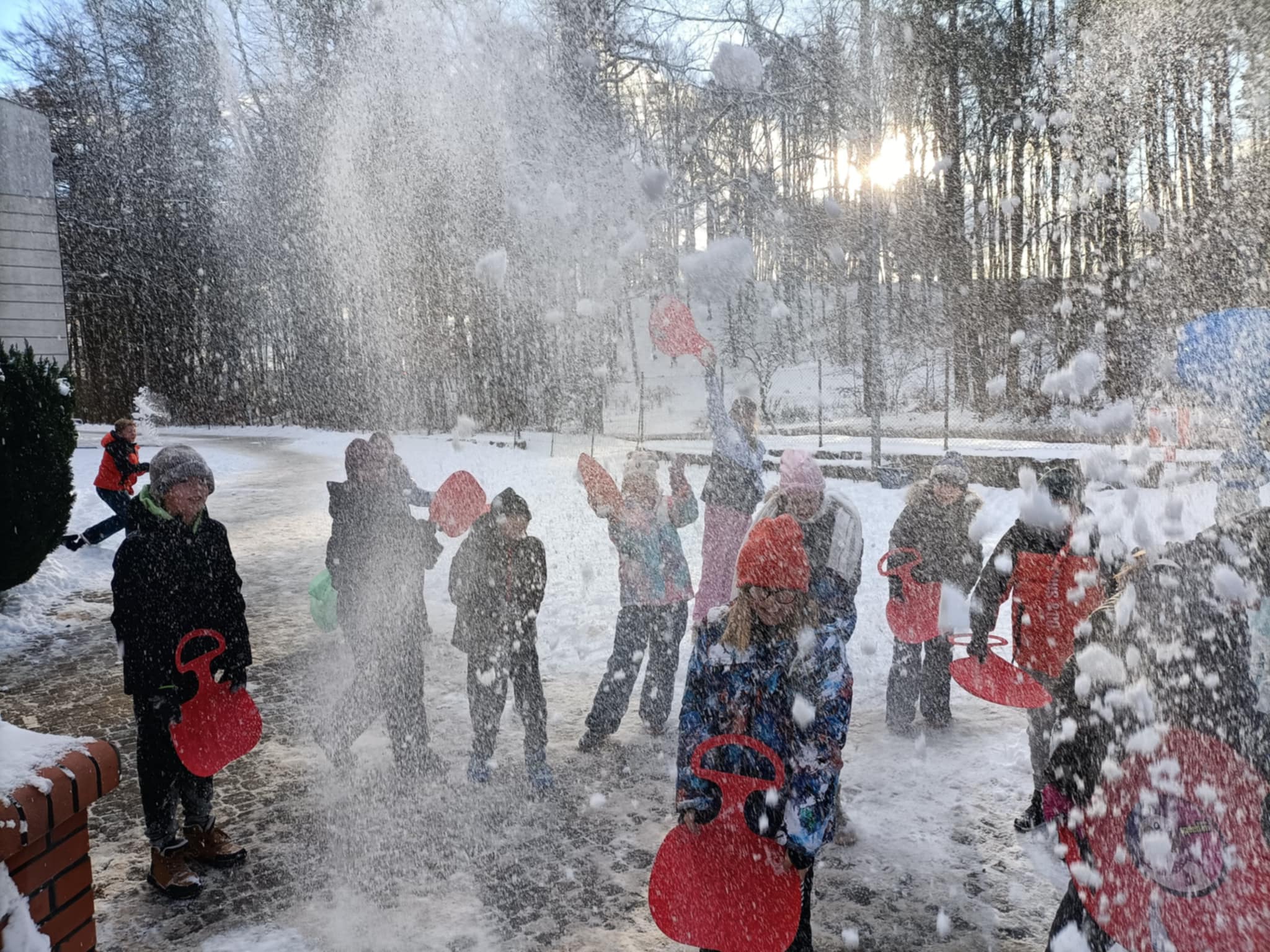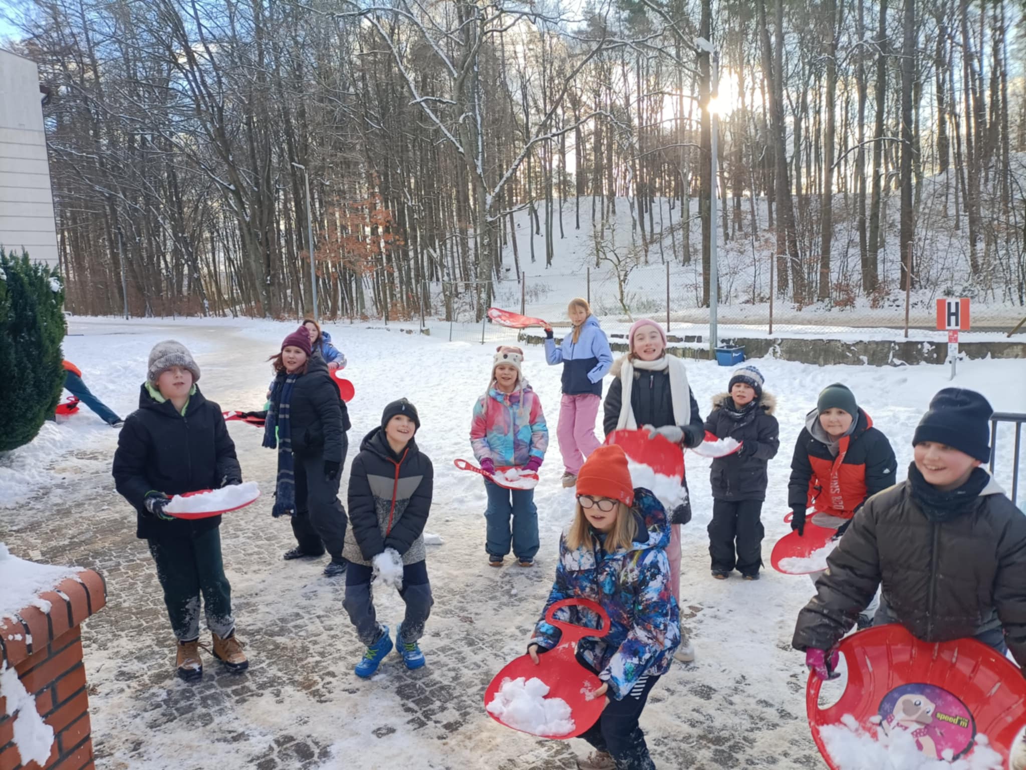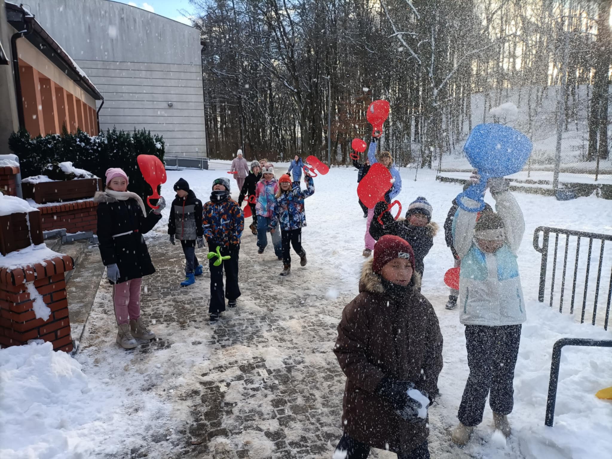 Z okazji pierwszego śniegu nie zważając na warunki atmosferyczne, większość klas wyszła na zewnątrz by korzystać z uroków zimy!