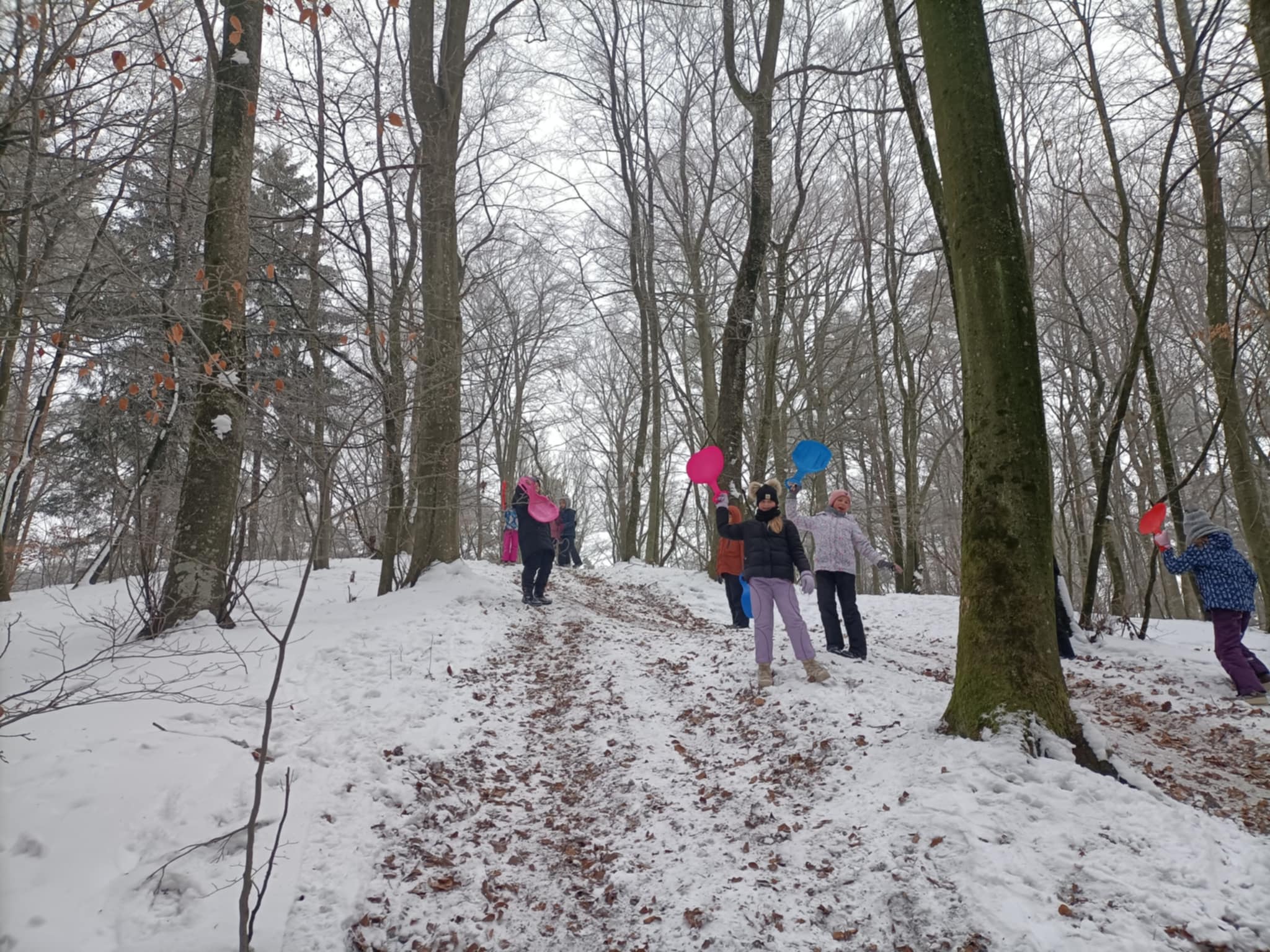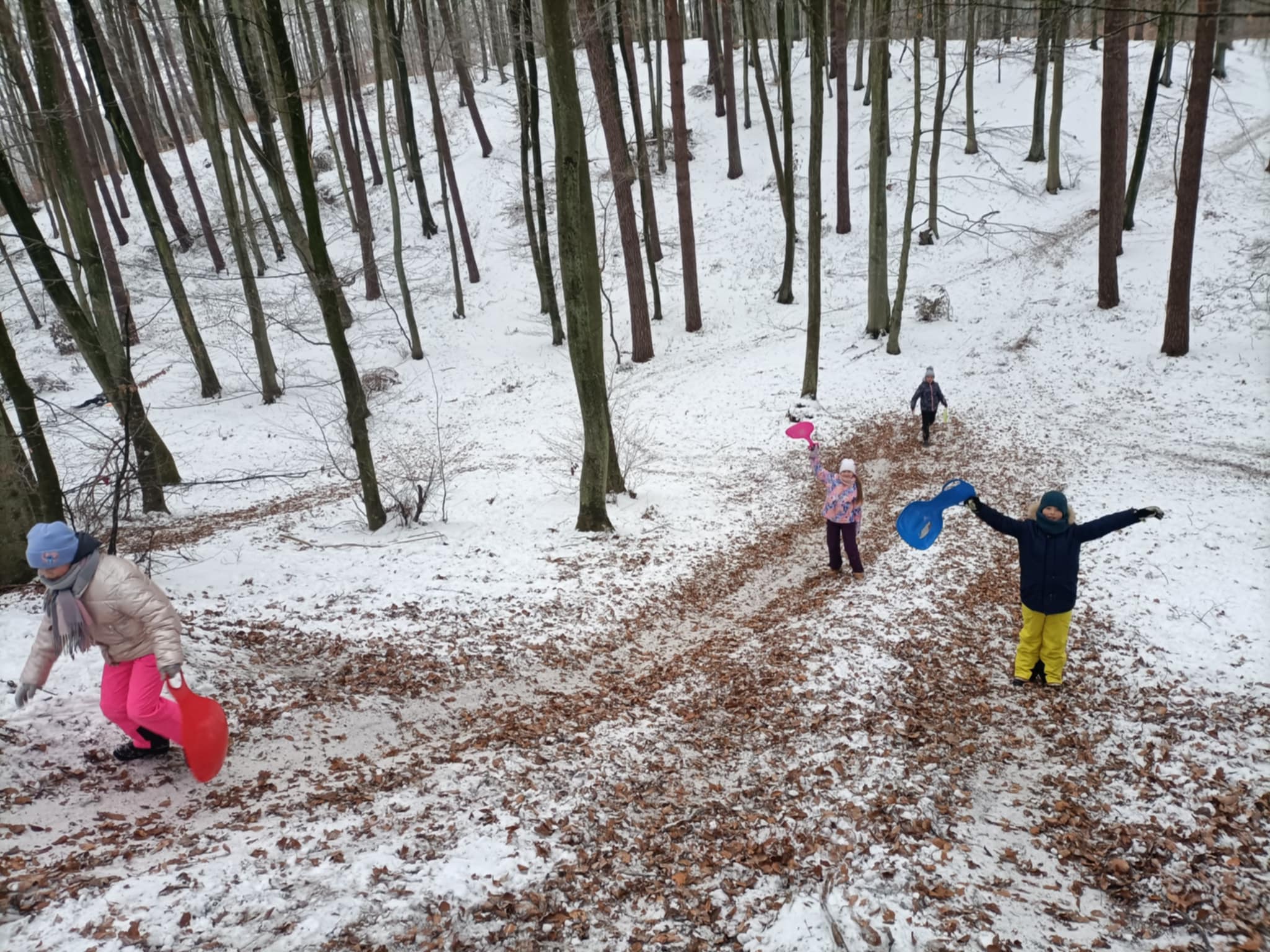 Wykorzystując ukształtowanie terenu pełną piersią czerpaliśmy ze ślizgów i zabaw na śniegu.