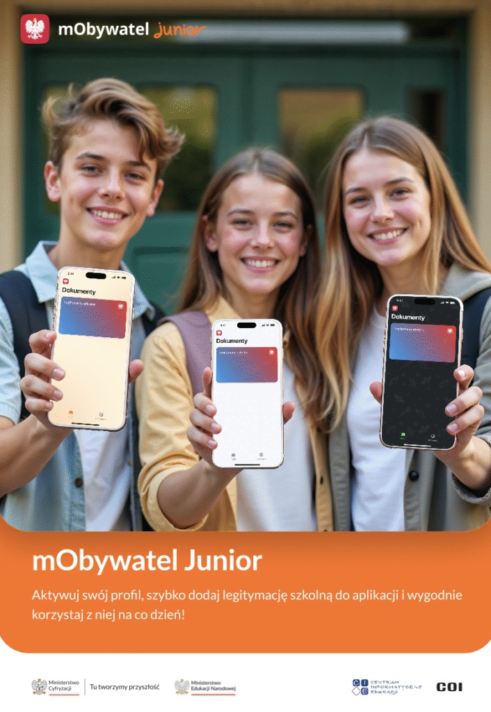 Zachęcamy uczniów i rodziców do skorzystania z cyfrowej wersji legitymacji szkolnej w aplikacji mObywatel. mLegitymacja to wygodne i bezpieczne rozwiązanie – dokument jest zawsze pod ręką w telefonie i ma taką samą moc prawną jak tradycyjna legitymacja.