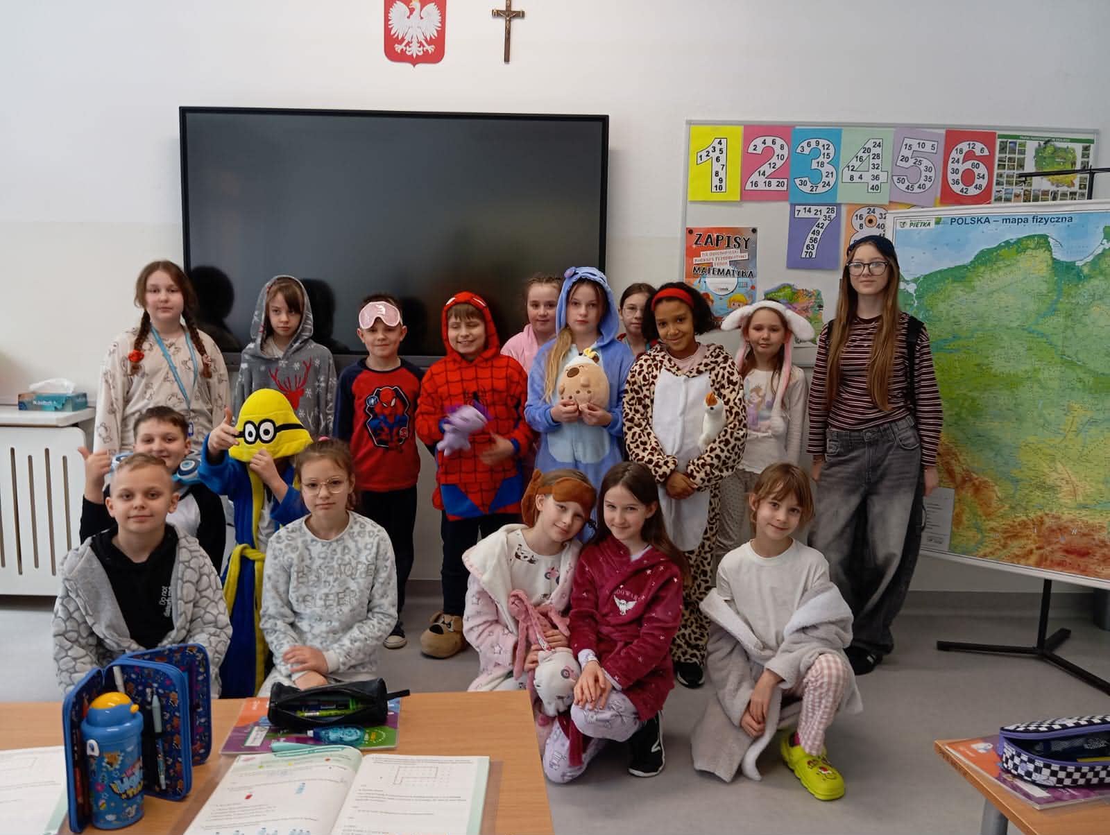 Kreatywność i poczucie humoru nie miały granic – na szkolnych korytarzach można było spotkać misie, jednorożce, dinozaury i wiele innych bajkowych postaci. Wydarzenie przyniosło wszystkim mnóstwo radości i uśmiechu.