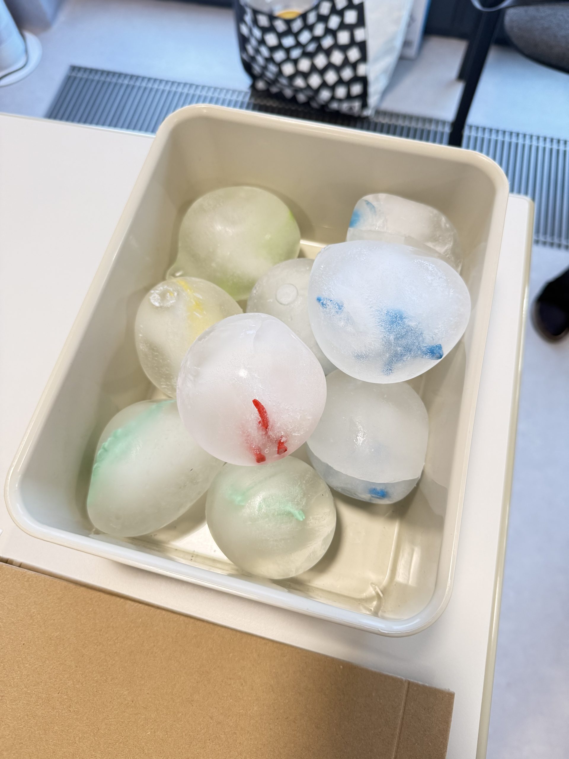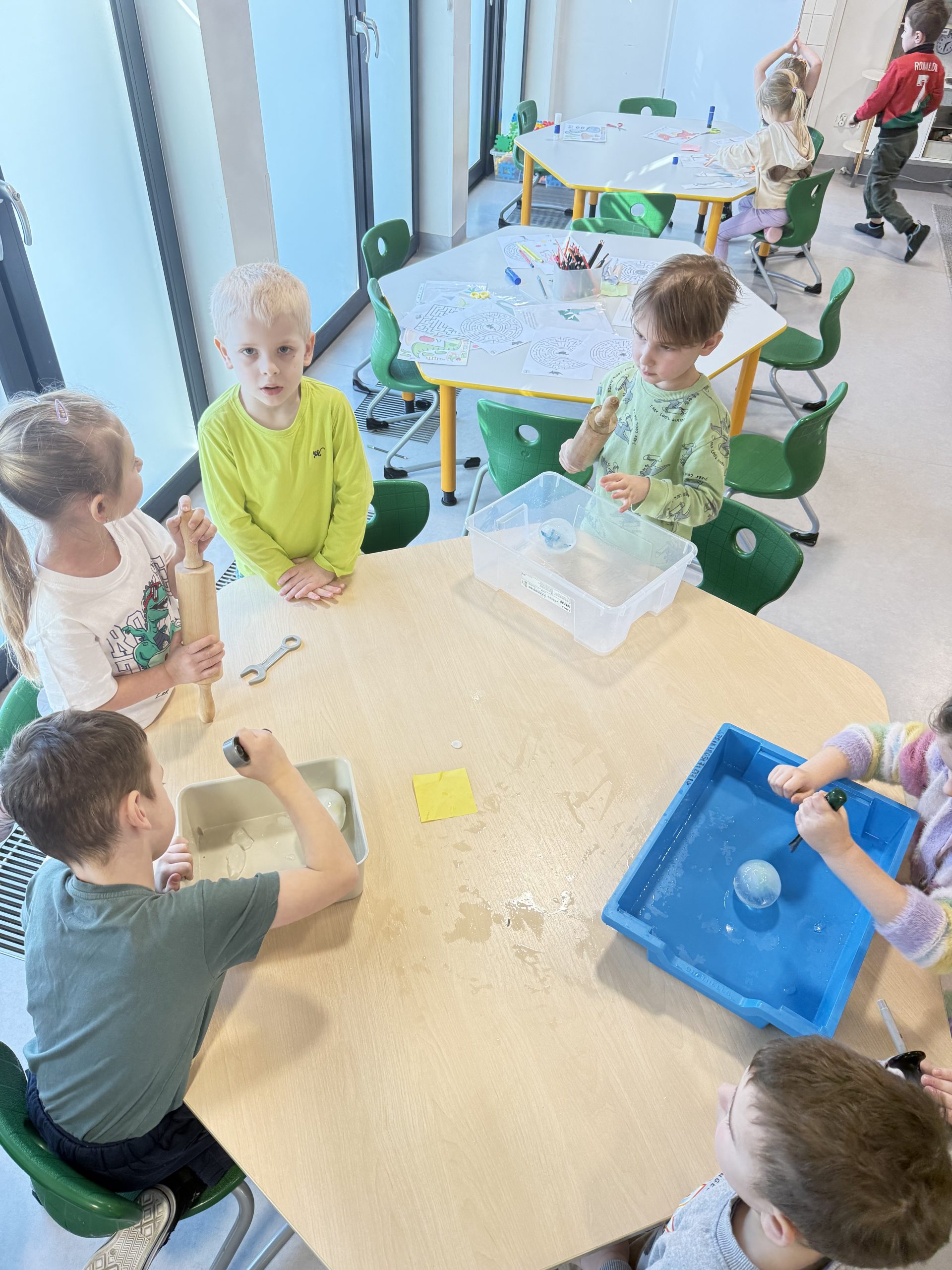 Lodowe jaja dinozaurów – dzieci wydobywały ukryte w lodzie figurki.
