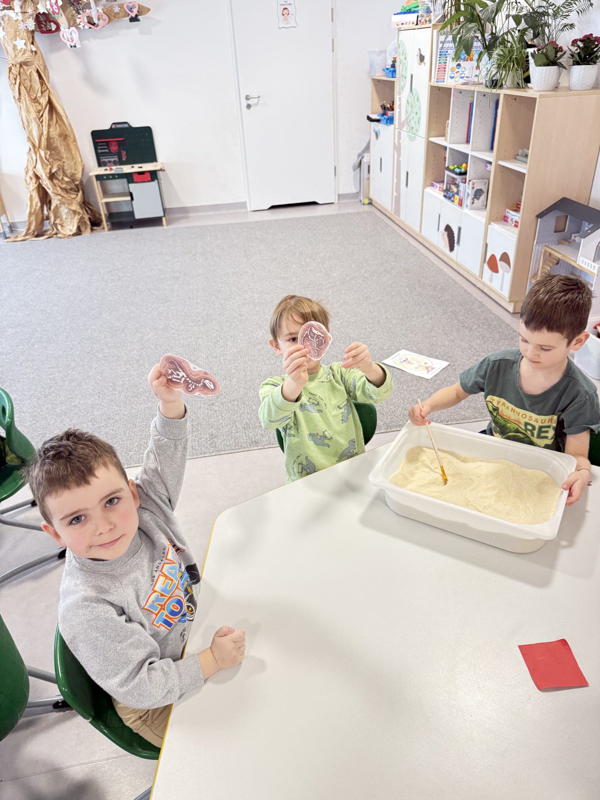 Kącik archeologa – dzieci pędzelkami odkopywały ukryte skamieniałości, wcielając się w małych badaczy.